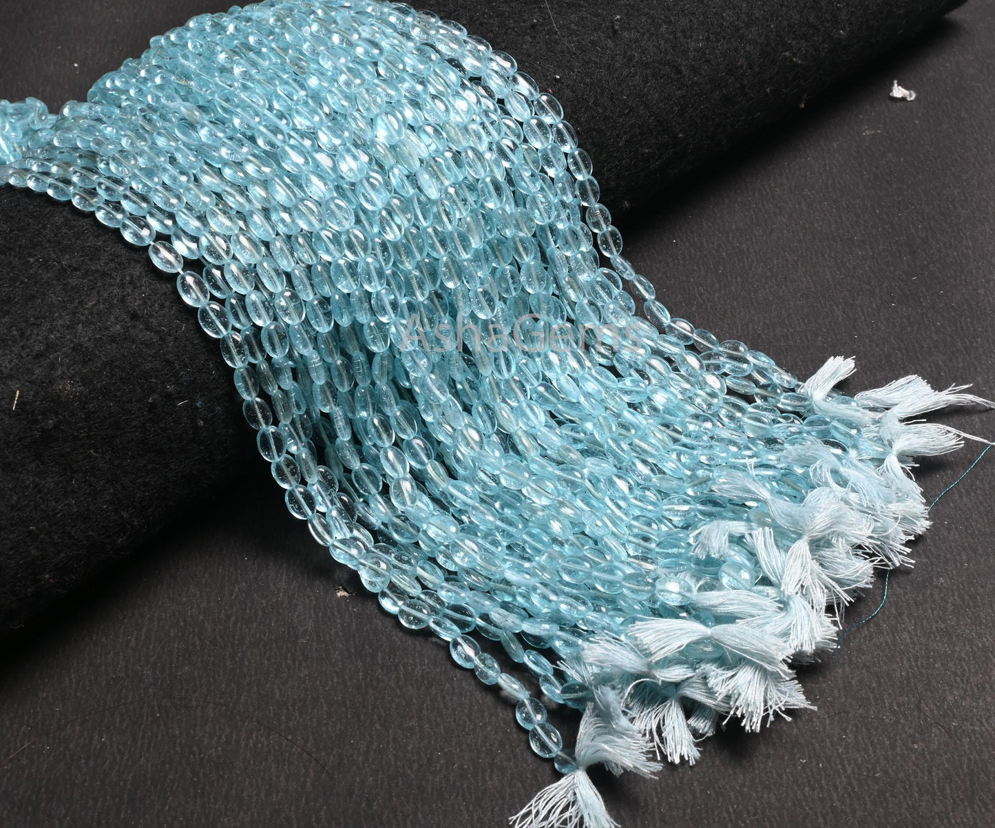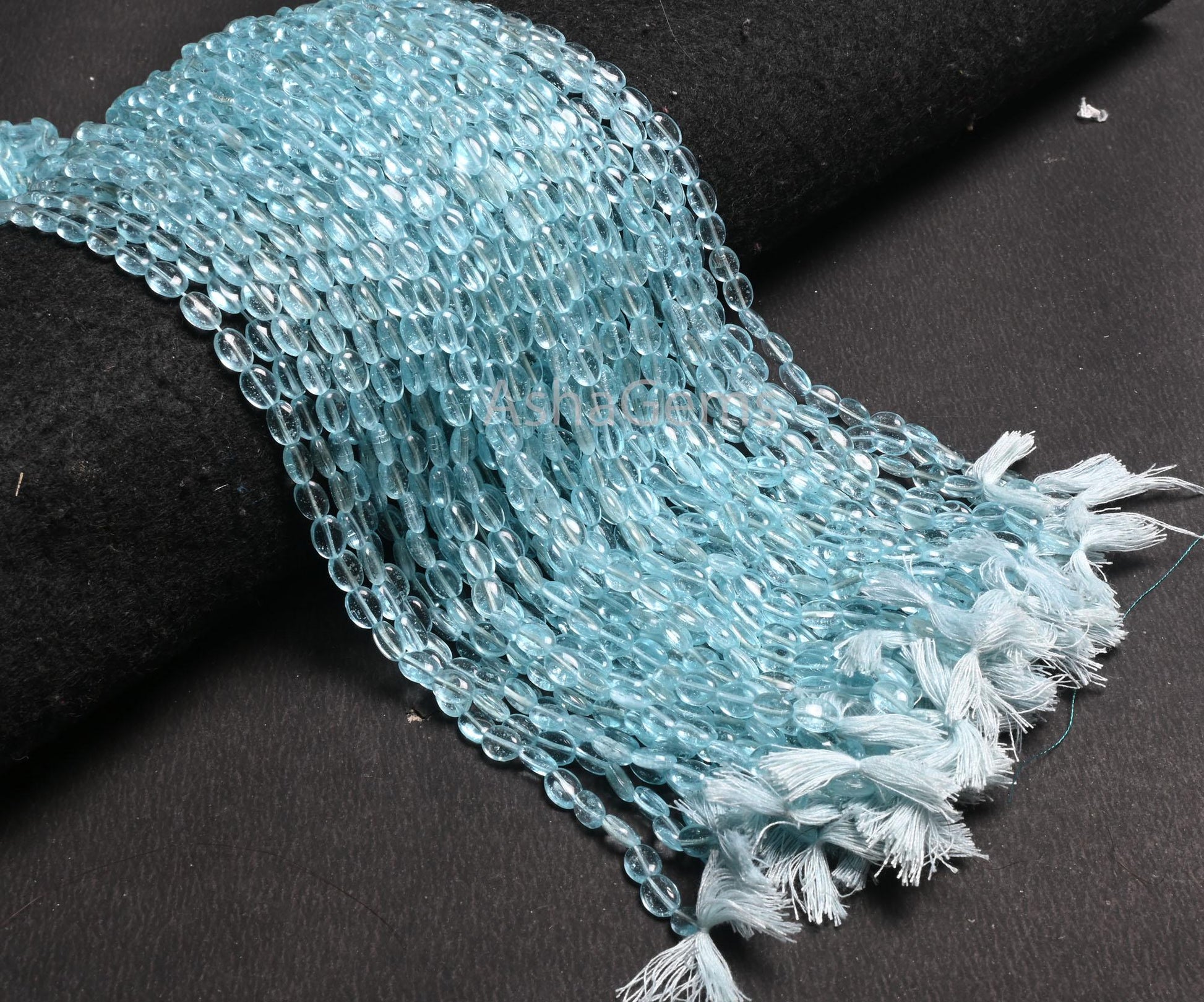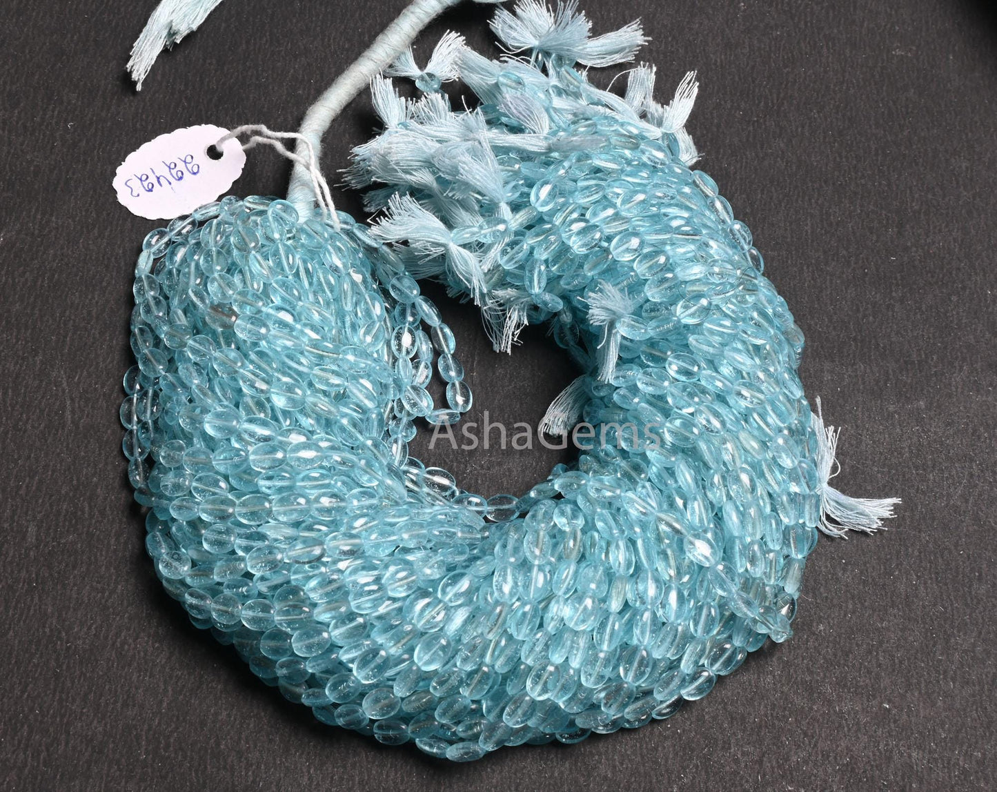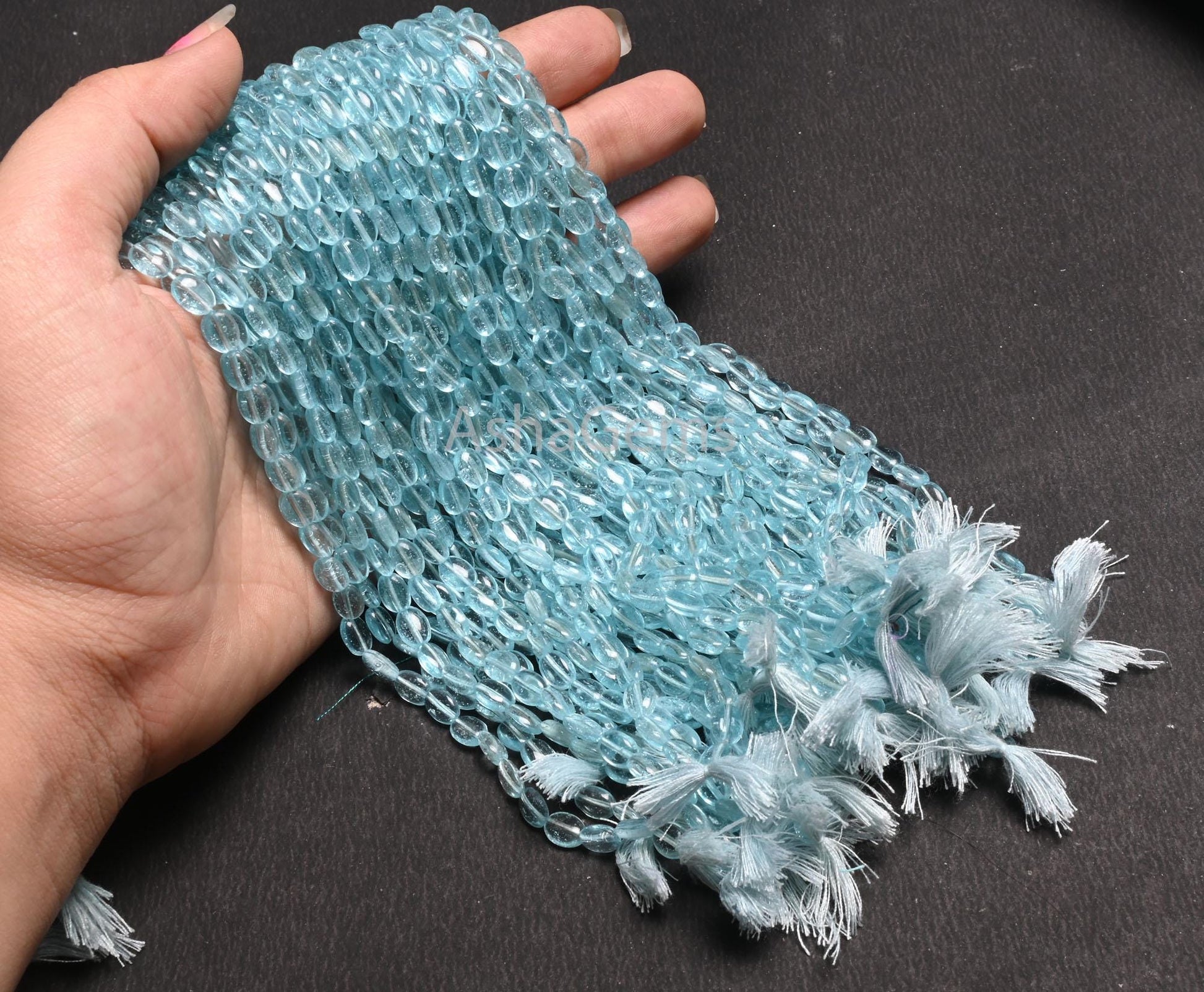 Beautiful Aqua Blue Quartz Hydro Smooth Oval Handmade Beads,5.5-7 mm Light Sky Blue Hydro Plain Handmade Oval Shape Bead Jewelry Crafts SALE