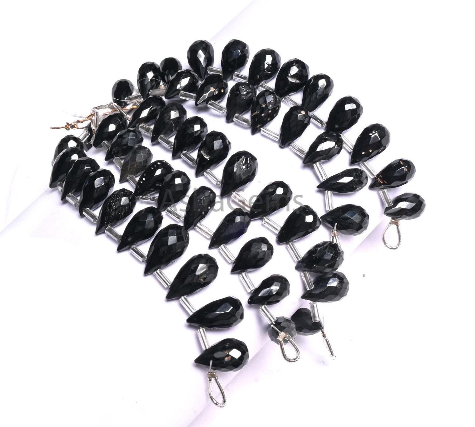 Beautiful Black Spinel Faceted Drop Shape Gemstone Beads, Natural Spinal Teardrop Briolette side Drill machine cut Black Spinel Bead Jewelry