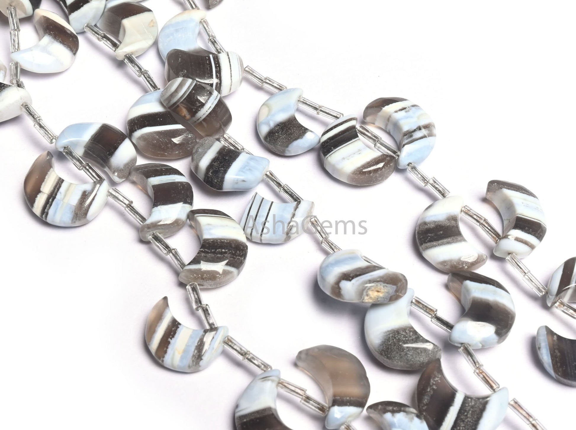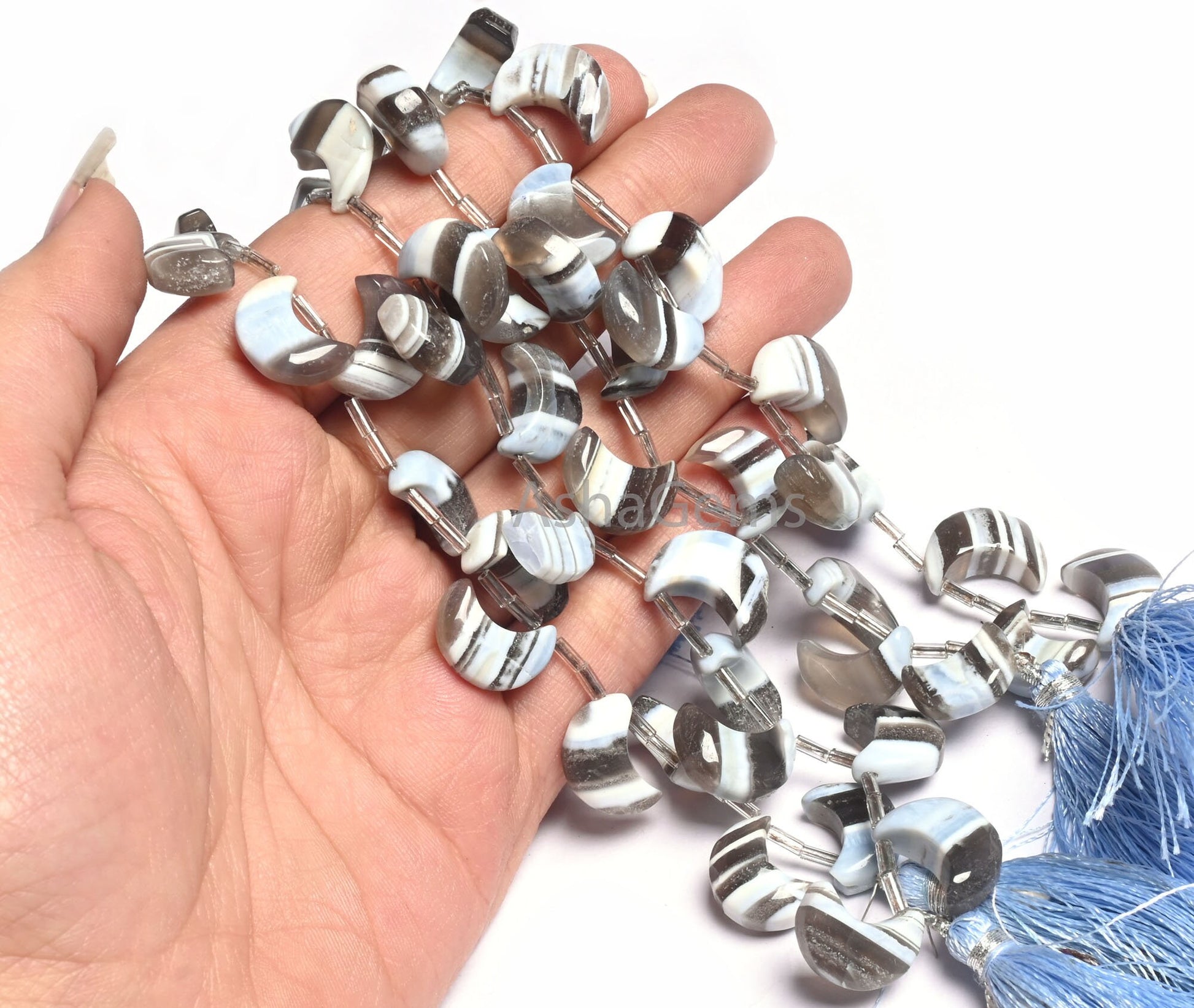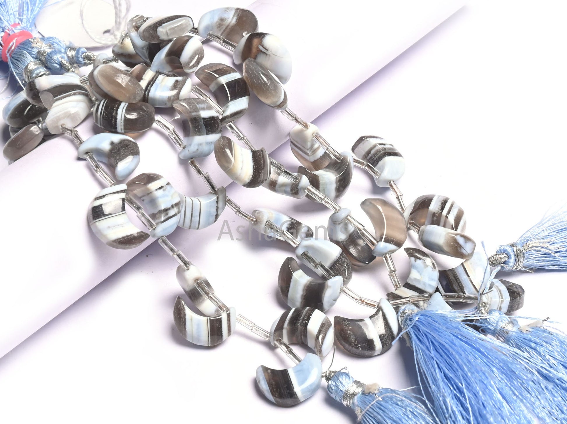Beautiful Blue Boulder Opal Carving Half Moon Beads,9-15mm Boulder Opal Fancy Moon Side Drill Gemstone Smooth Beads, Blue Opal Beads Jewelry