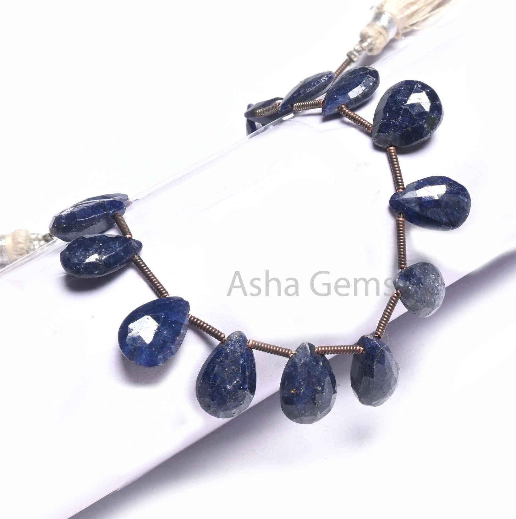 Beautiful Blue Corundum Faceted Pear Shape Beads,7.5" Blue Sapphire Corrundum Teardrop Side Drill Briolette Beads Jewelry making Crafts SALE (AG 18505 )