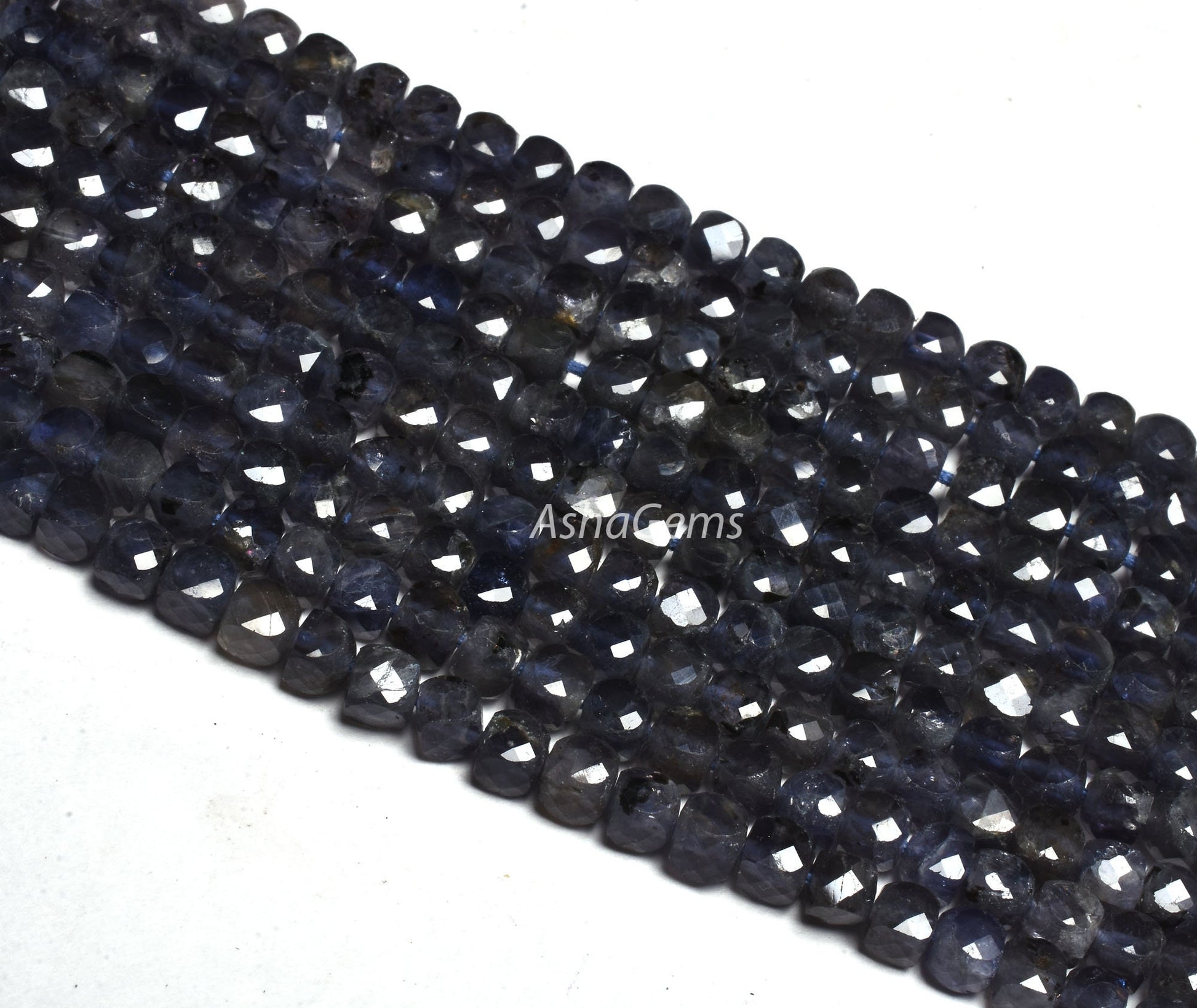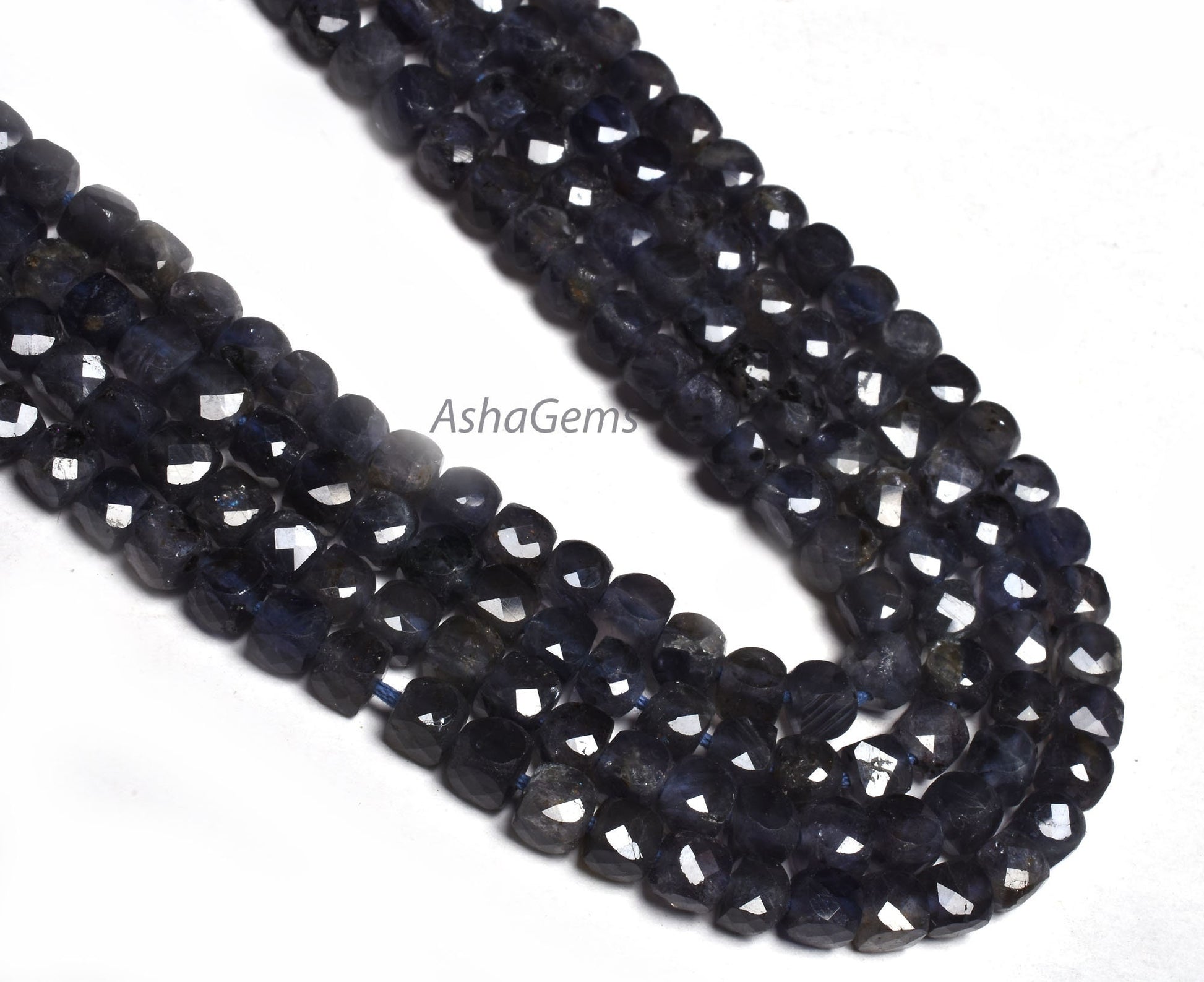 Beautiful Blue Iolite Faceted 3D Cube Box Faceted Gemstone Beads,13 Inch Strand,4mm, Natural Machine Cut Box Shape Bead Jewelry Making Craft