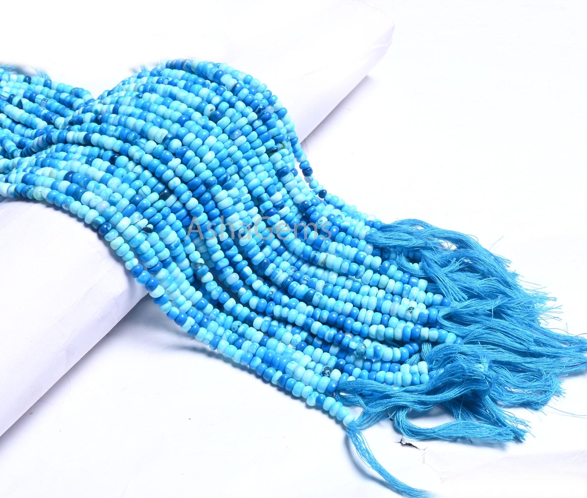 Beautiful Blue Opal Rondelle Shape Gemstone Beads, Shaded Turquoise Blue Opal Handmade Flat Rondelle Uneven Beads Jewelry Making Craft SALE