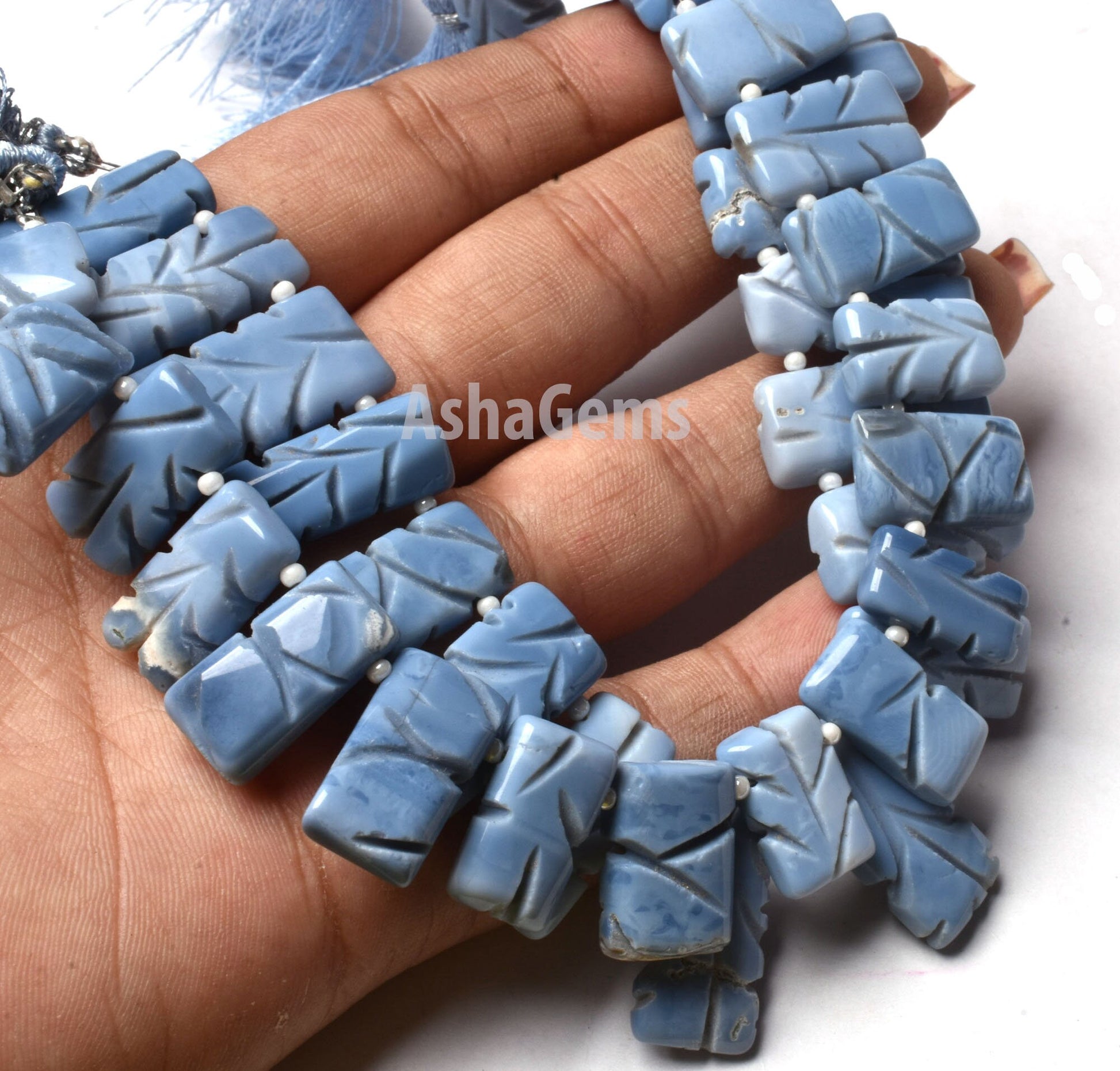 Beautiful Blue Oregon Opal Carved Rectangle Shape Beads,8"Strand Blue Opal Carve Beads, Opal Side Drill Carving Chiclet Bead Blue Opal Fancy