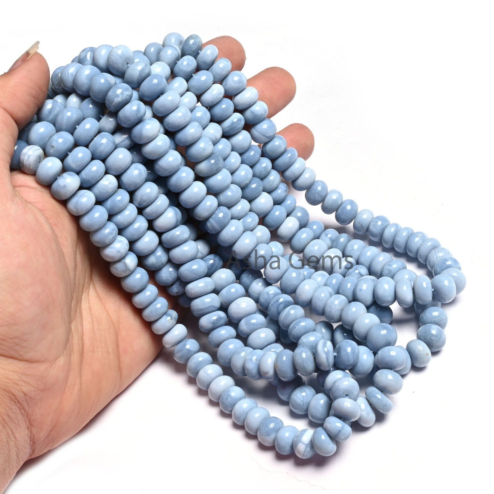 Beautiful Blue Oregon Opal Smooth Rondelle Beads Gemstone,8/16" Strand Fine Quality Blue Opal Plain Handmade Beads Opal Jewelry Makings SALE
