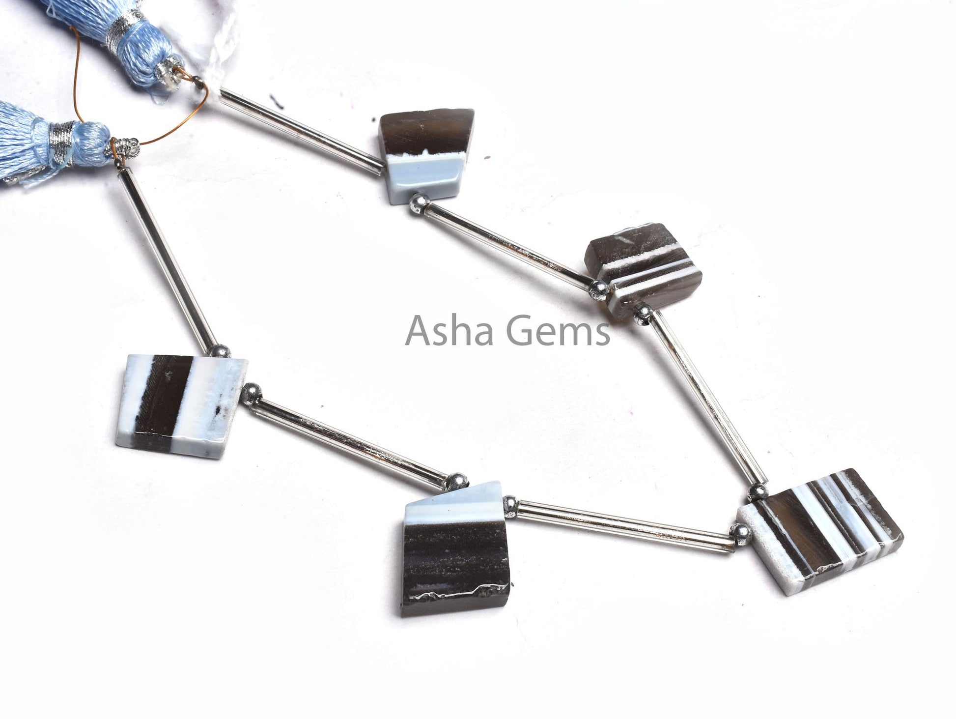 Beautiful Boulder Opal Uneven Flat Slice Shape Side Drill Beads,5 Piece Strand Blue Boulder Opal Fancy Flat Nugget Gemstone Beads Opal SALE