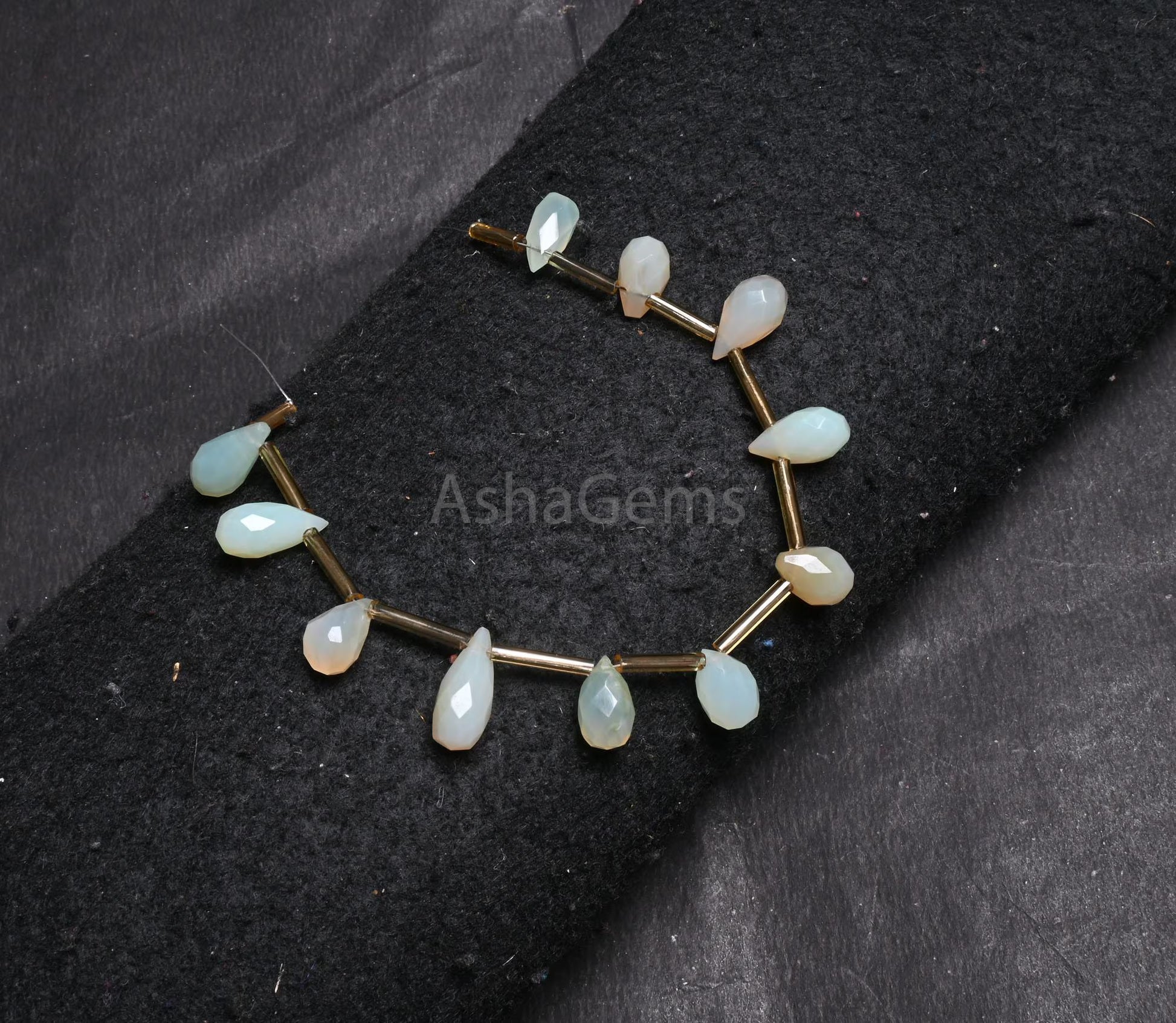 Beautiful Chalcedony faceted Drops Shape beads, Light Aqua Blue Chalcedony Indian Cut Handmade Teardrop bead, Chalcedony Bead Jewelry Crafts