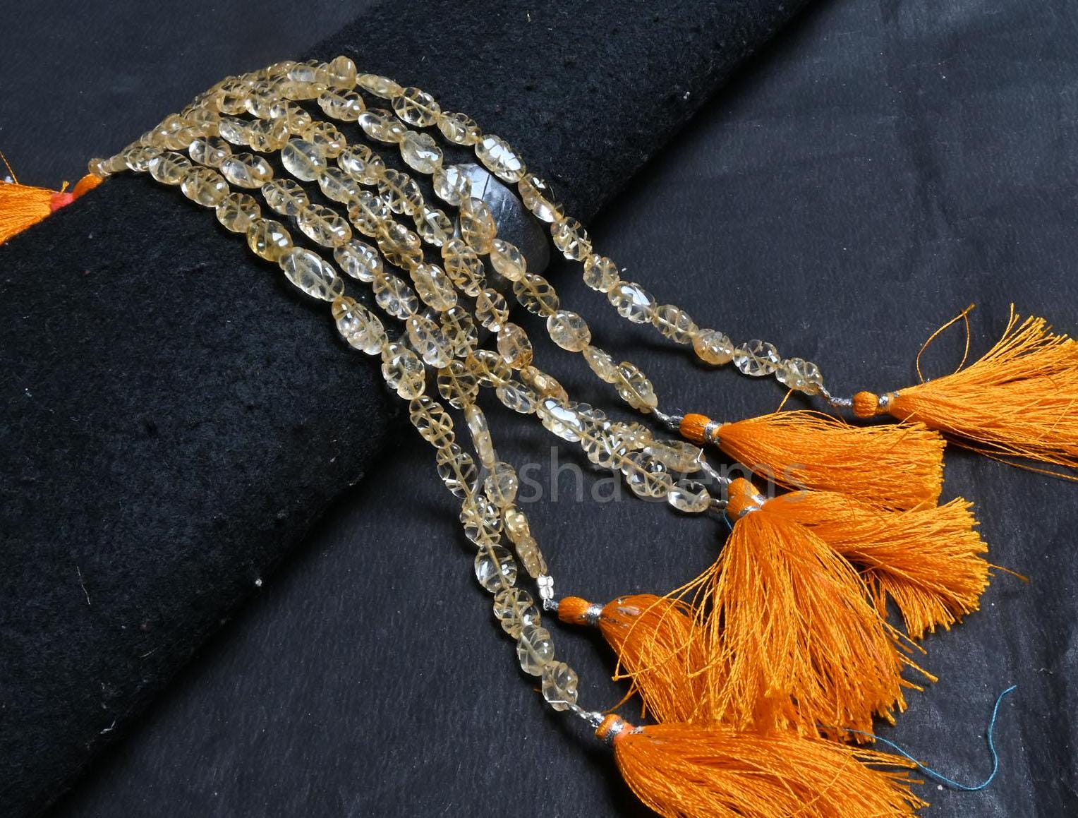 Beautiful Citrine Quartz Carved Oval Shape Gemstone Beads,7.5-12 mm Natural Yellow Citrine Carving fancy Oval T Drill Handmade Beads Jewelry