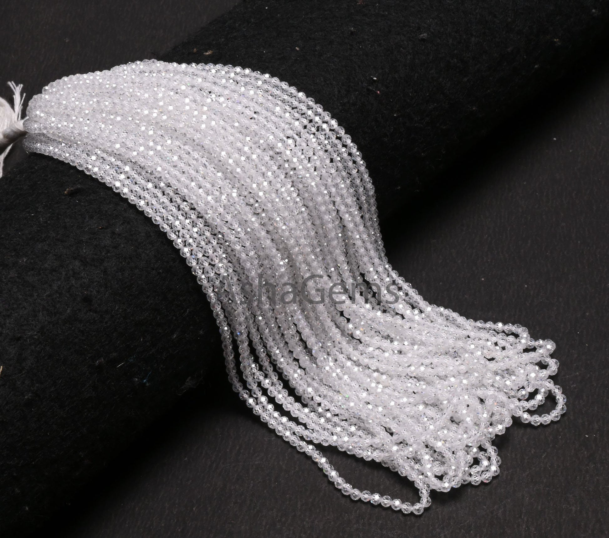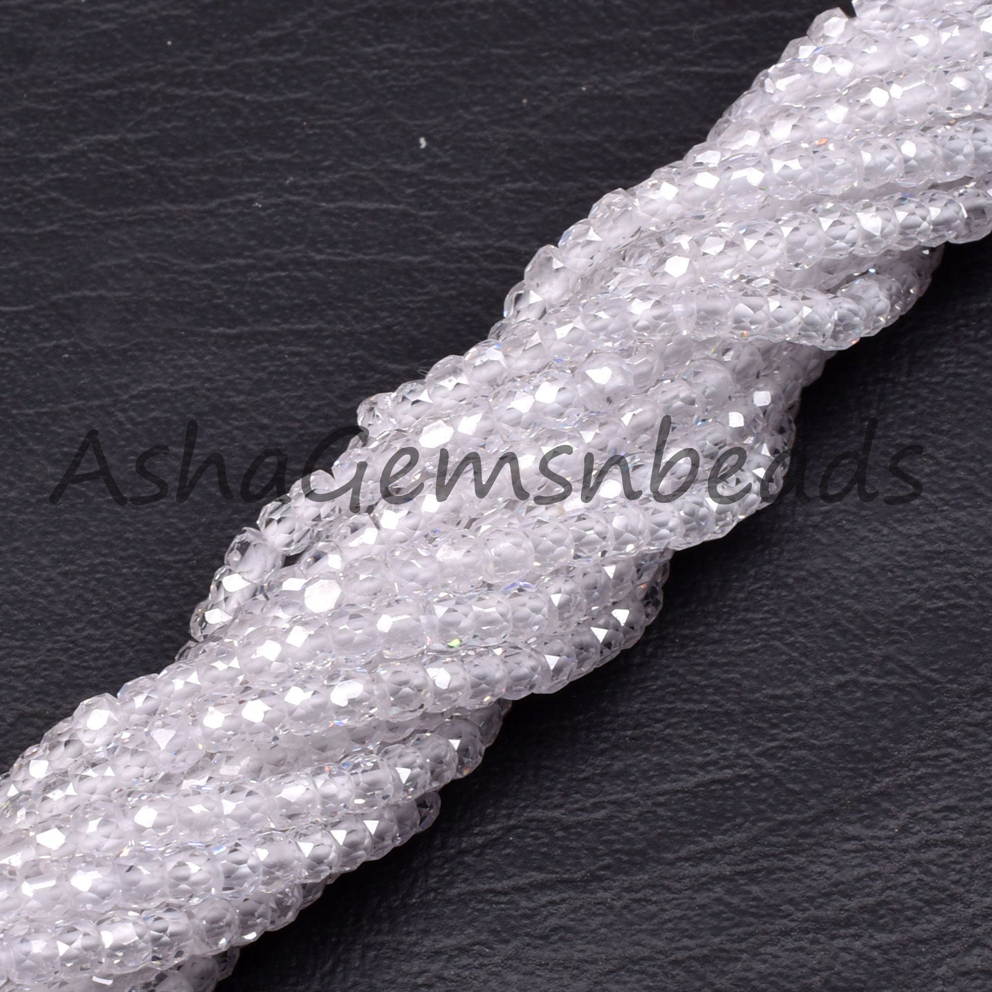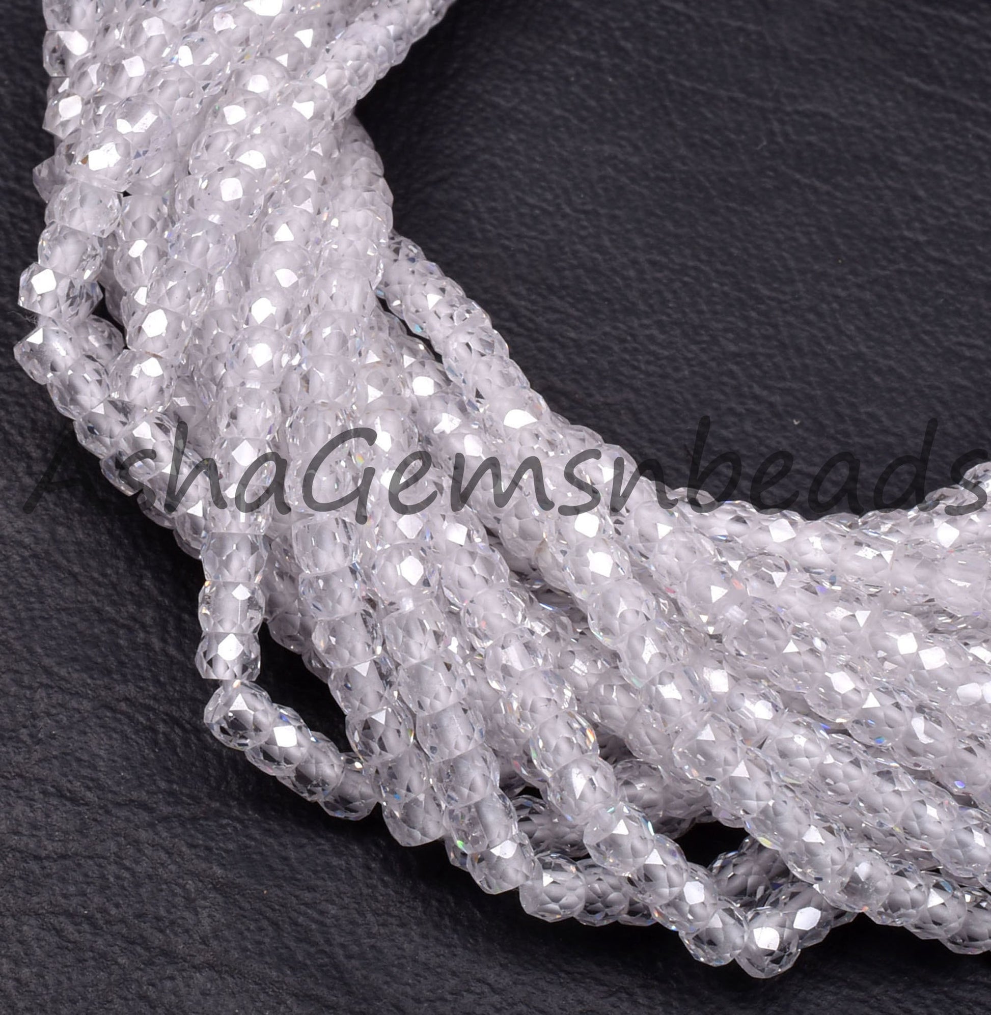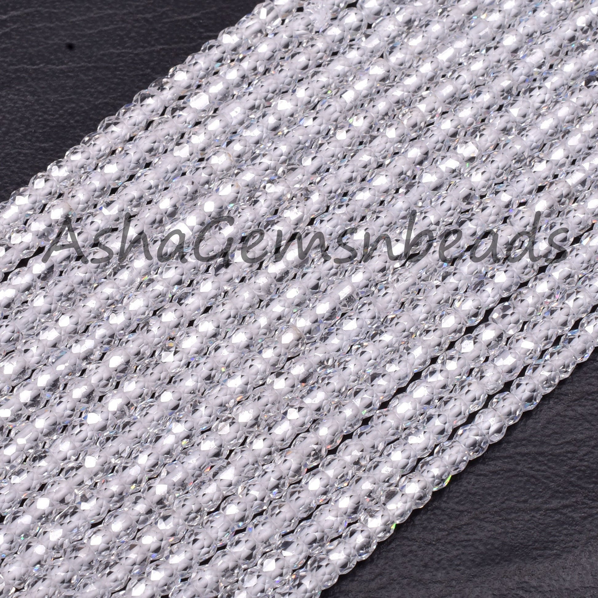Beautiful Crystal Quartz Color Zircon Micro Cut Beads,15" Strand White Zircon Faceted Roundelle Beads,3mm AAA Clear Cubic Zircon Beads SALE
