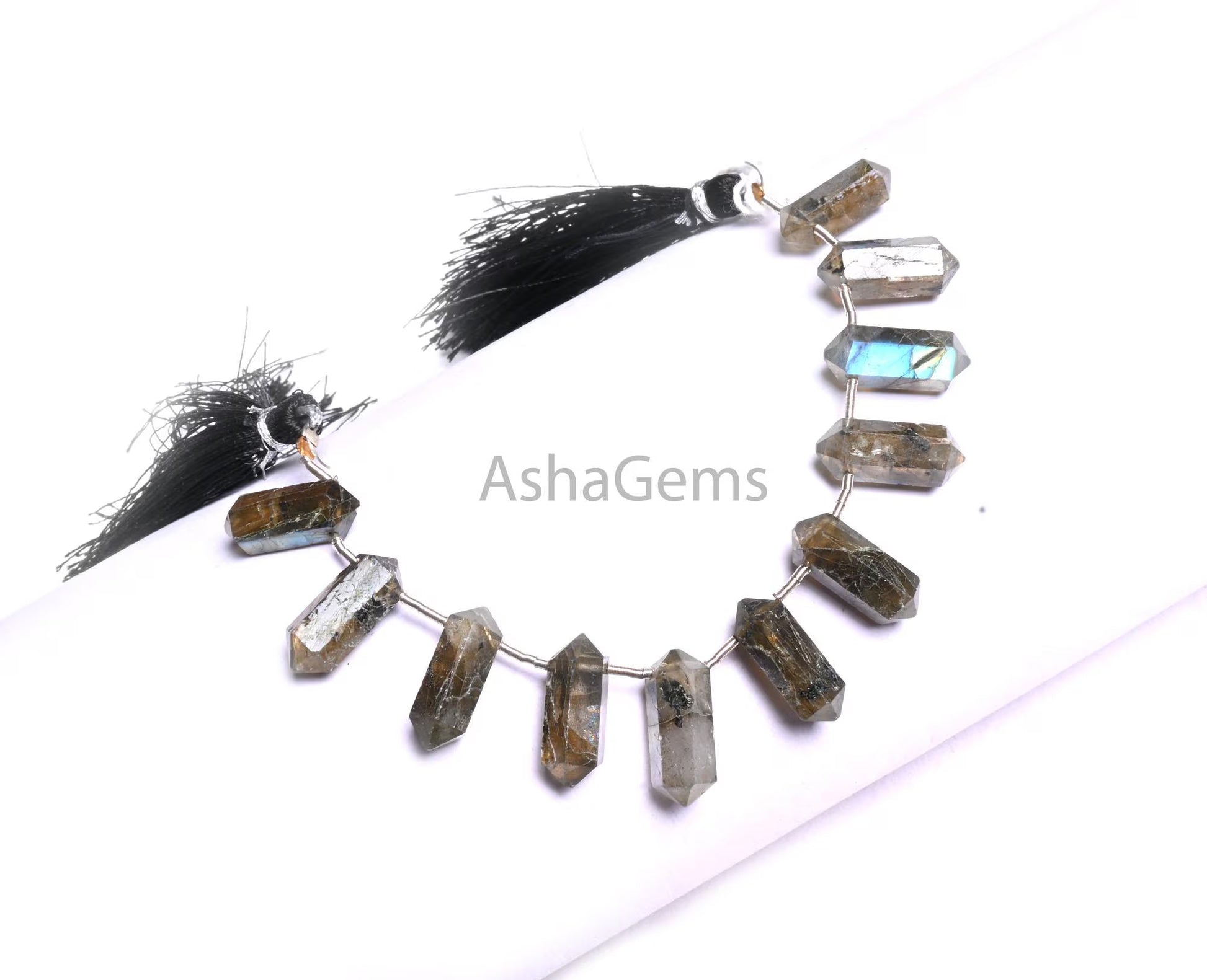 Beautiful Flashy Labradorite Fancy Bullet Shape faceted Beads,6-16mm-Natural Black rainbow Both Side Pointed Pencil Shape Beads Jewelry SALE (AG 18920)