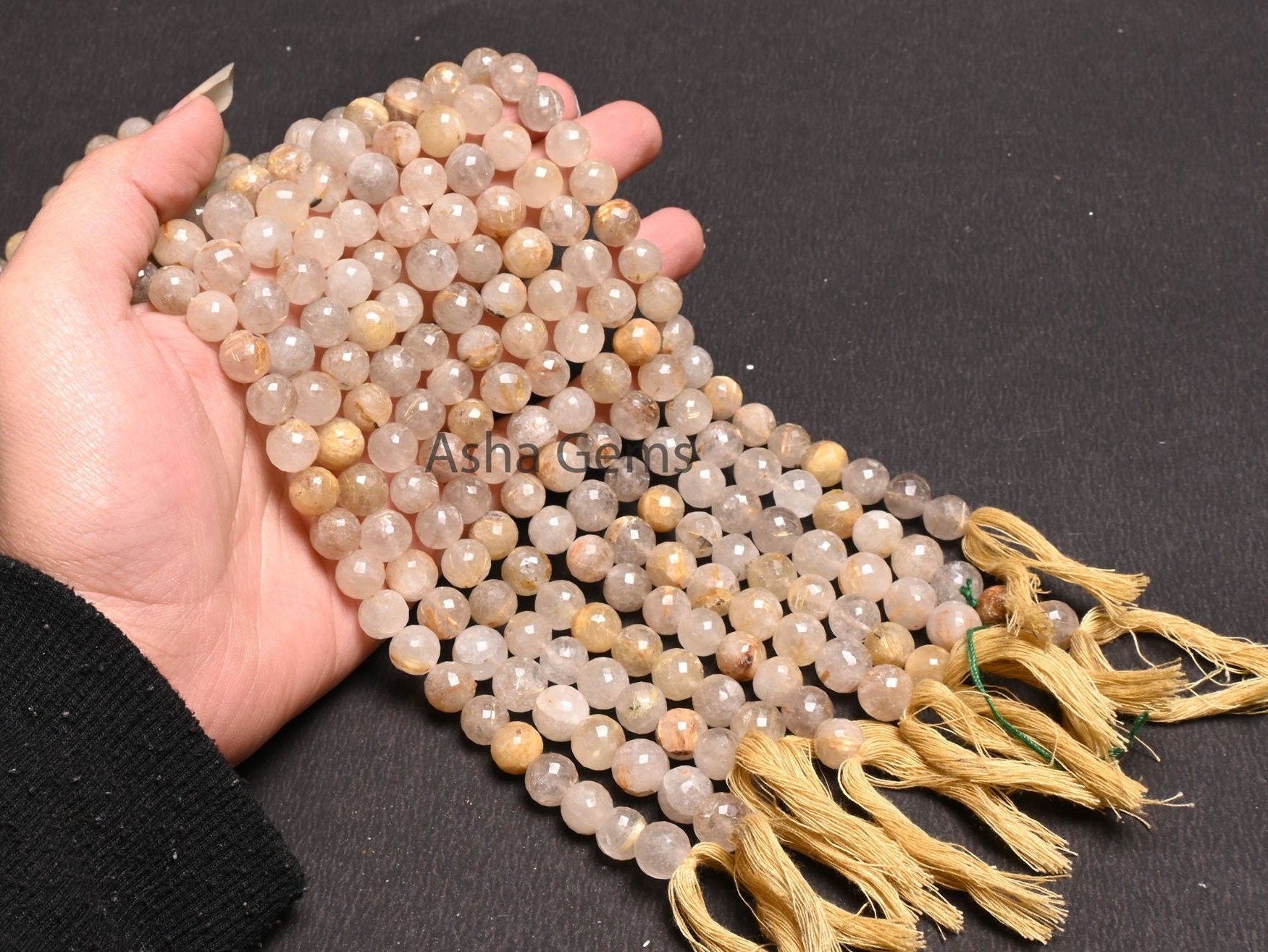 Beautiful Golden Rutile Faceted Round Shape Gemstone Beads, Natural Golden Rutile Indian Cut Round Ball Rutile Beads Jewelry handicraft SALE