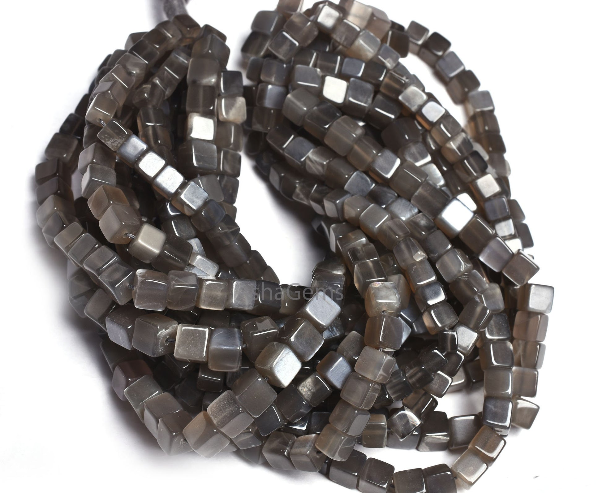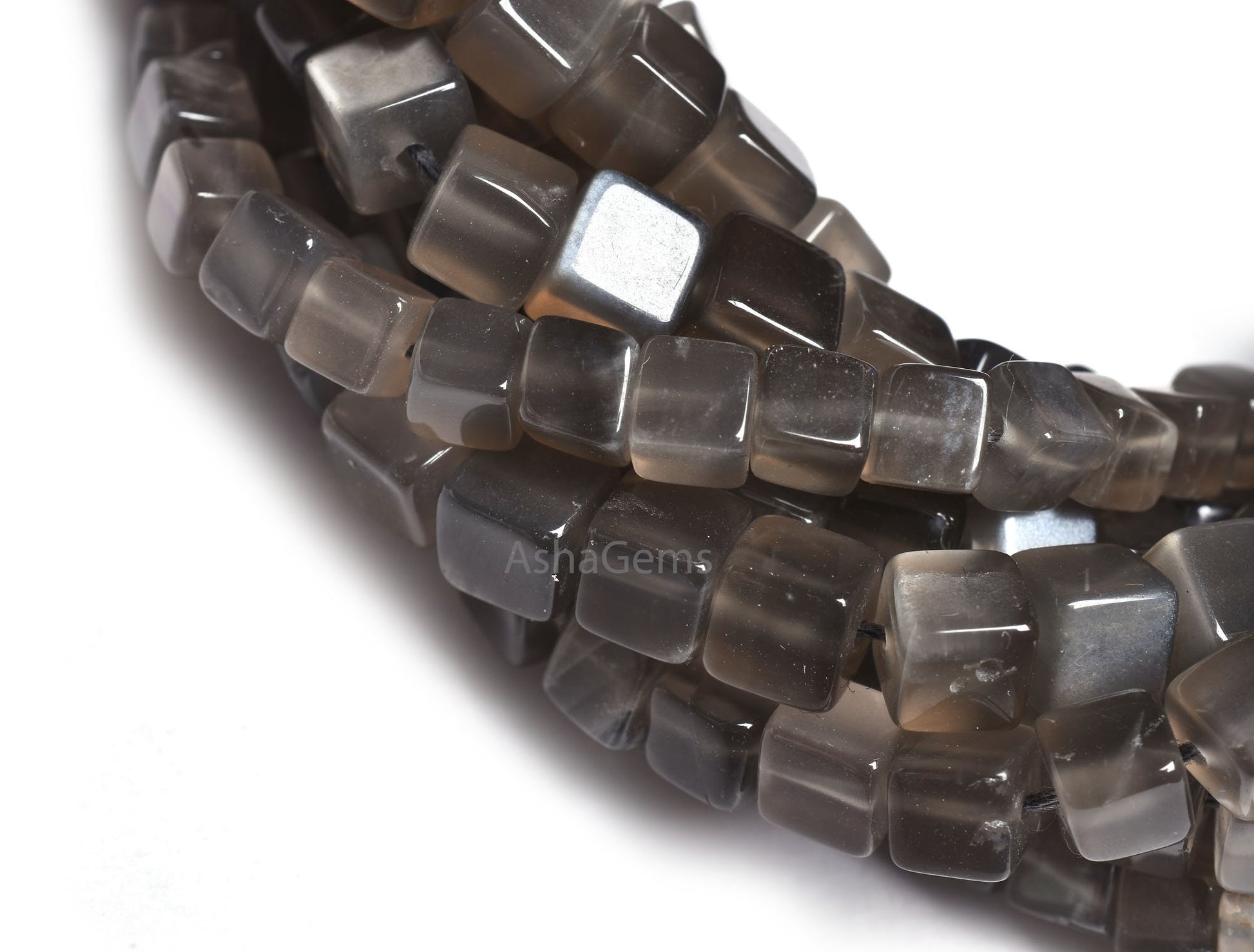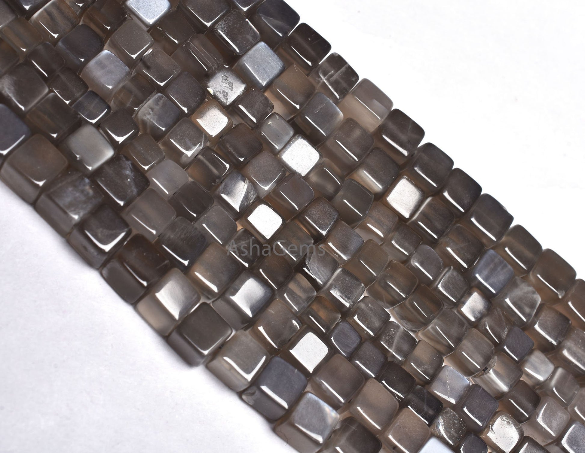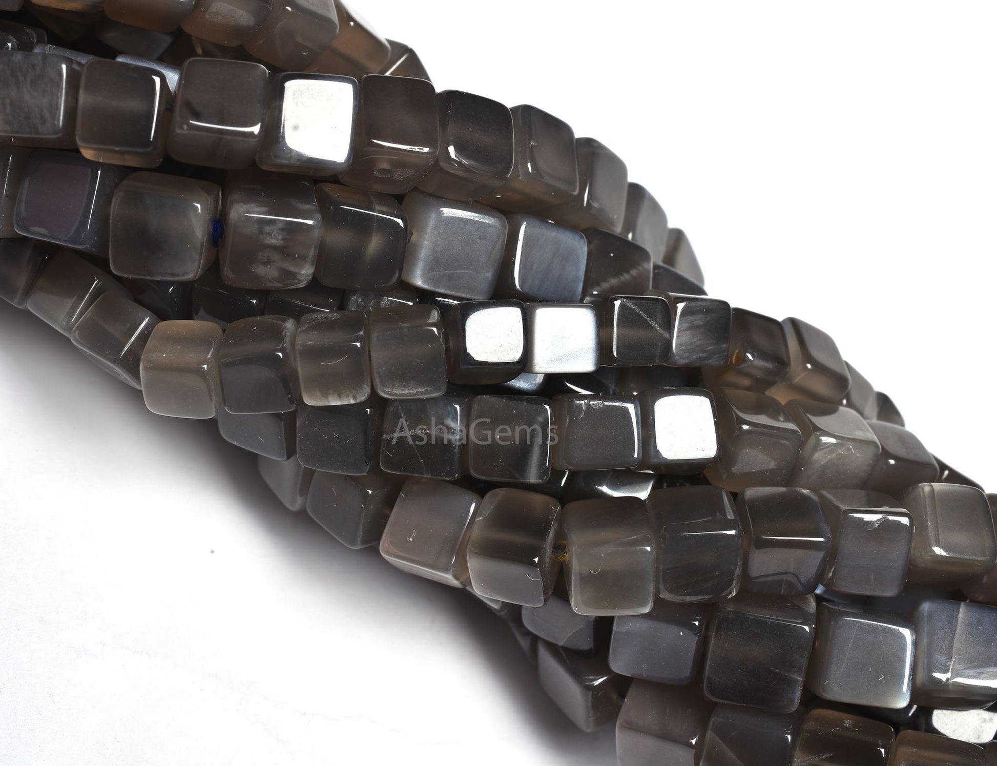 Beautiful Gray Moonstone Smooth Box Shape Beads, Natural Grey Moonstone 3D Cube Box Gemstone Beads, Moonstone Handmade Indian Beads jewelry