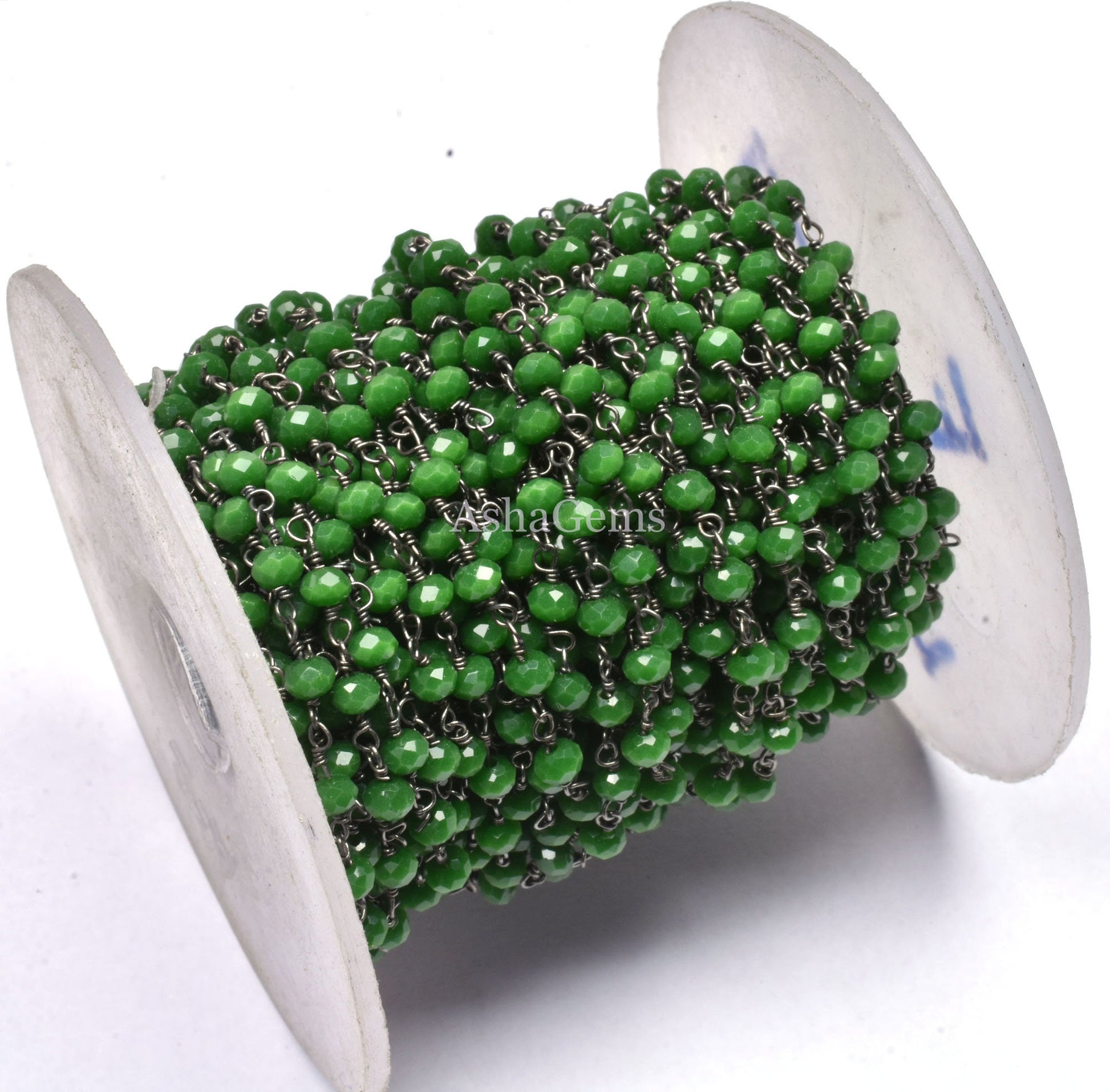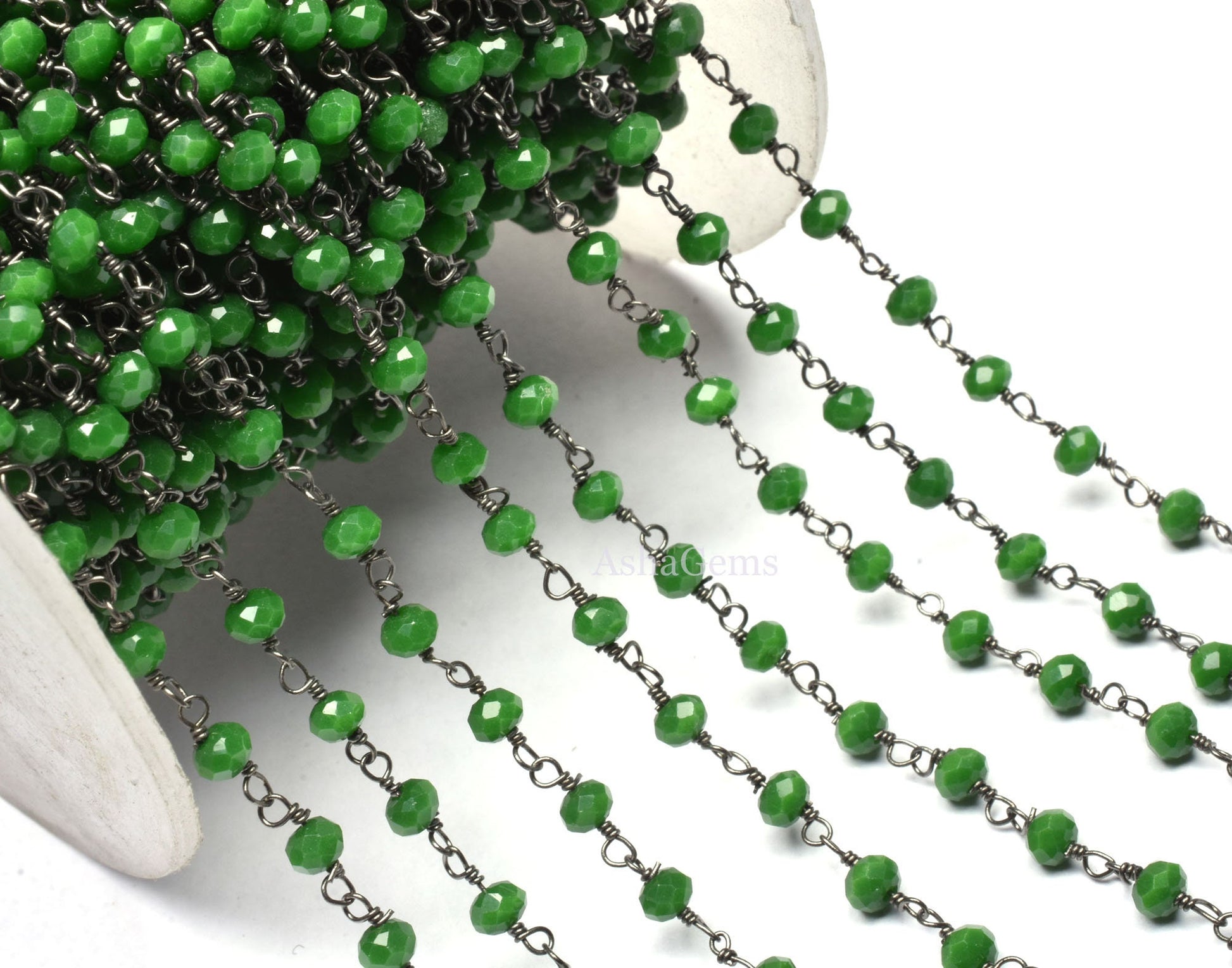 Beautiful Green Agate Hydro Rondelle Faceted Beads Rosary Chain Gunmetal Wire Wrap Black Plated Chain Jewelry Makin Handicraft Chain By Feet