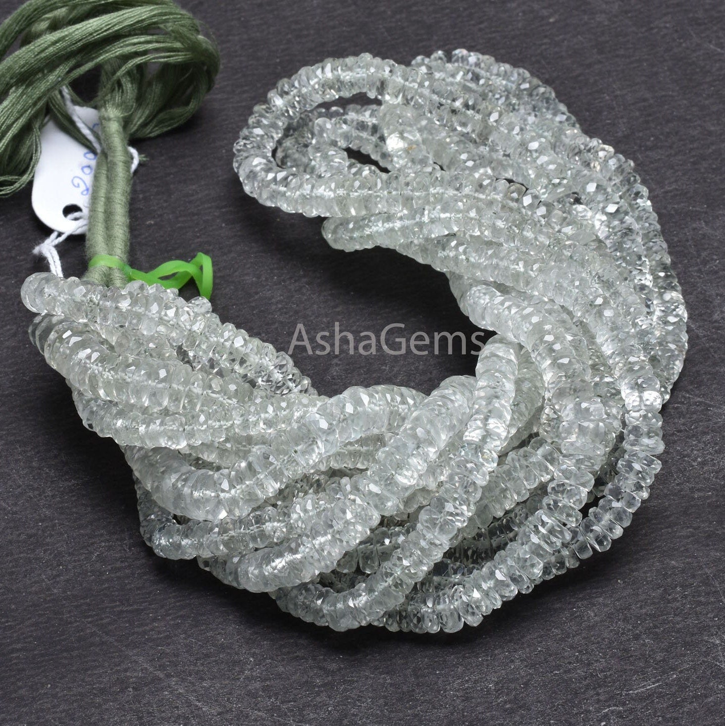 Beautiful Green Amethyst Flat Wheel Shape Faceted Beads, Natural Amethyst Indian Cut Heishi Tyre Gemstone Beads, Amethyst Bead Jewelry Craft