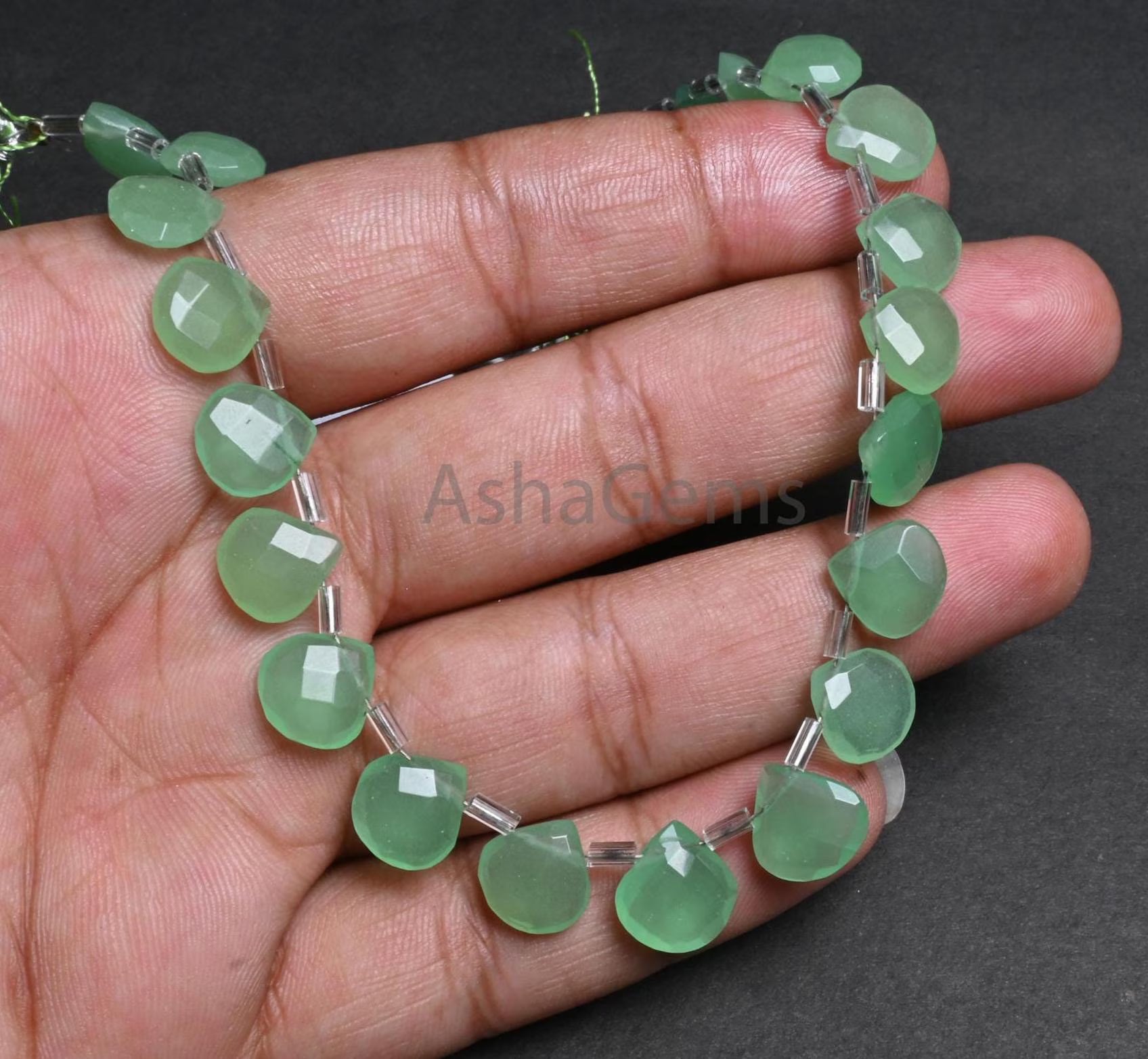 Beautiful Green Chalcedony faceted Heart Shape Beads,10-11 mm Fine Green Chalcedony Heart Briolette Side Drill Gemstone Beads Jewelry Making (AG 18915)