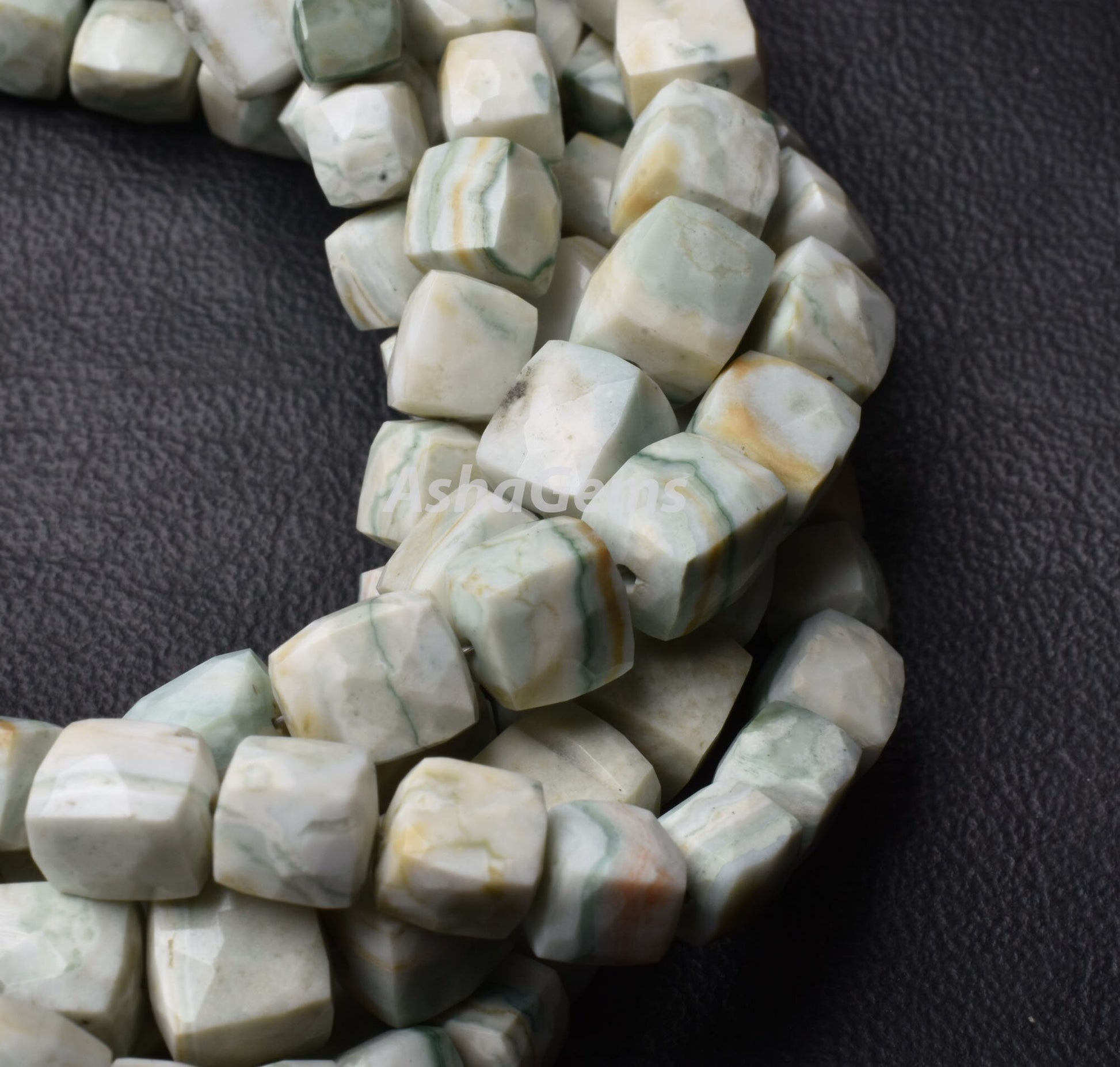 Beautiful Green Dot Opal Faceted Box Shape Beads,8" Strand Natural Opal 3D Cube Box Beads, Opal Faceted Cube Beads For Jewelry Making Crafts