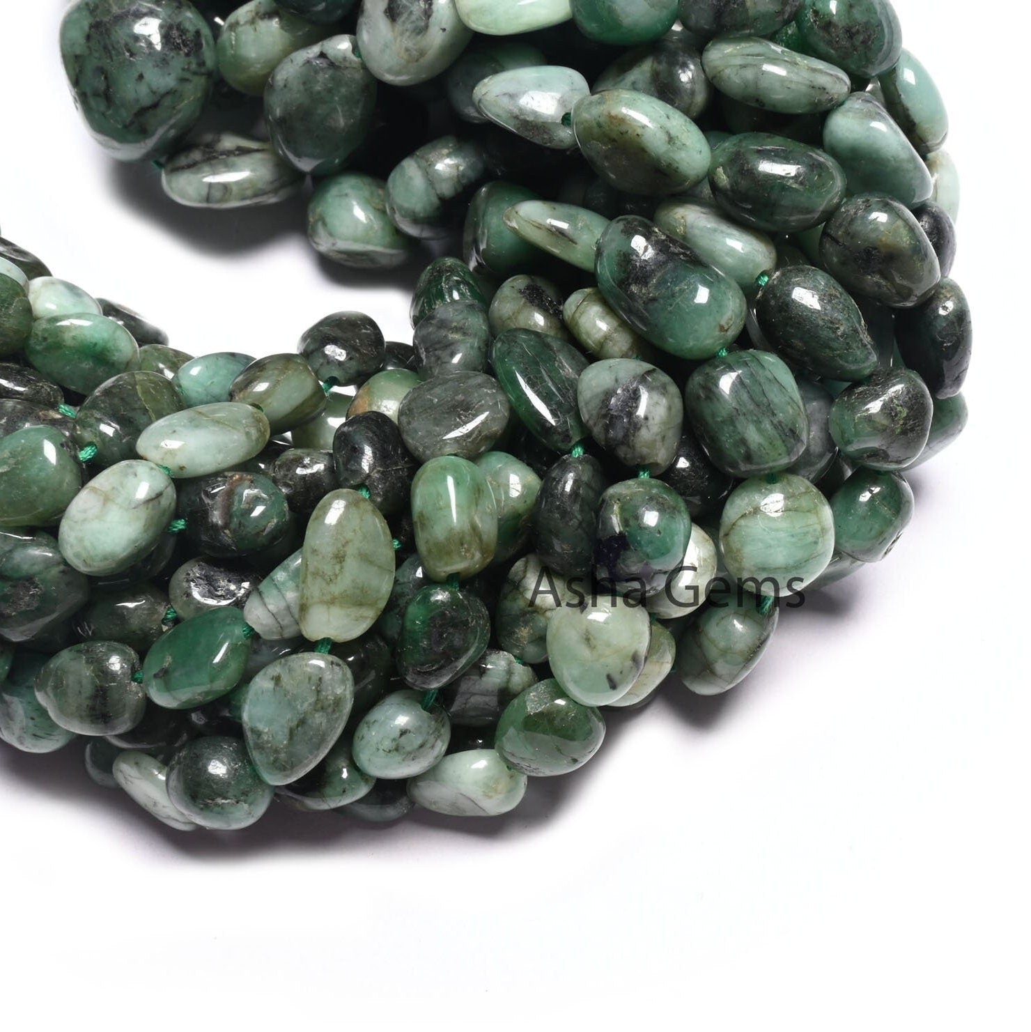 Beautiful Green Emerald Smooth Nugget Gemstone Loose Beads,Sakota Emerald Tumble Handmade Graduation Size Emerald Bead Necklace Jewelry SALE (AG 22301)