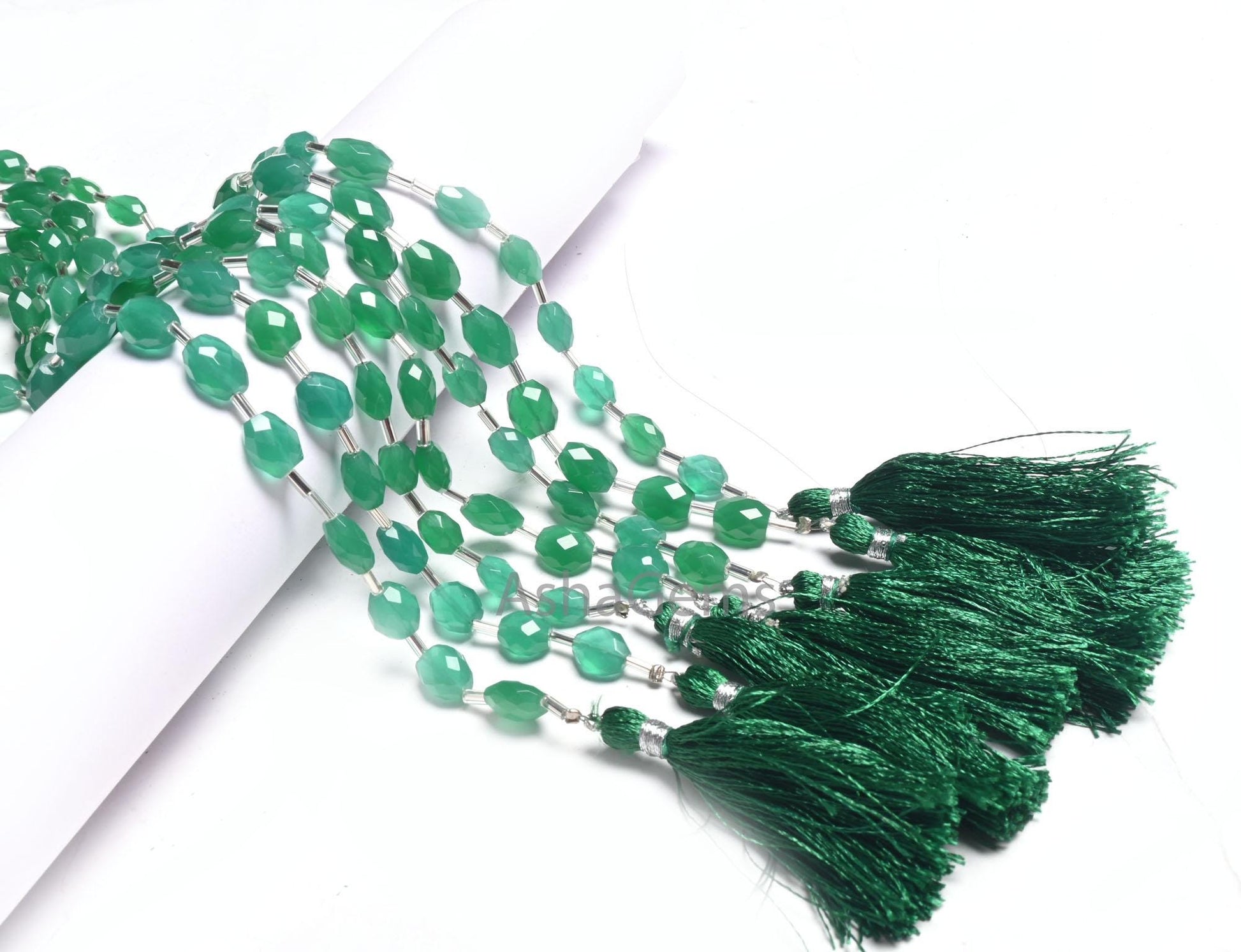 Beautiful Green Onyx Fancy Puff Oval faceted Gemstone Loose Beads110" Green Onyx Indian Cut Oval Briolette Handmade Onyx Beads Jewelry Craft