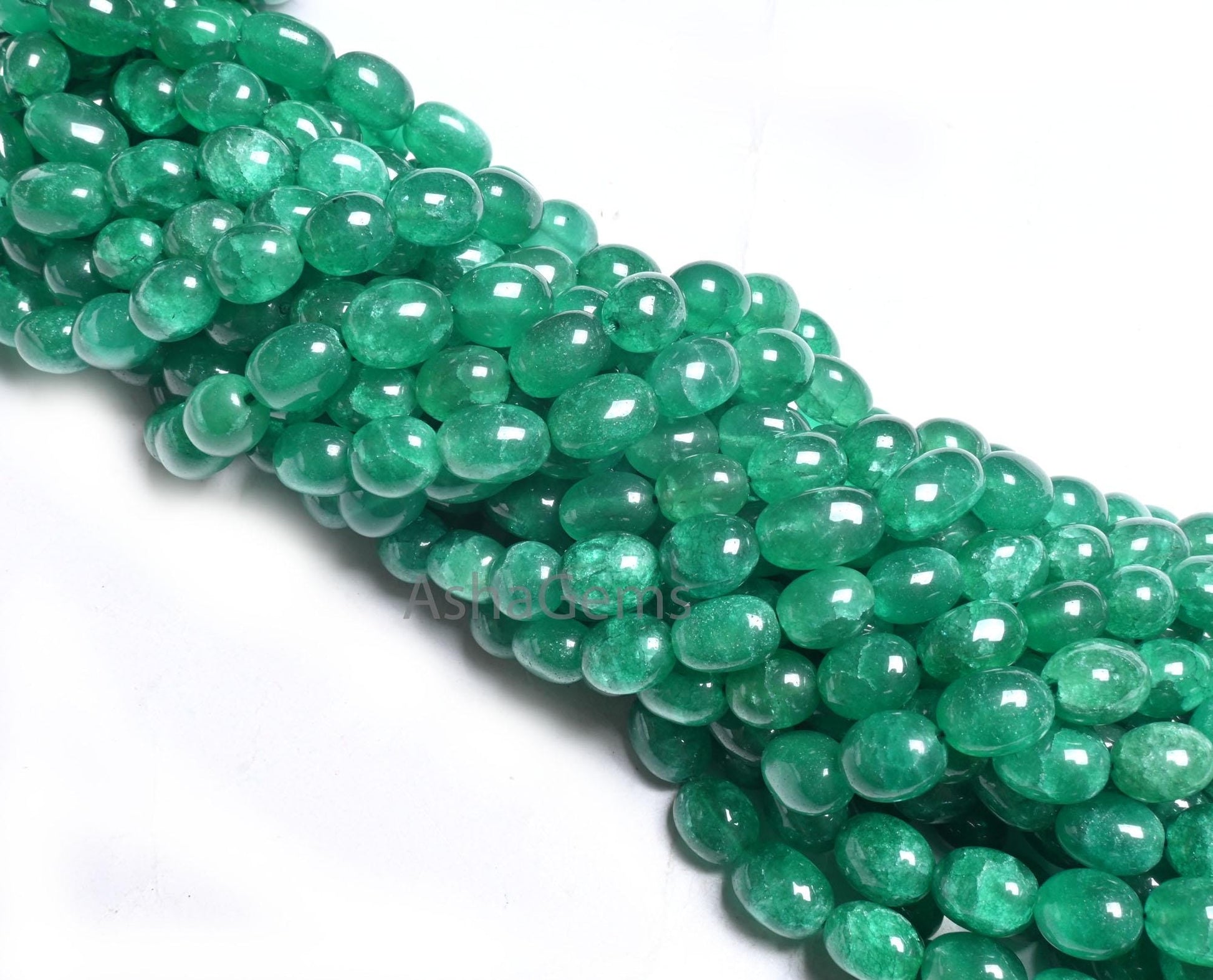 Beautiful Green Quartz Smooth Puff Oval Fancy Shape Beads,9/18" Strand Fine Quartz Plain Handmade Oval Quartz Gemstone Beads Jewelry Making