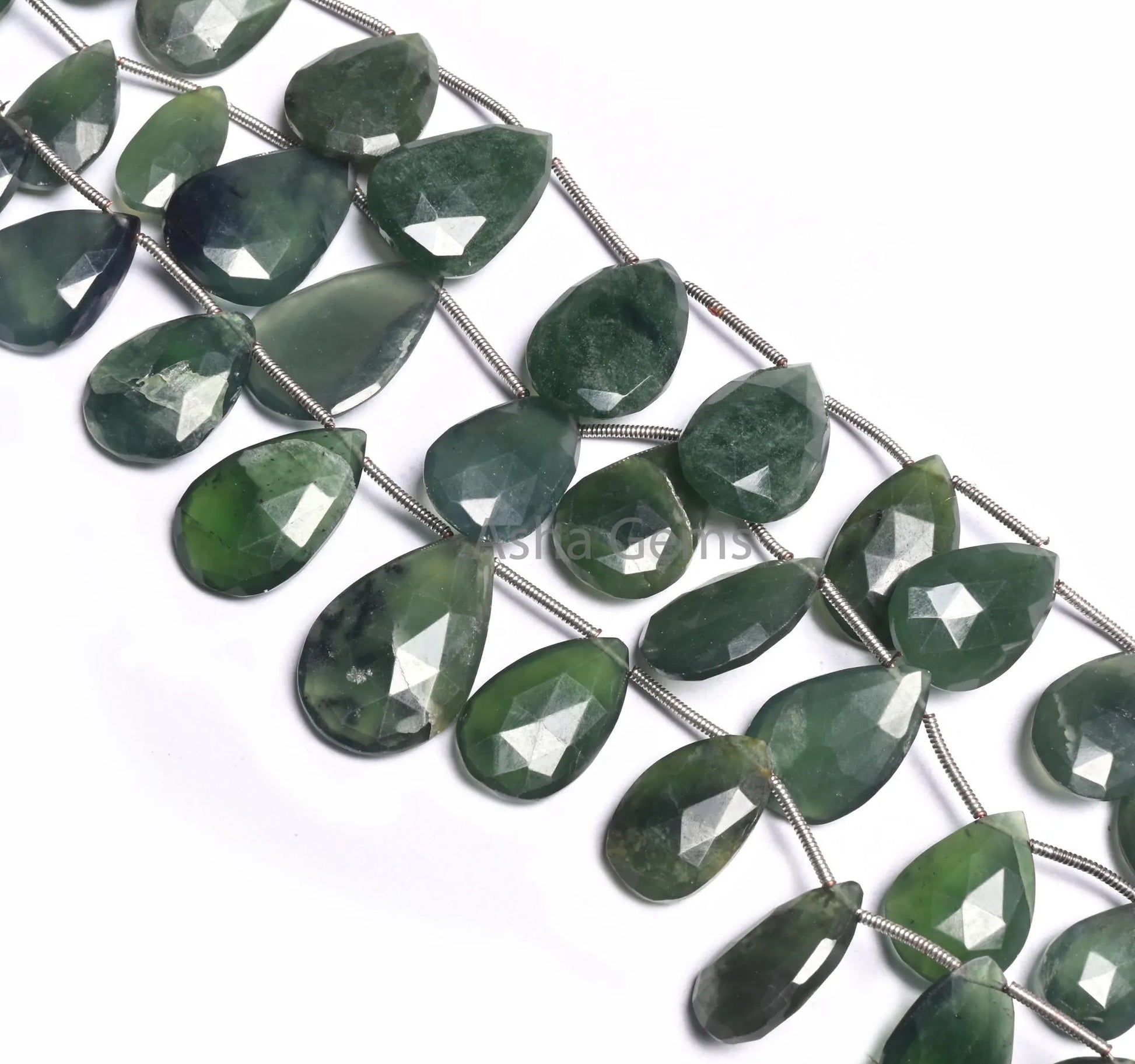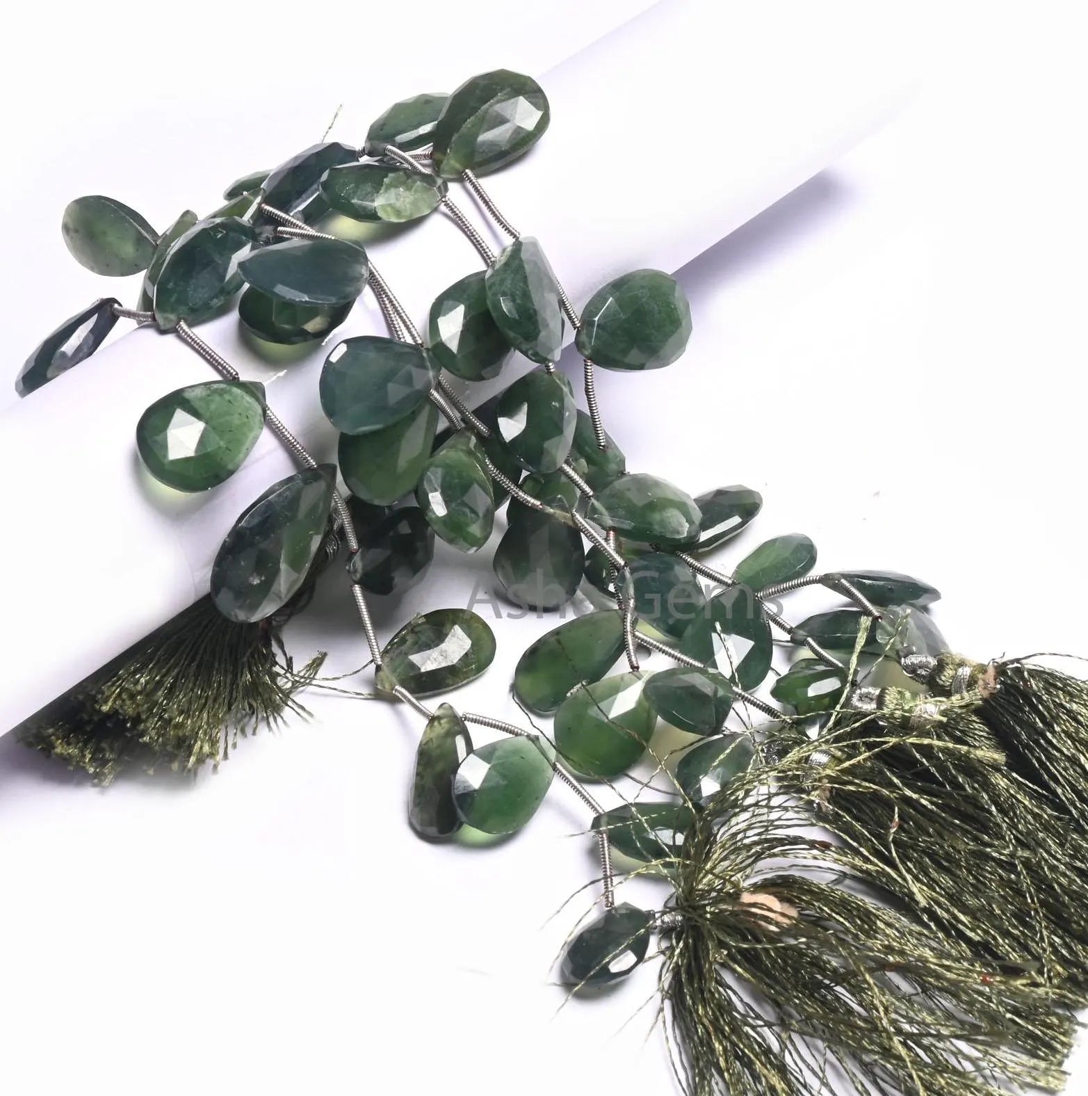 Beautiful Green Serpentine faceted Pear Shape Gemstone Beads,8" Natural Serpentine Teardrop Briolette Serpentine Beads Jewelry making Crafts(AG 18522)