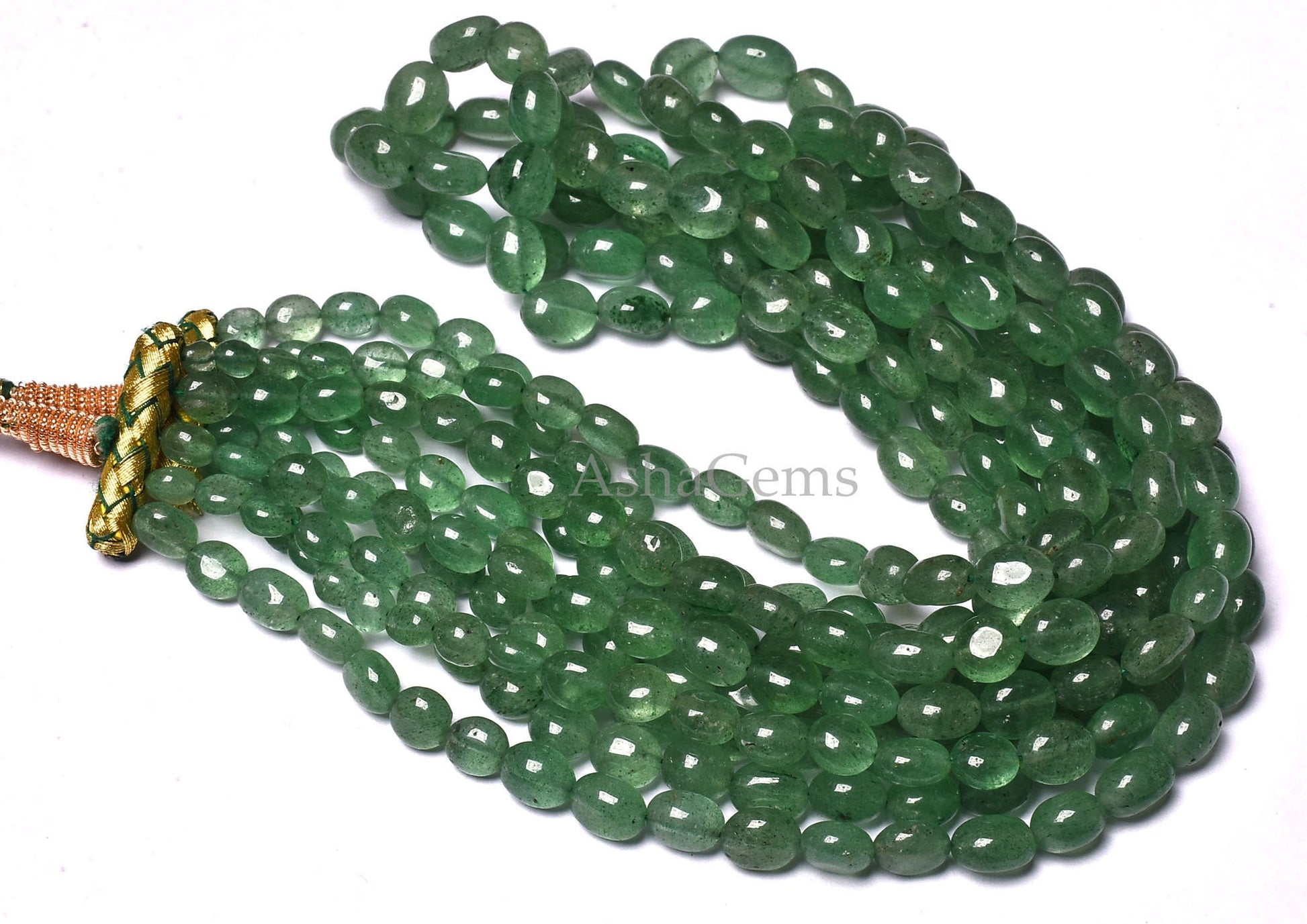 Beautiful Green Strawberry Smooth Oval Shape Gemstone Beads 17-21" Graduated Necklace AAA Green Strawberry Handmade Plain Oval Beads Jewelry