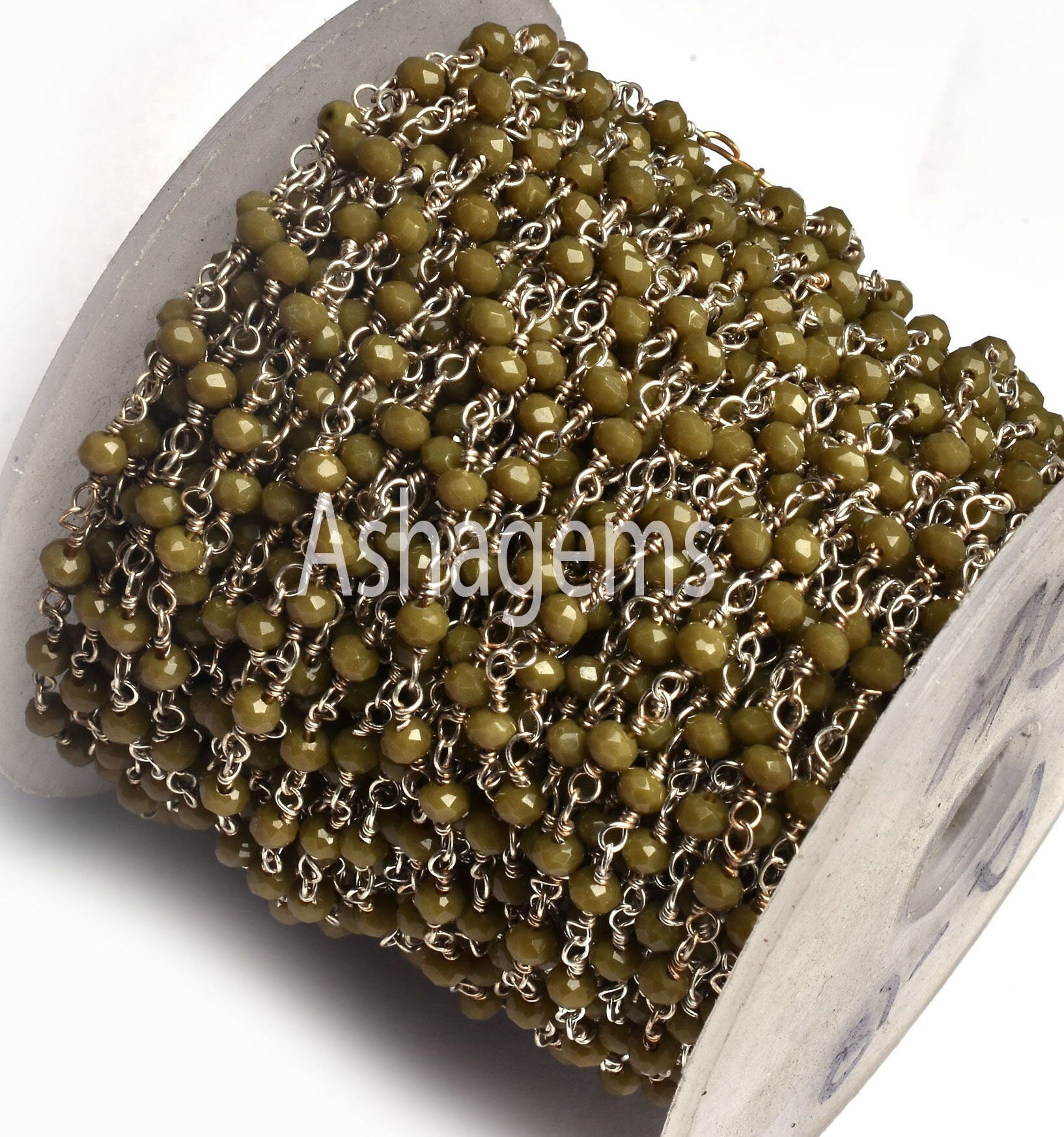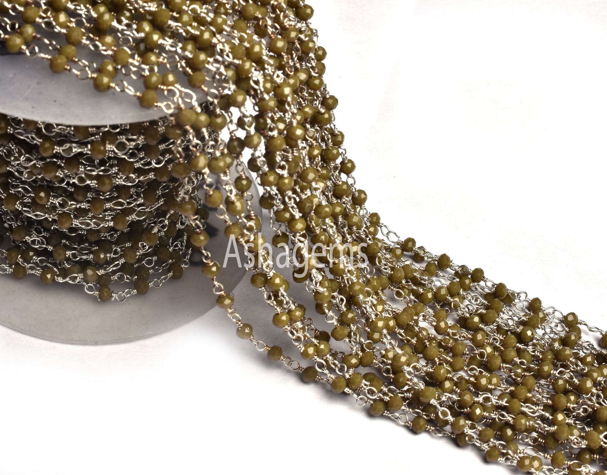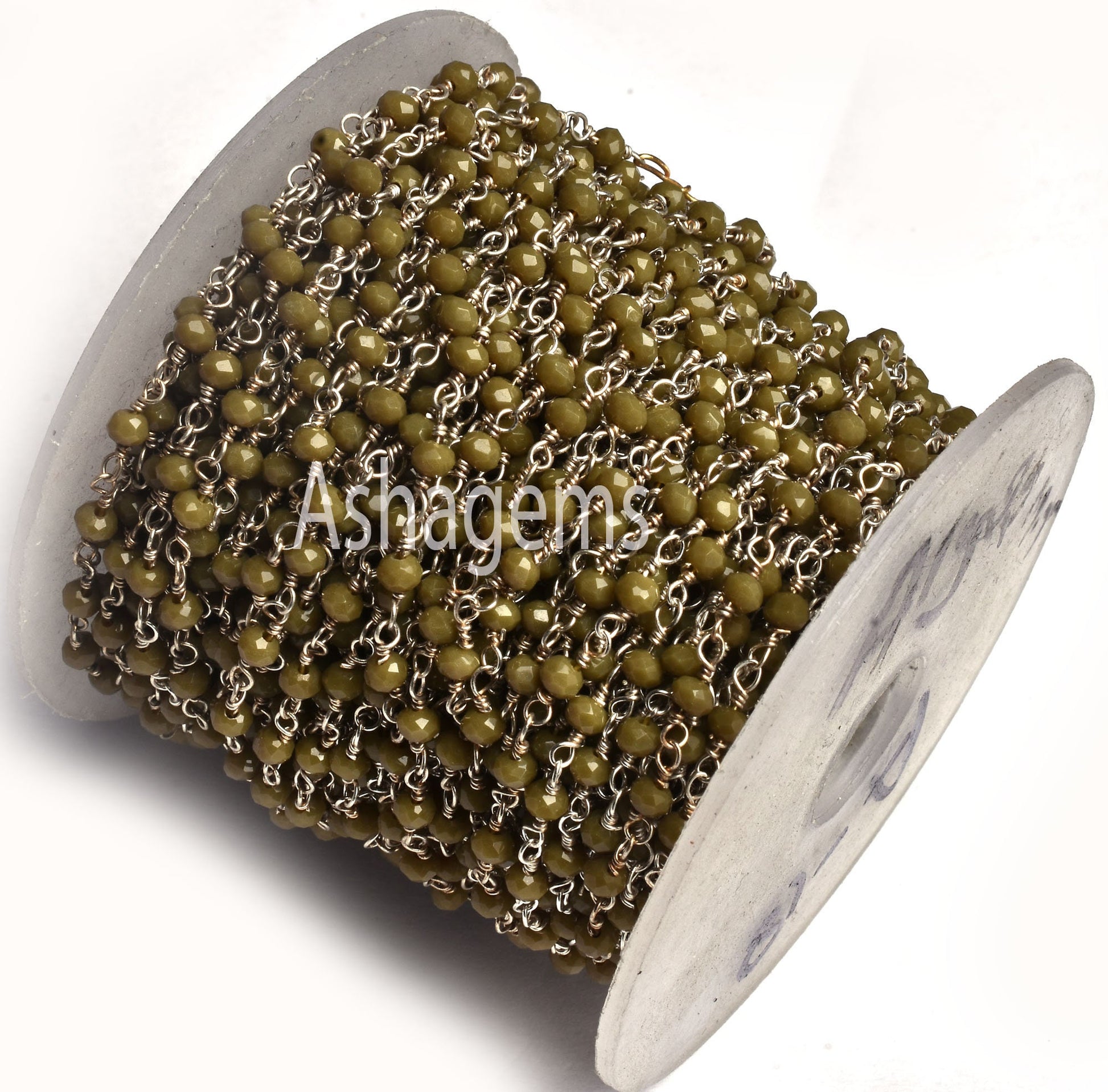 Beautiful Hina Green Jasper Hydro Beads Rosary Chain,3 mm Sliver Plated Wire Wrap Rondelle faceted Beaded Handmade Chain Jewelry Making SALE