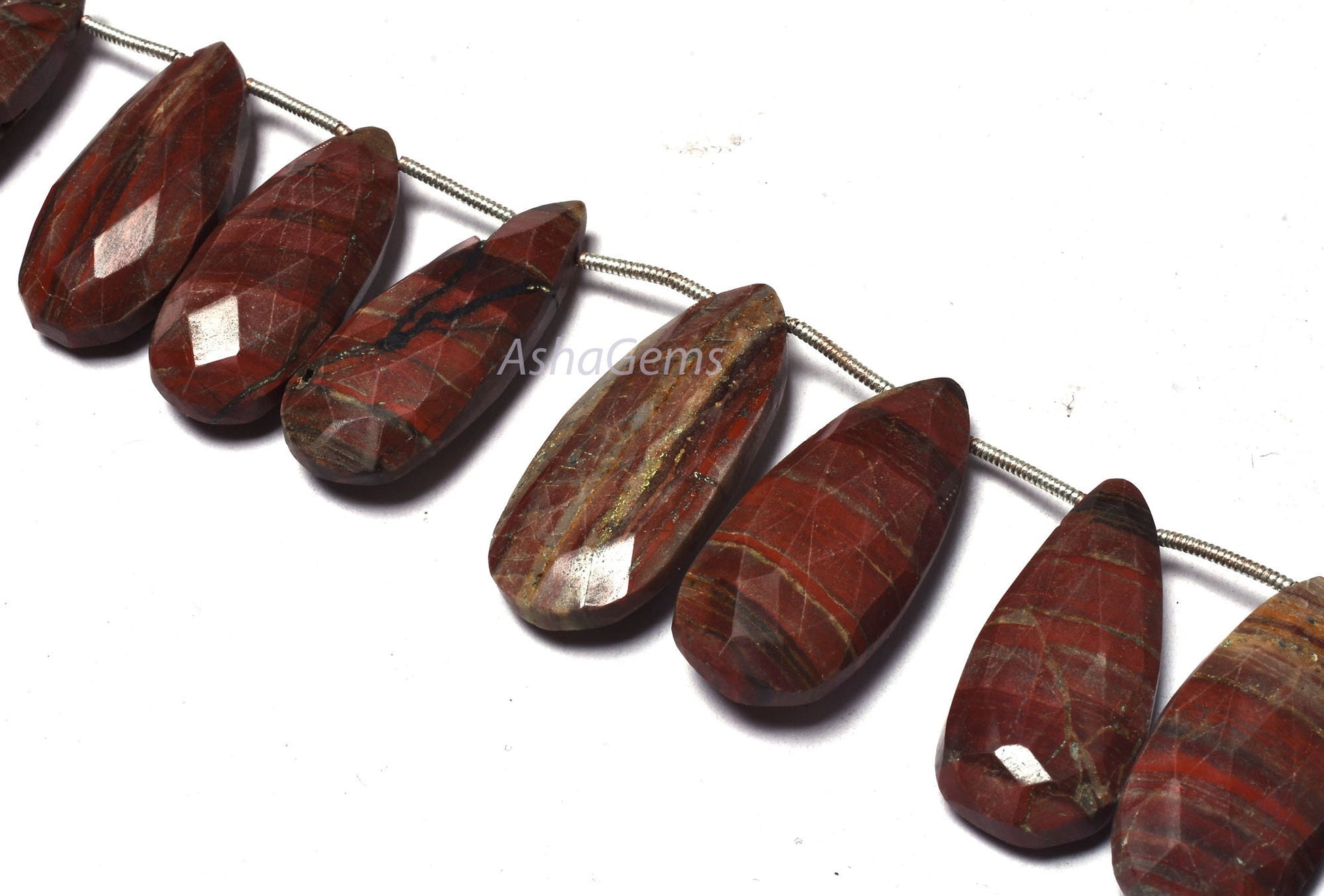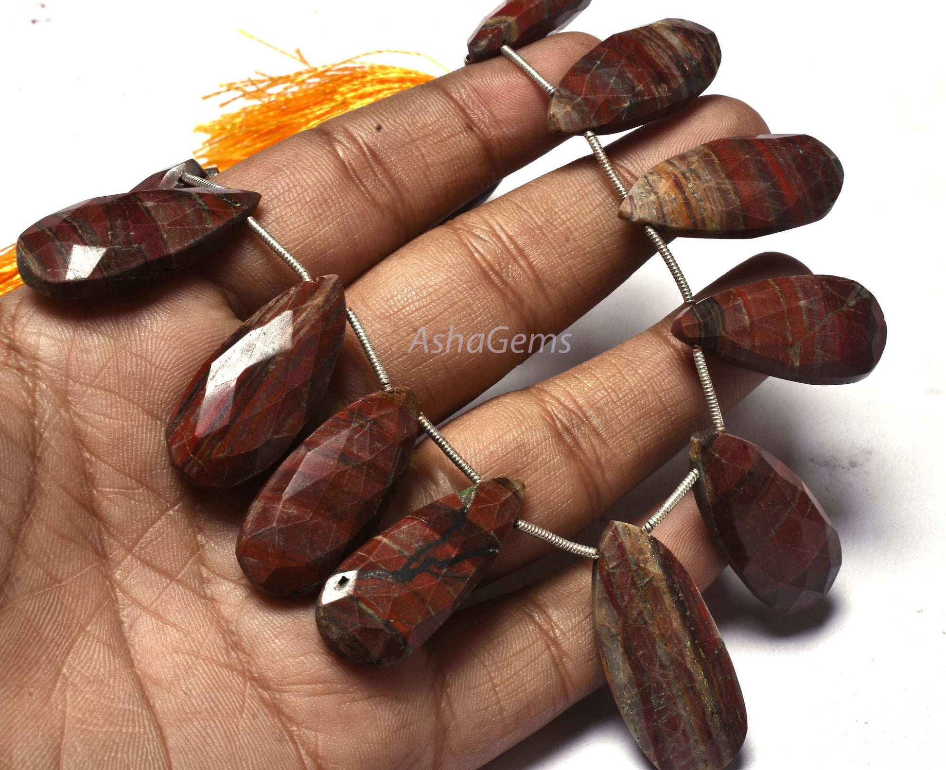 Beautiful Jasper Faceted Teardrop Beads,13 Piece Strand Shaded Red Jasper Pears Briolette Beads, Red Jasper Gemstone Bead Jewelry Craft Sale