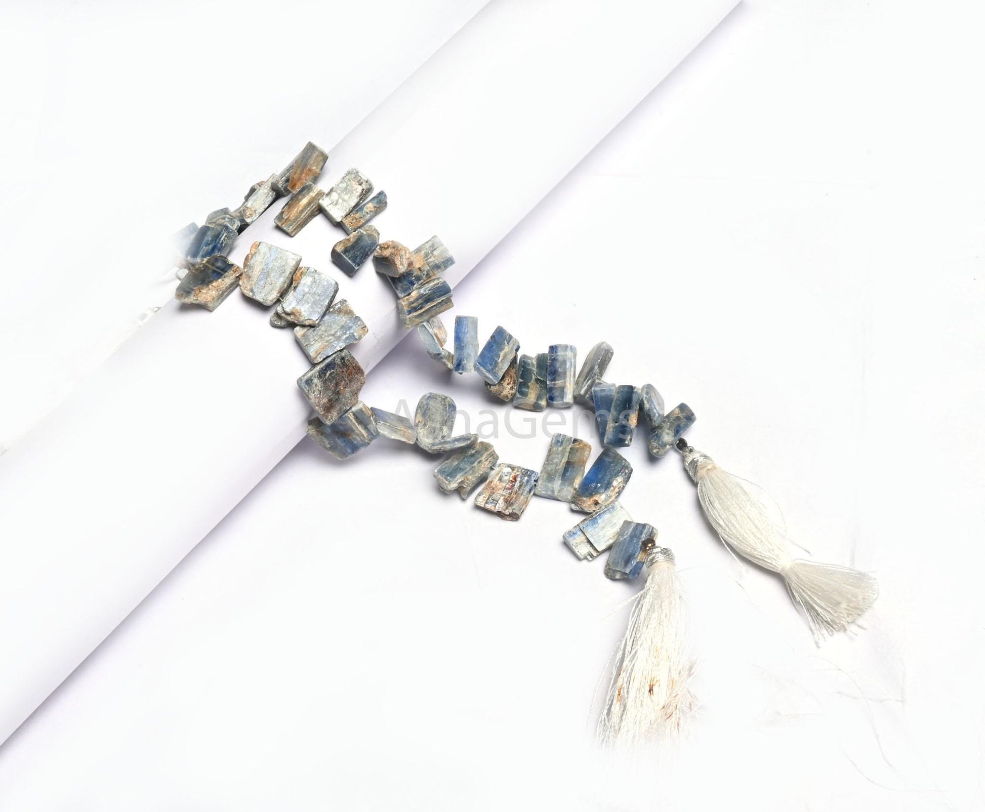 Beautiful Kyanite Smooth Raw Slice Uneven Beads,8"Strand natural Blue Kyanite Flat Rough Unshape Gemstone Kyanite Beads Jewelry Making Craft