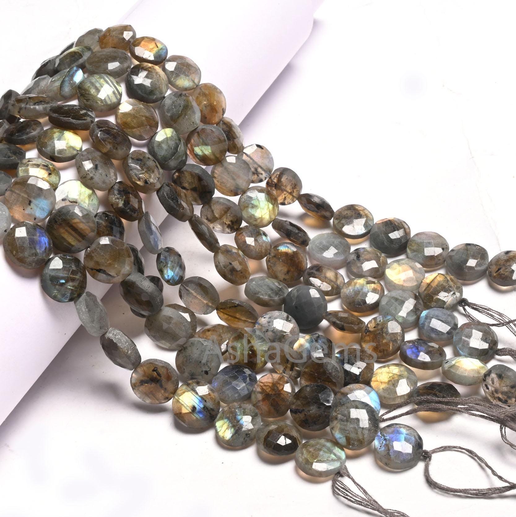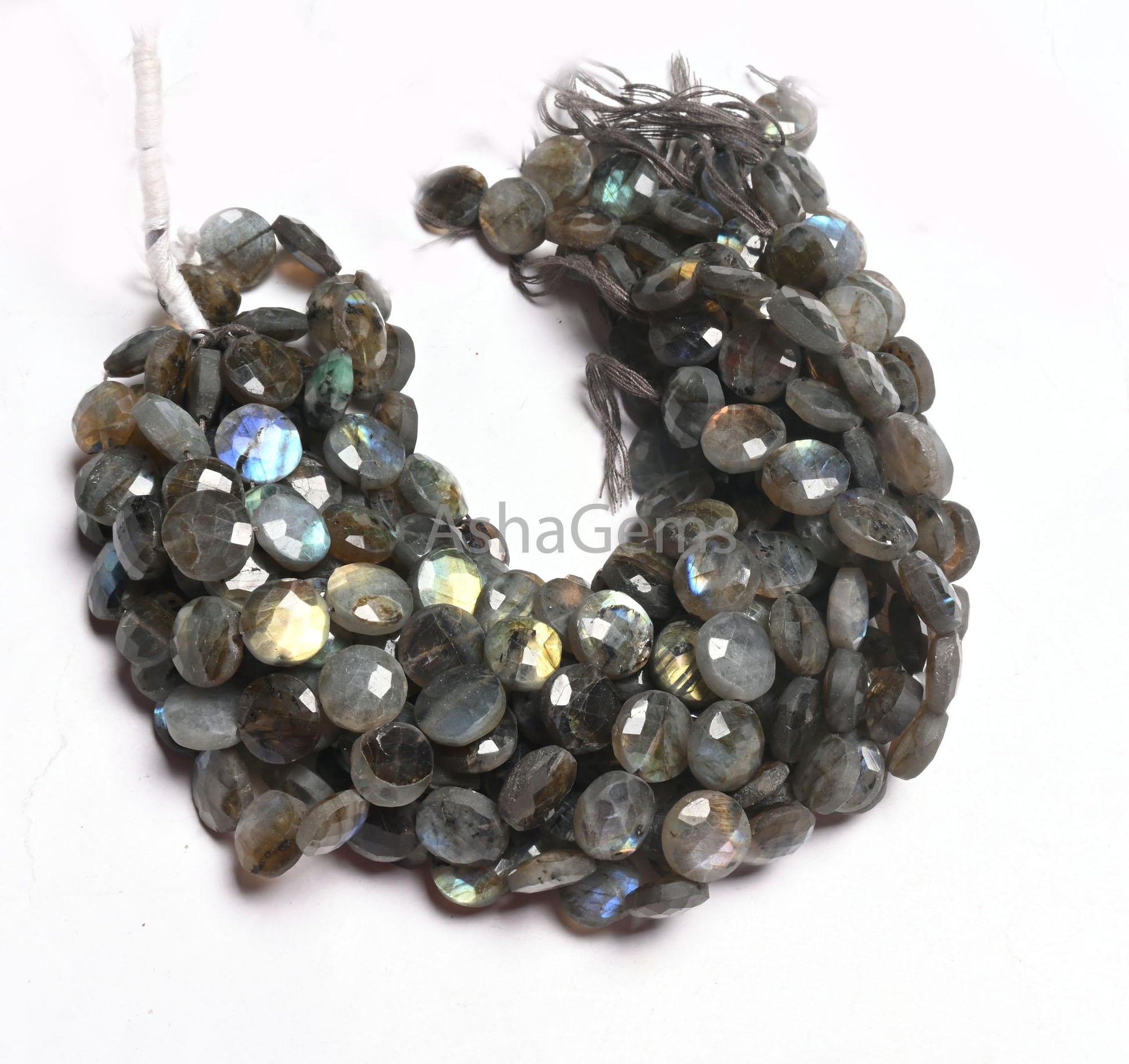Beautiful Labradorite Faceted Coin Shape Gemstone Beads, natural Multi Flash Black rainbow Coin Briolette T- Drill labradorite Beads Jewelry