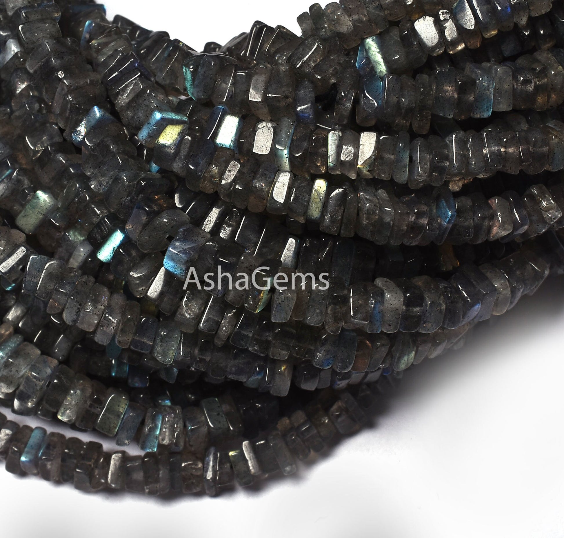 Beautiful Labradorite Smooth Heishi Square Shape Gemstone Beads, Plain Flat Beads, Natural Black Rainbow,Labradorite Jewelry Making Crafts