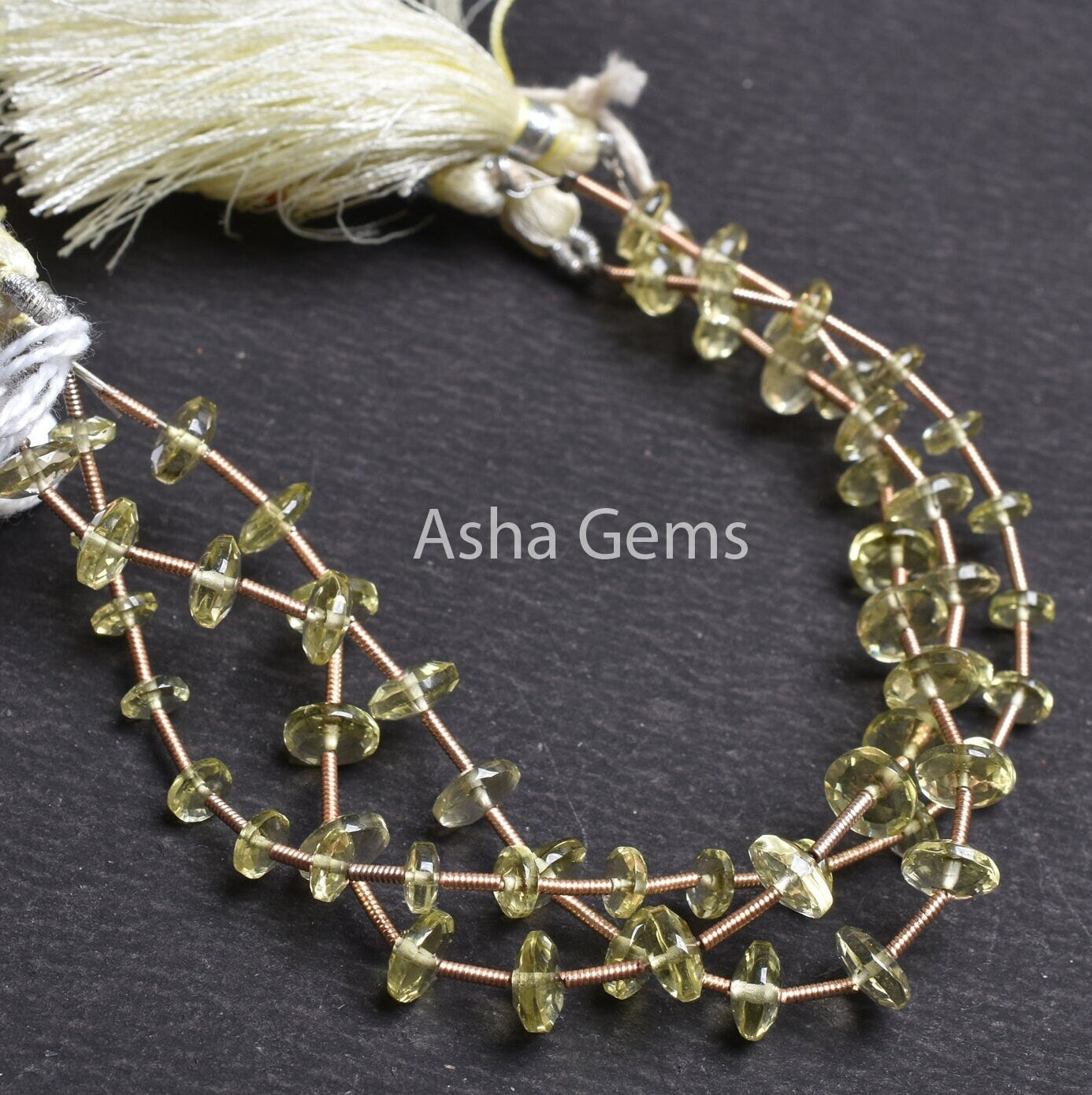 Beautiful Lemon Quartz Fancy Flat Rondelle Beads, Natural Lemon German Cut Gemstone Loose Beads,6" Lemon Quartz Beads Jewelry Making Crafts
