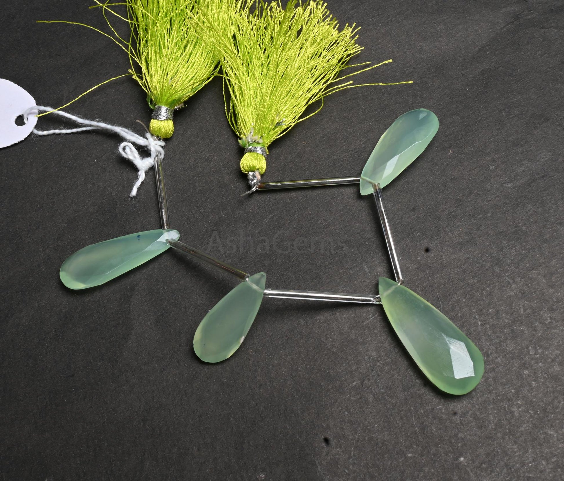Beautiful Light Green Chalcedony Faceted Pears Shape Bead, Fine Aqua Sea Green Chalcedony Fancy Long Teardrop Briolett Gemstone Bead Jewelry
