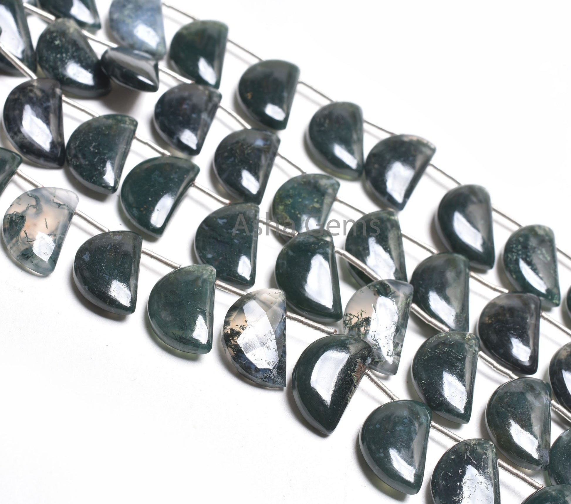 Beautiful Moss Agate Smooth D Shape Gemstone Beads,10x16 mm Moss Green Agate Side Drill Fancy Handmade Bead, Moss Agate Bead Jewelry Makings