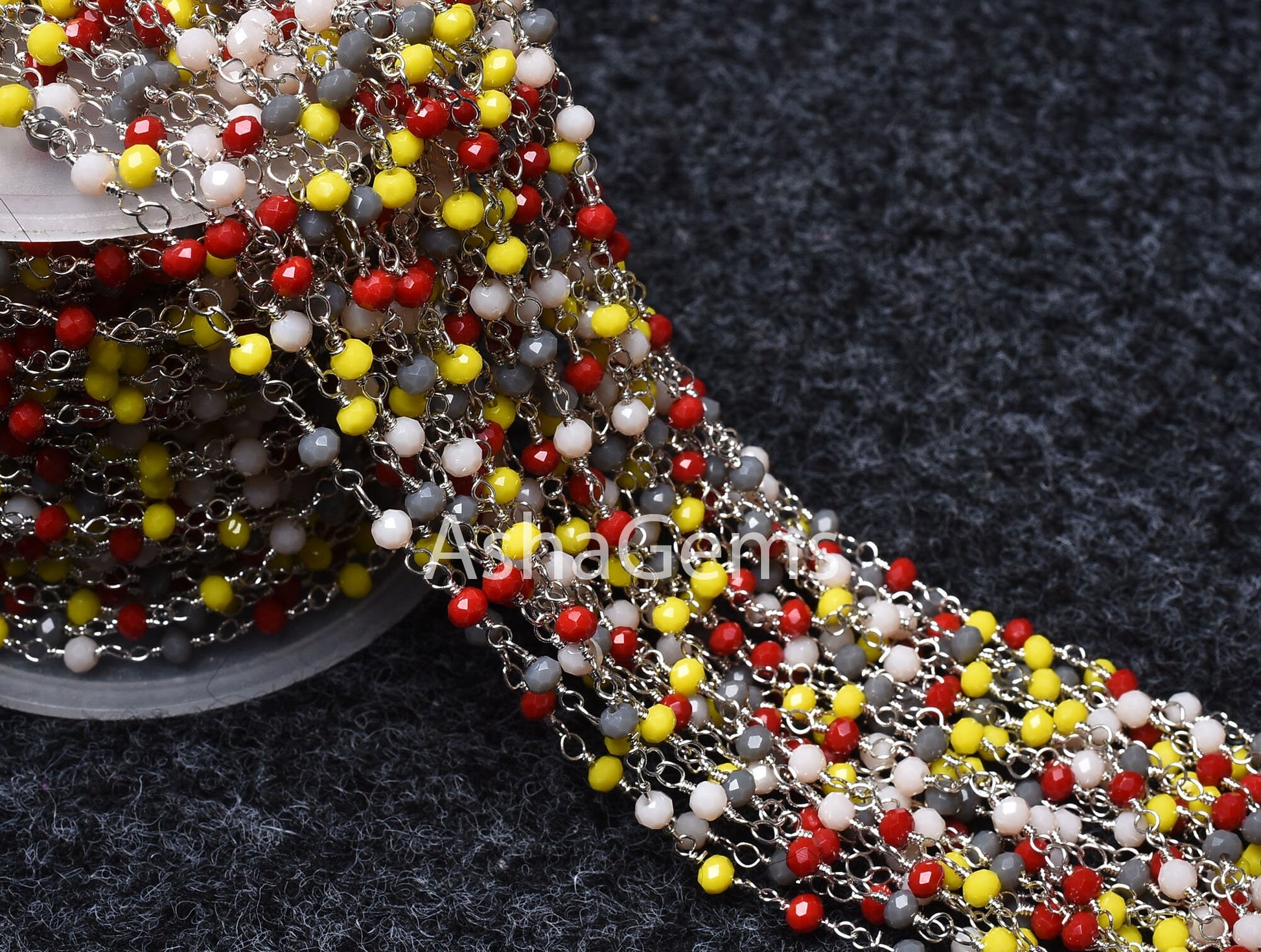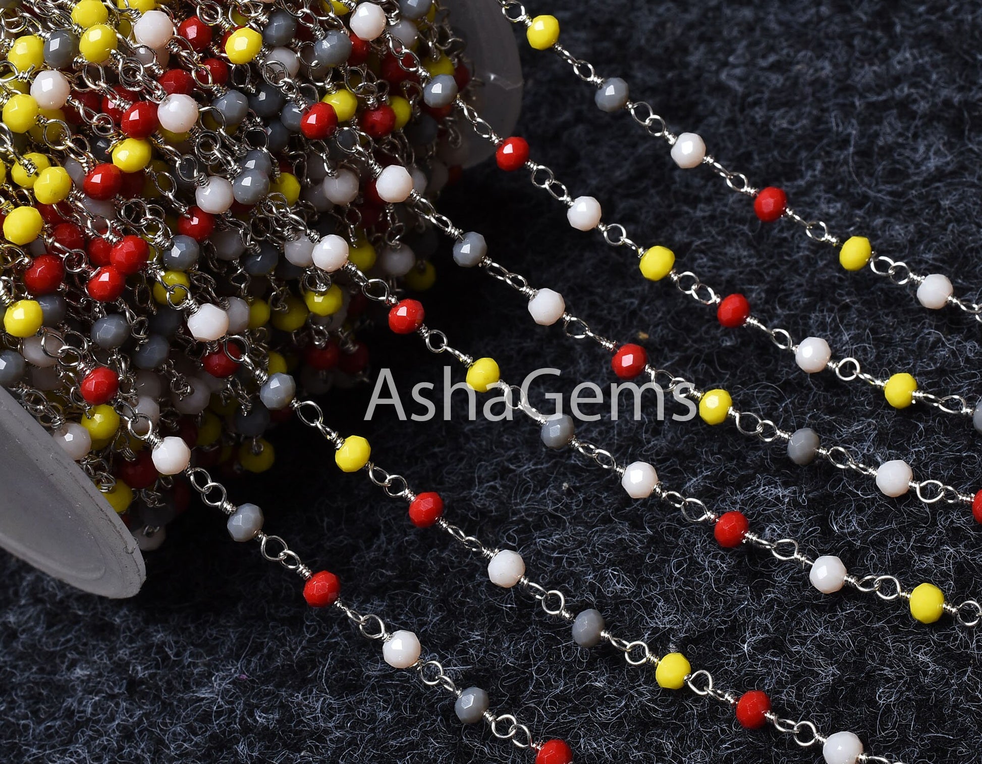 Beautiful Multi Color Disco Hydro Faceted Beads Rosary Chain,3 mm Silver Plated Wire Wrap Handmade Rosary Chain For Jewelry Making Necklace