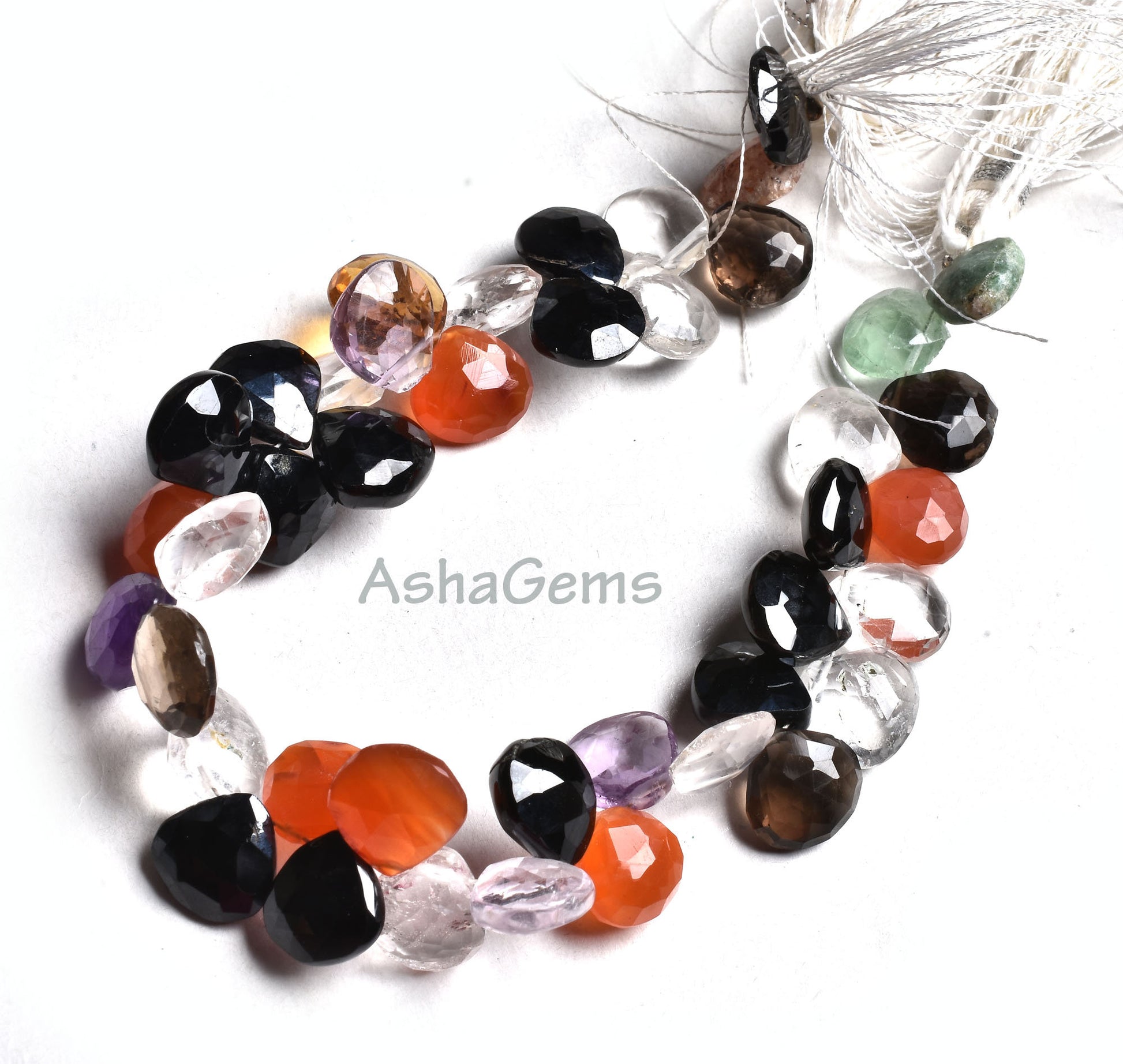 Beautiful Multi Color Gemstone Heart Shape Beads, Disco Heart Briolette Beads,7" Natural Mix Color Stone Faceted Heart Beads Jewelry Crafts