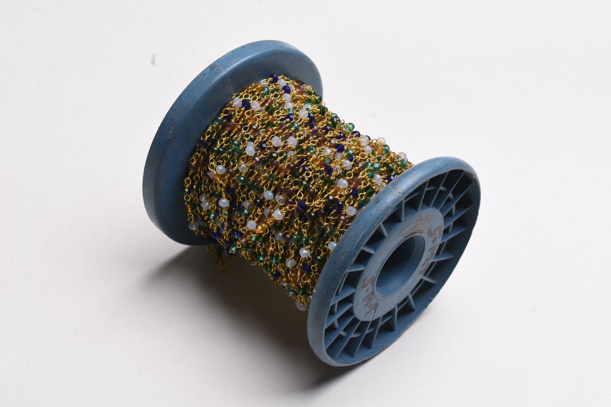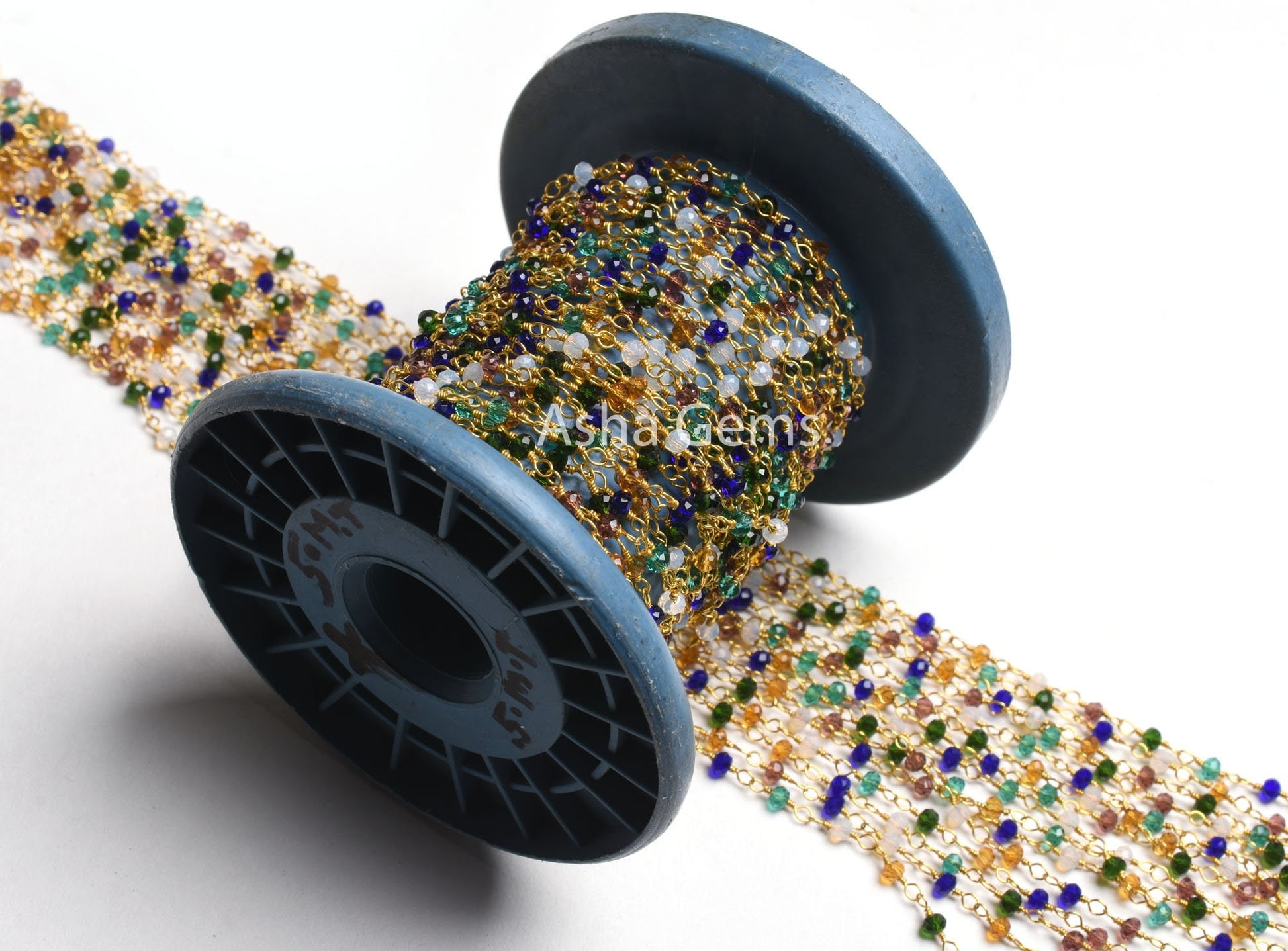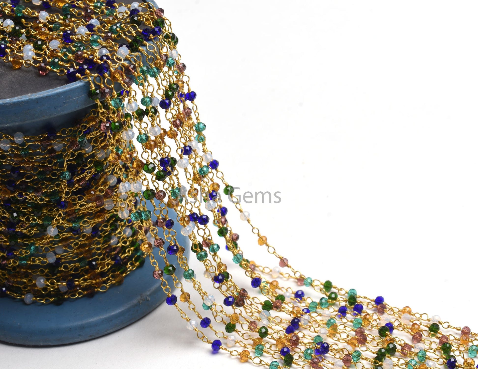 Beautiful Multi Color Hydro Faceted Rondelle Beads Rosary Chain,3mm Gold Plated Wire Wrap Beaded Handmade Chain Necklace Jewelry Making SALE