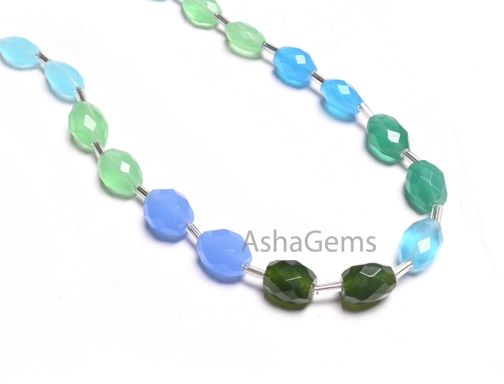 Beautiful Multi Color Quartz Hydro fancy Puff Oval Checker Cut Beads,6x8-8x11 mm Disco Blue Green Hydro Oval Briolette Faceted Beads Jewelry