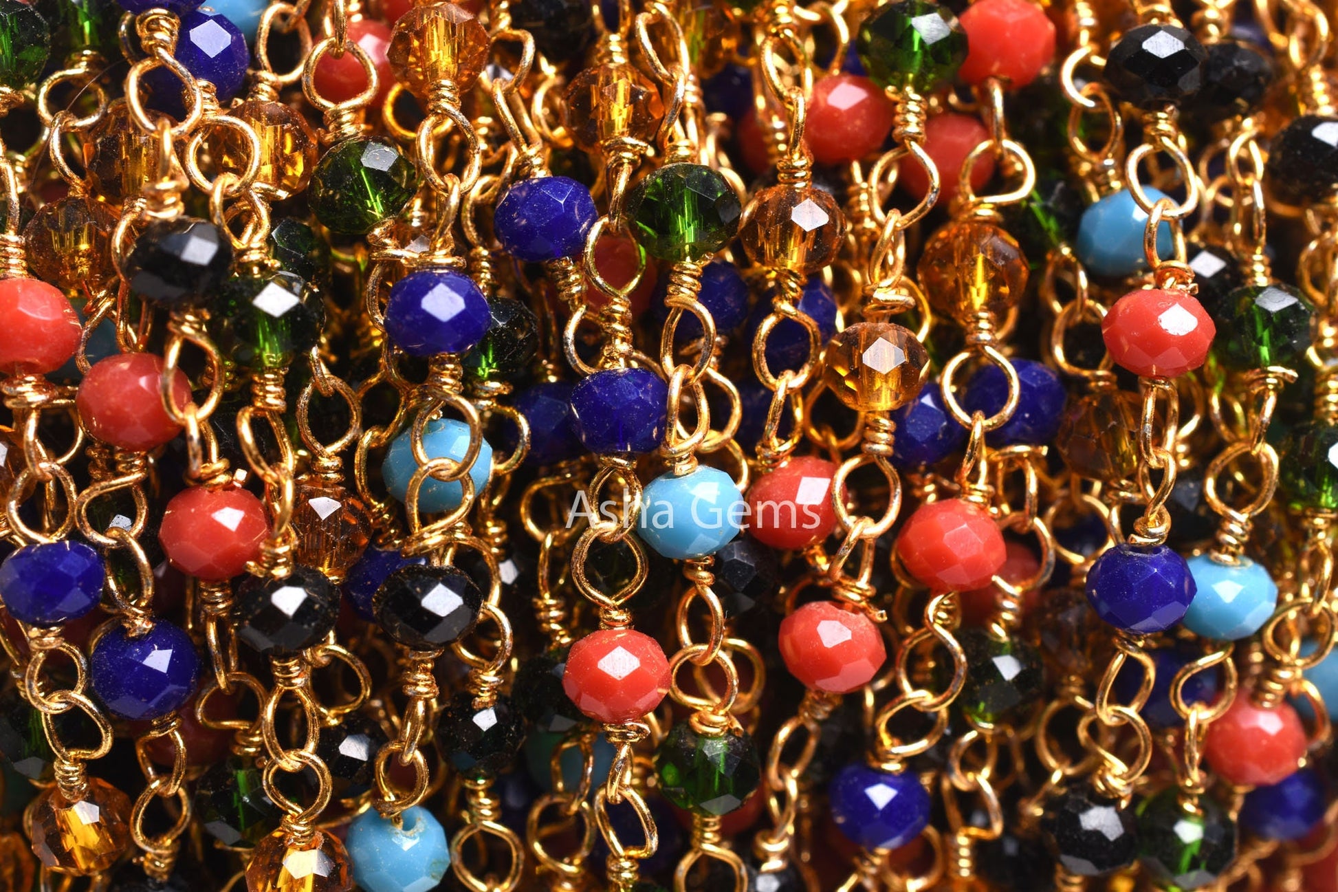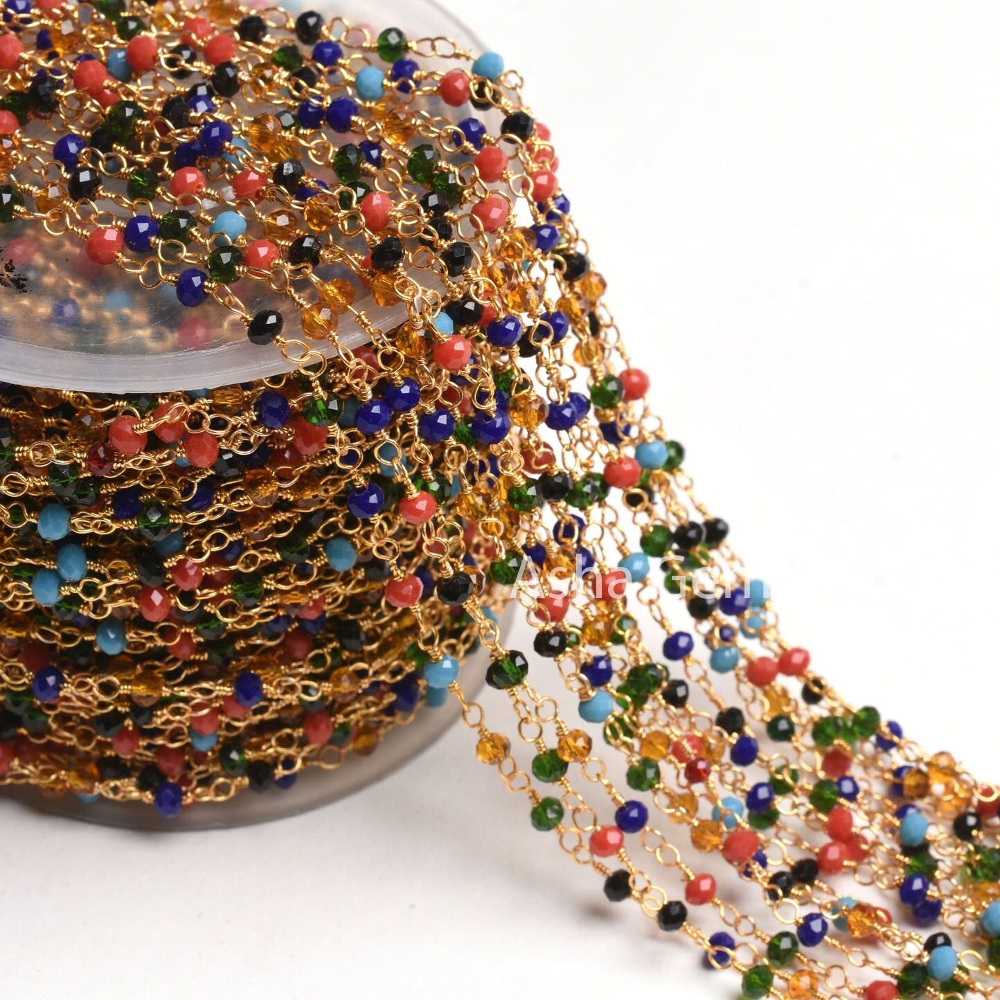 Beautiful Multi Disco Hydro Faceted Rondelle Beads Rosary Chain Gold Plated Wire Wrap Jewelry Making Beaded handmade Colorful Chains Jewelry