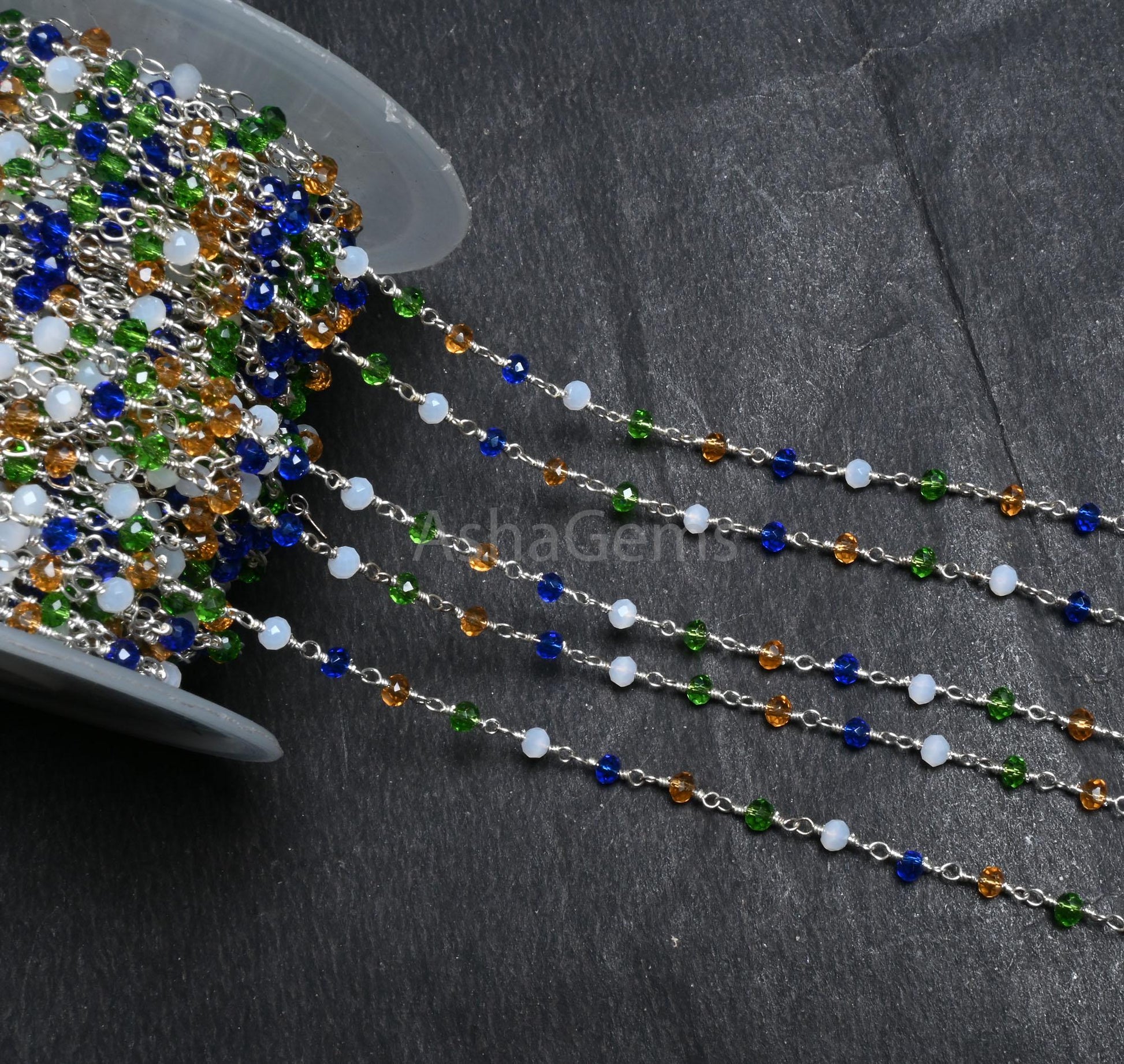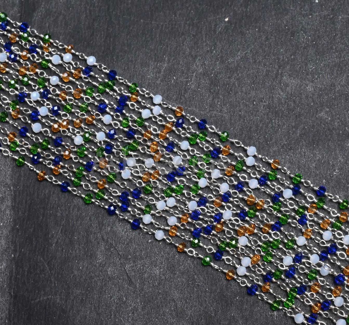 Beautiful Multi disco Hydro Faceted Rondelle Beads Rosary Chain Silver Plated Wire Wrap Bulk Roll Chain Jewelry Making Craft,3-3.5 mm SALE