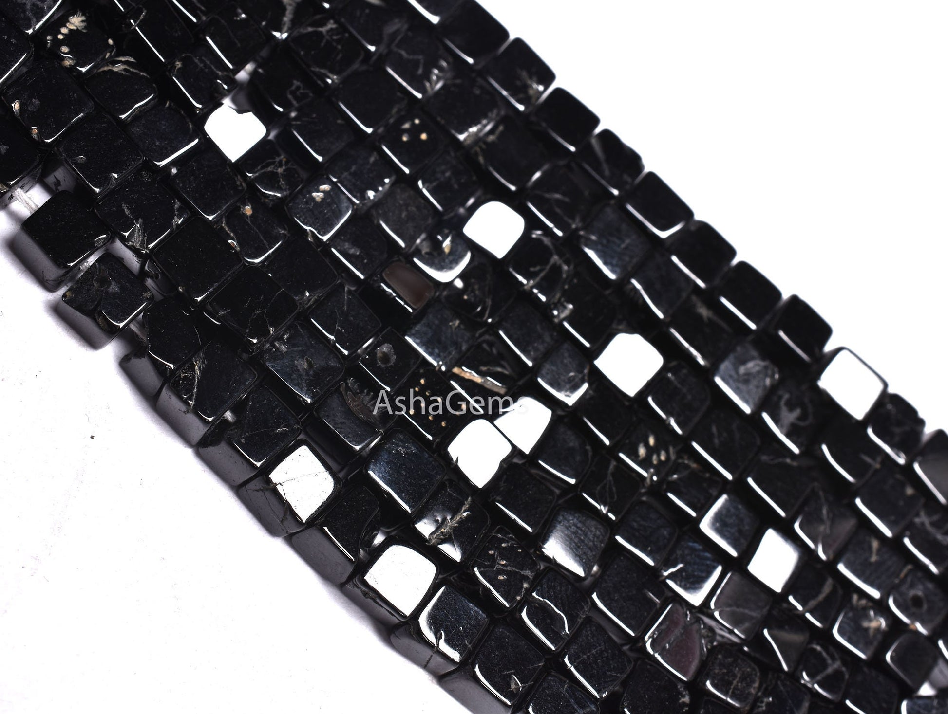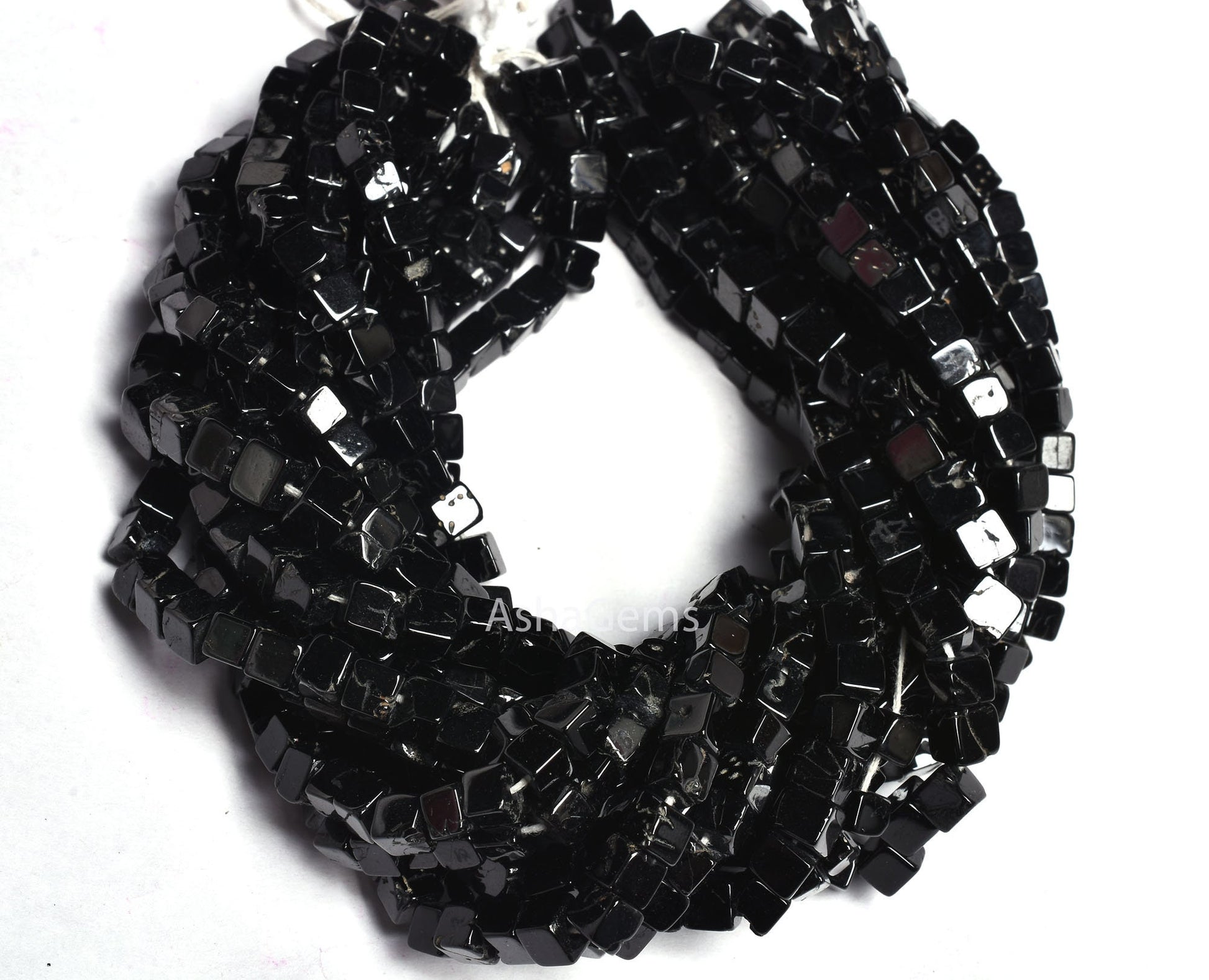 Beautiful Natural Black Spinel Box Shape Smooth Gemstone Beads,4.mm, Black Spinel Plain 3D Cube Box Beads,Spinel Beads.For Jewelry Craft