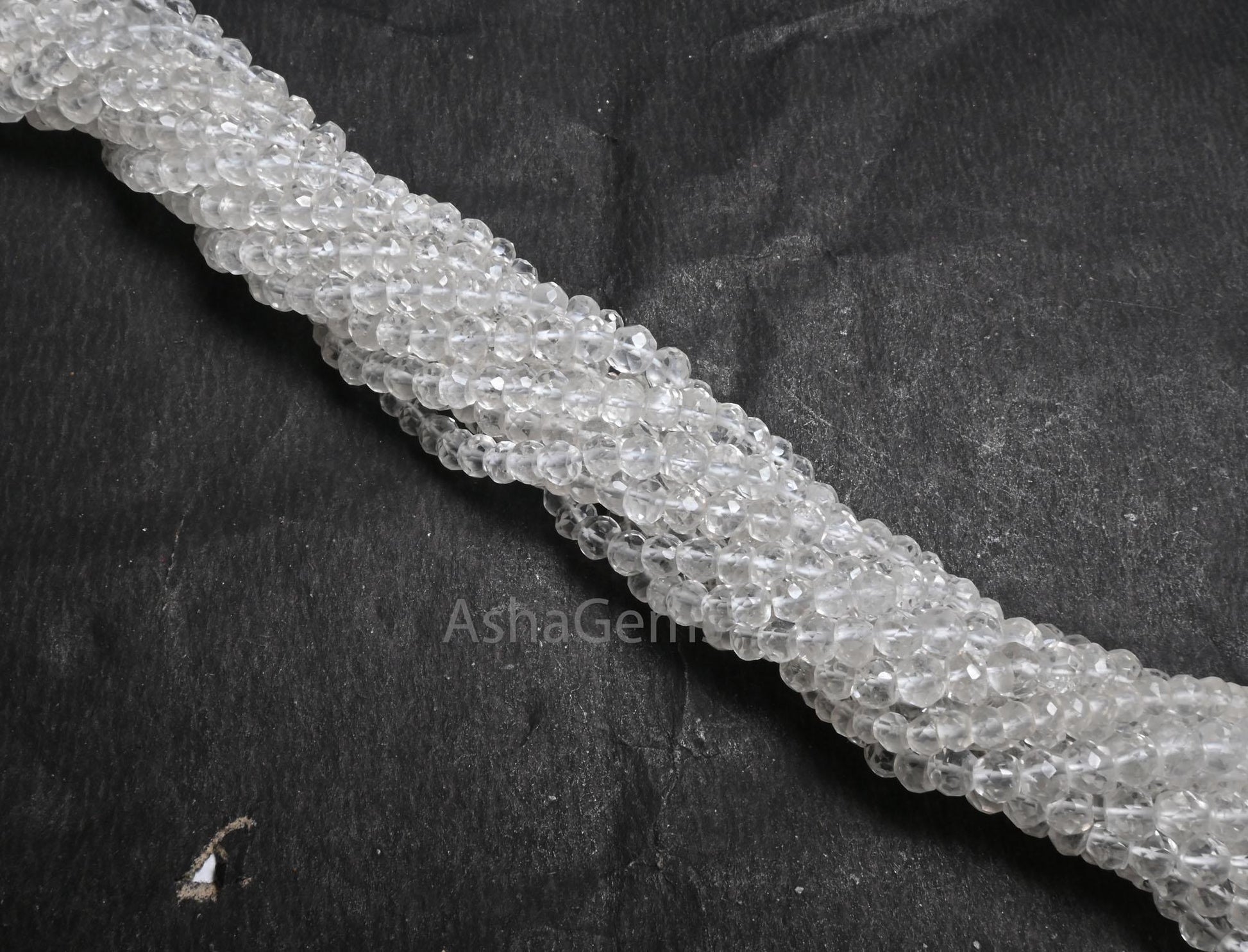 Beautiful Natural Crystal Quartz Micro Cut Beads,13" AAA Quality Crystal Indian machine cut Faceted Rondelle Crystal Bead Jewelry Craft SALE ( AG 15418 )
