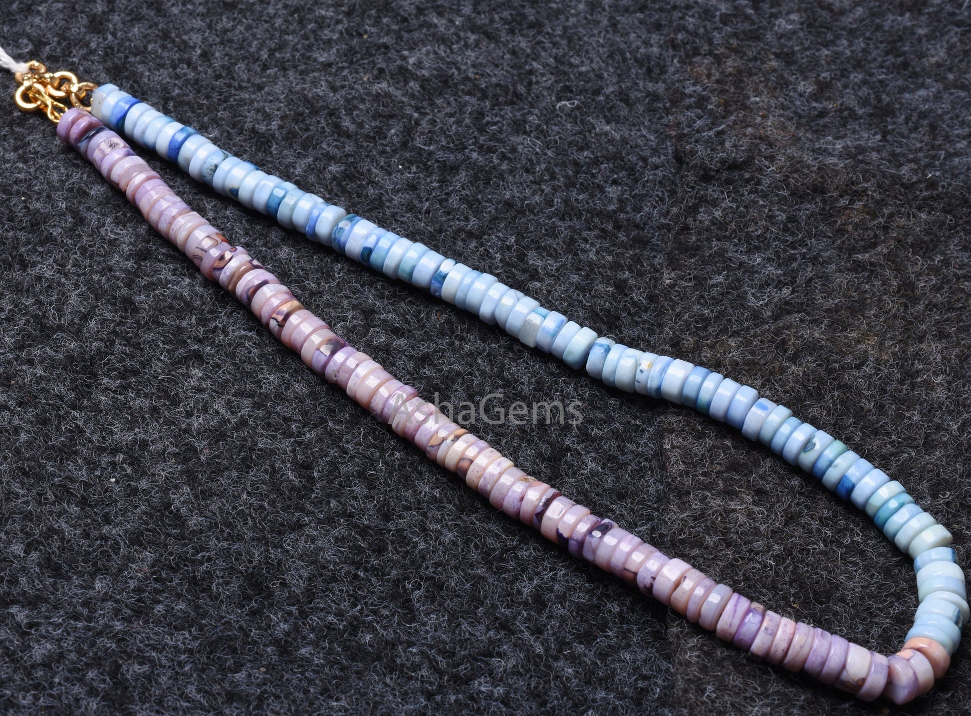 beautiful Opal Smooth Tyre Shape gemstone Beads necklace,8 mm Shaded Sky Blue-Lavender Opal Plain Handmade Flat Tyre Opal bead Necklace SALE
