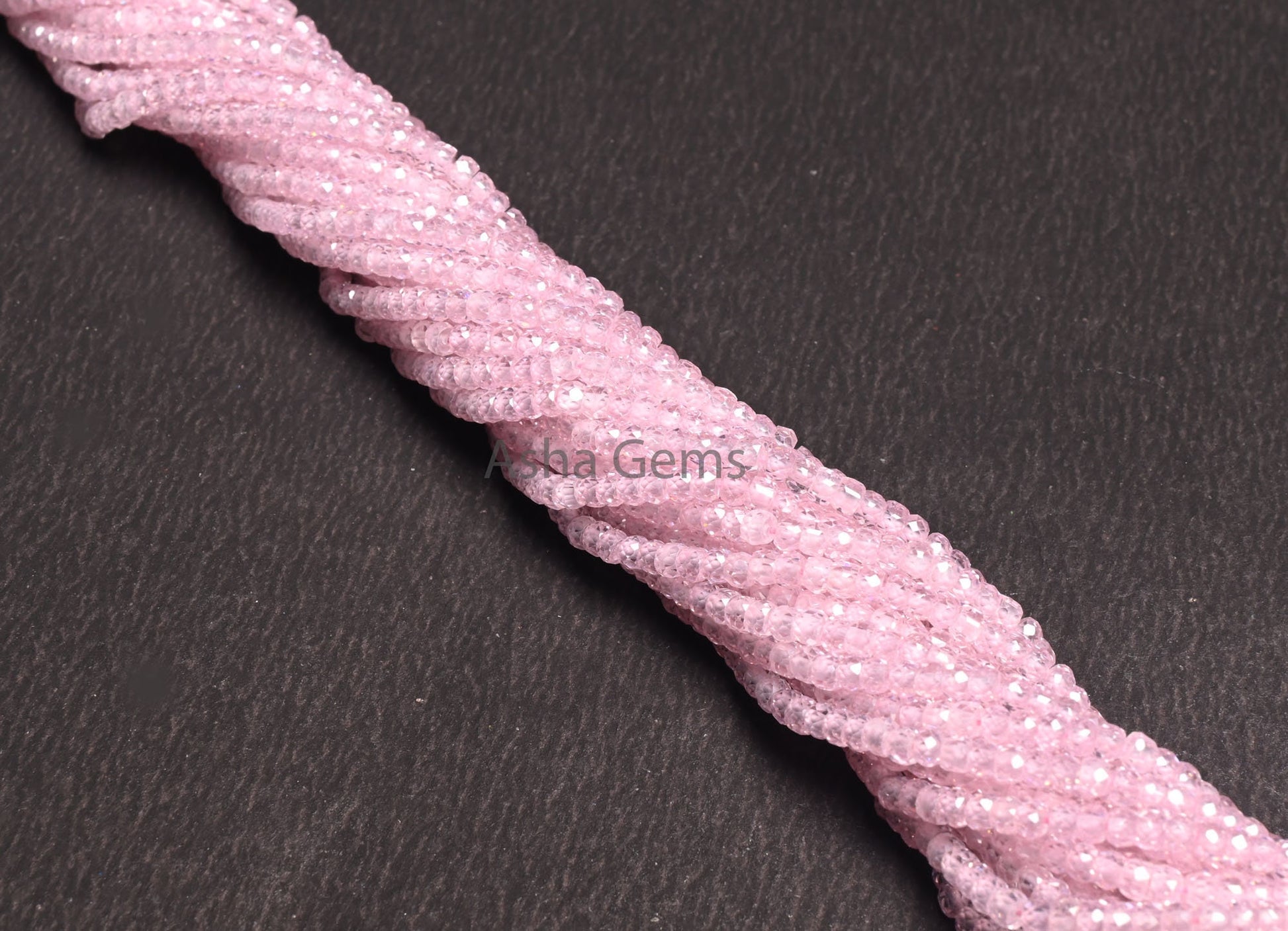 Beautiful Pink Color Zircon Faceted Rondelle Beads,3 mm Baby Pink Zircon Micro Cut Beads, AAA Rose Pink Zircon Machine Cut Bead Jewelry SALE