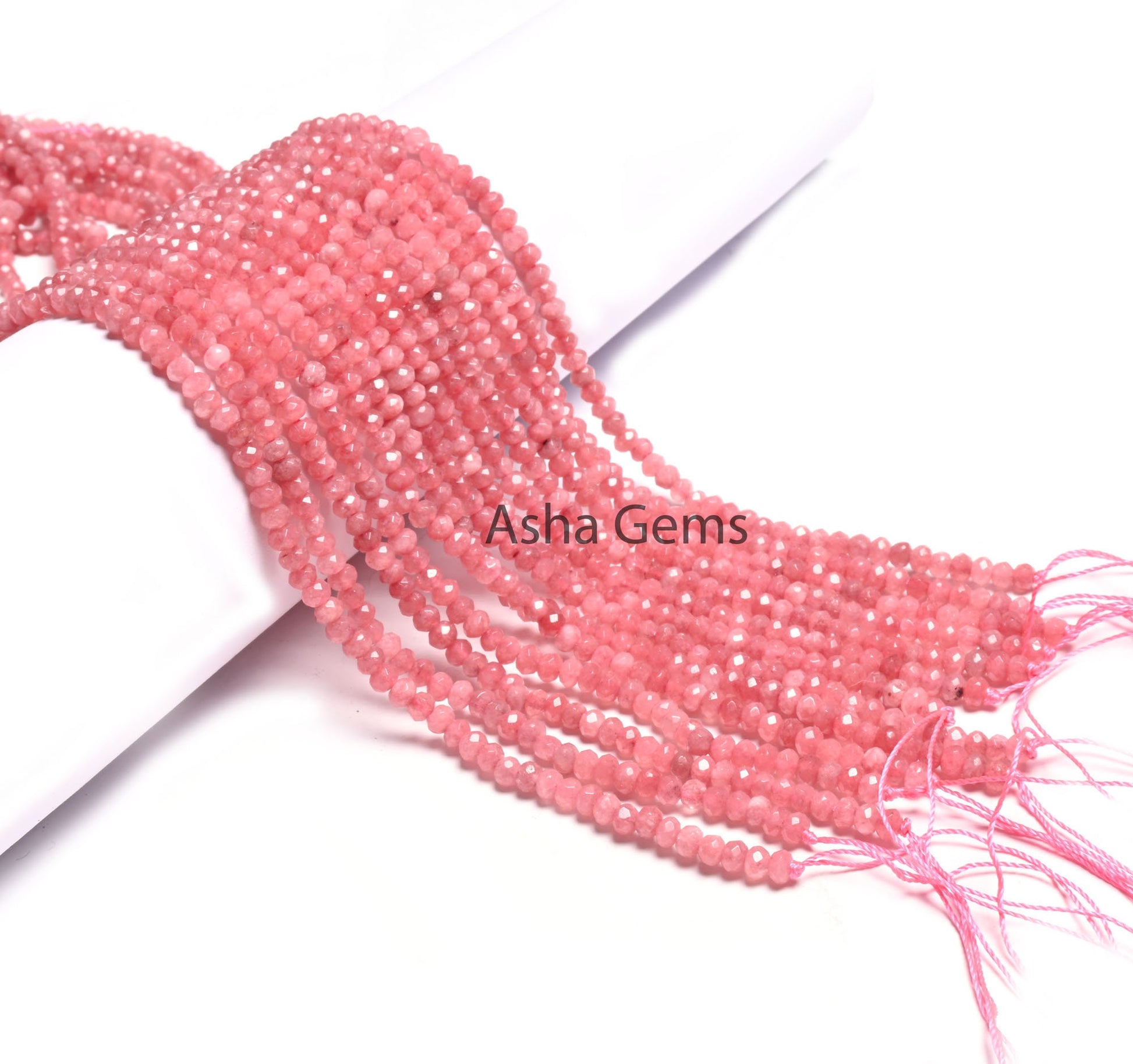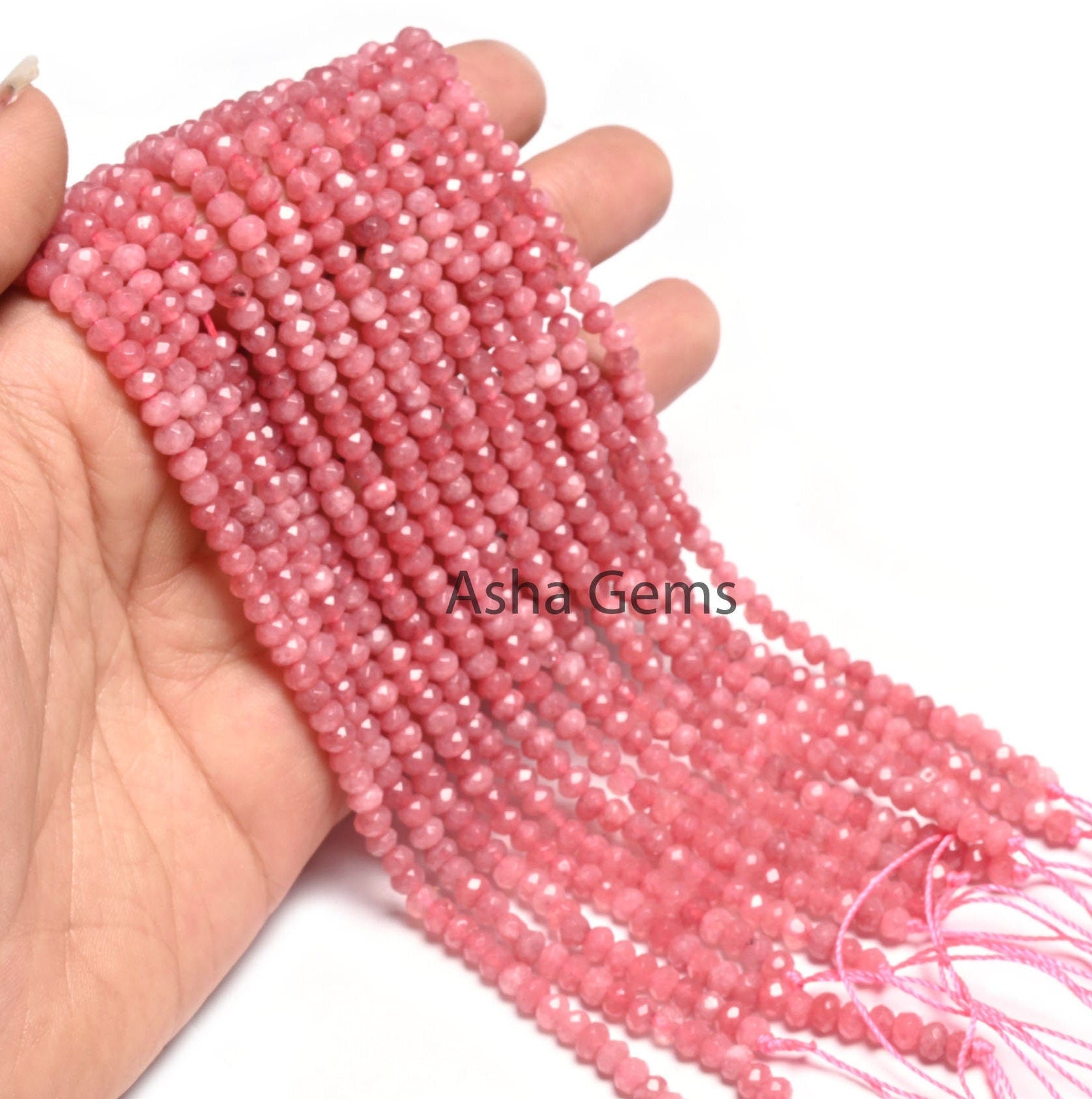 Beautiful Pink Jade Quartz faceted Rondelle Shape Beads,4.5mm Fine Jade Quartz machine cut Gemstone Loose Bead For Jewelry Making Craft SALE