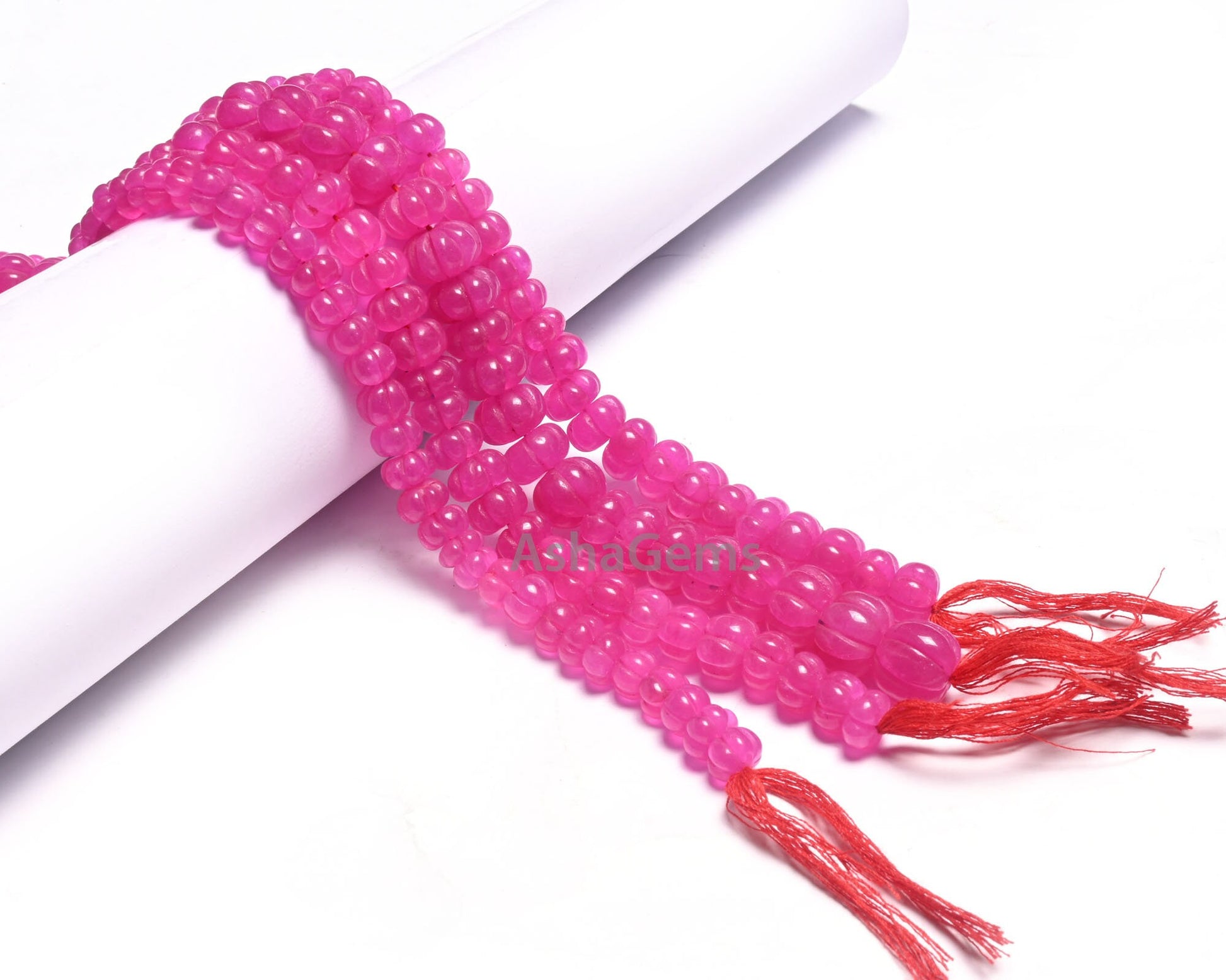 Beautiful Pink Quartz carving Watermelon Beads, Fine Pink Quartz Carved Handmade Pumpkin Gemstone Melon Beads Curved Necklace Jewelry Crafts