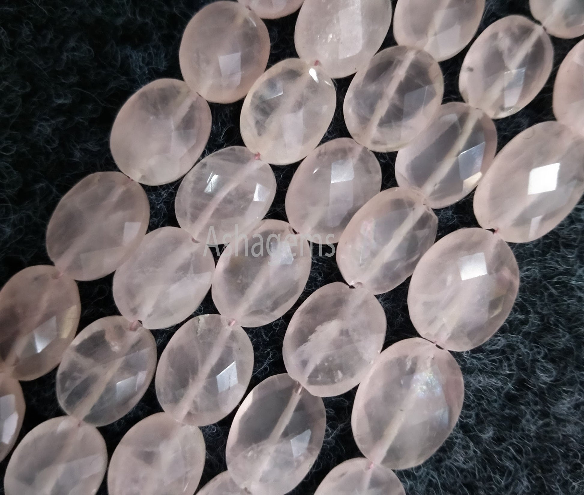 Beautiful Pink Rose Quartz Faceted Oval Shape Beads, Natural rose Quartz Gemstone Beads Indian,8 Inch Strand Quartz Faceted Oval Beads Craft