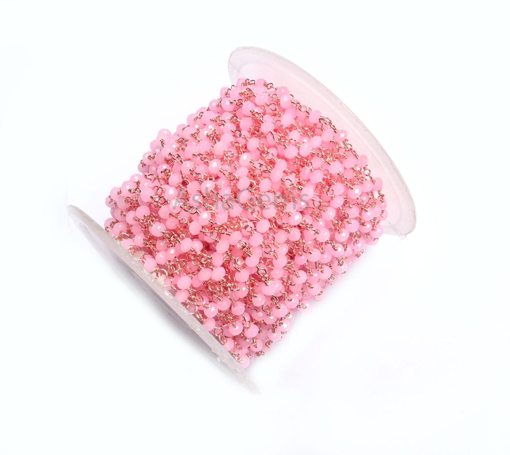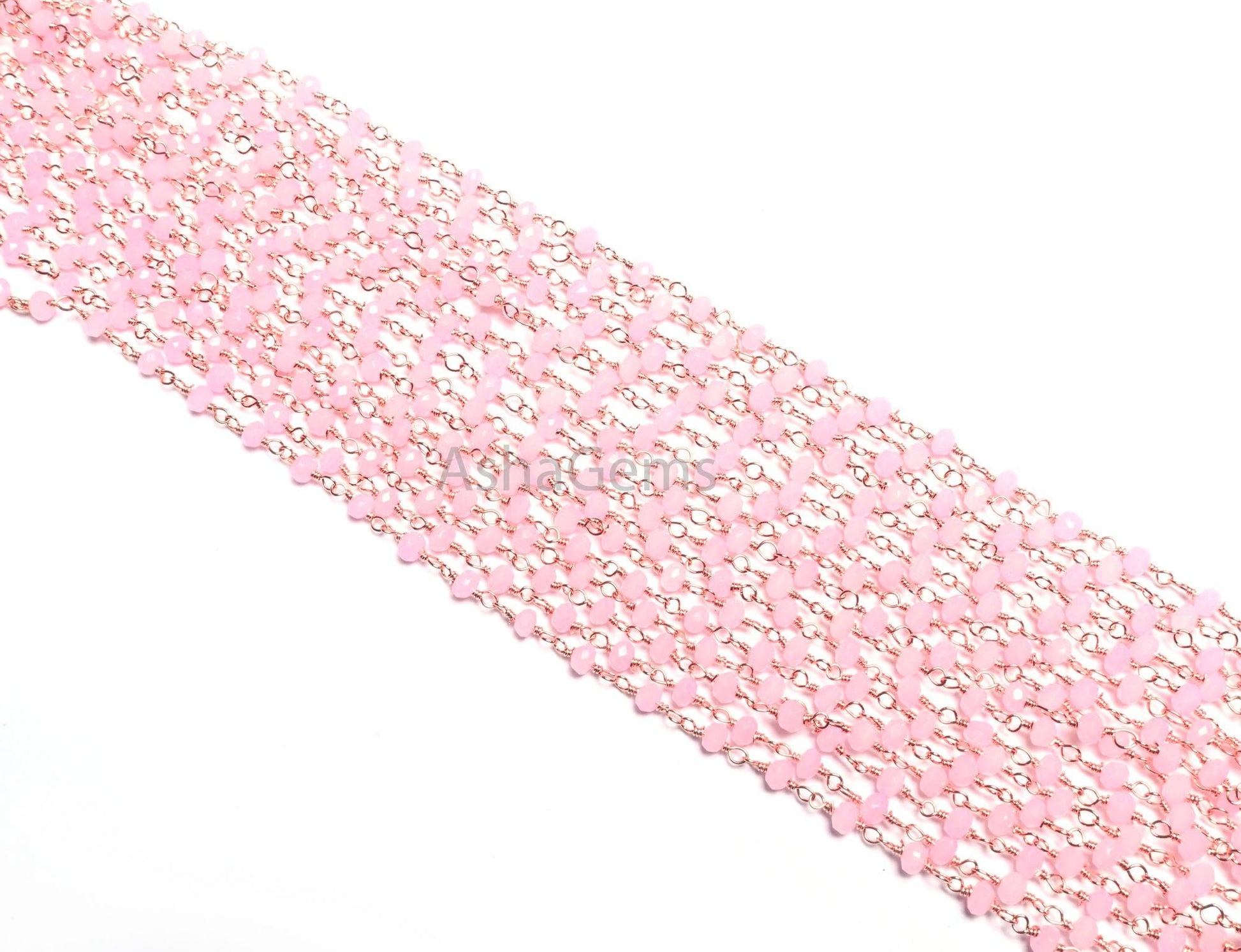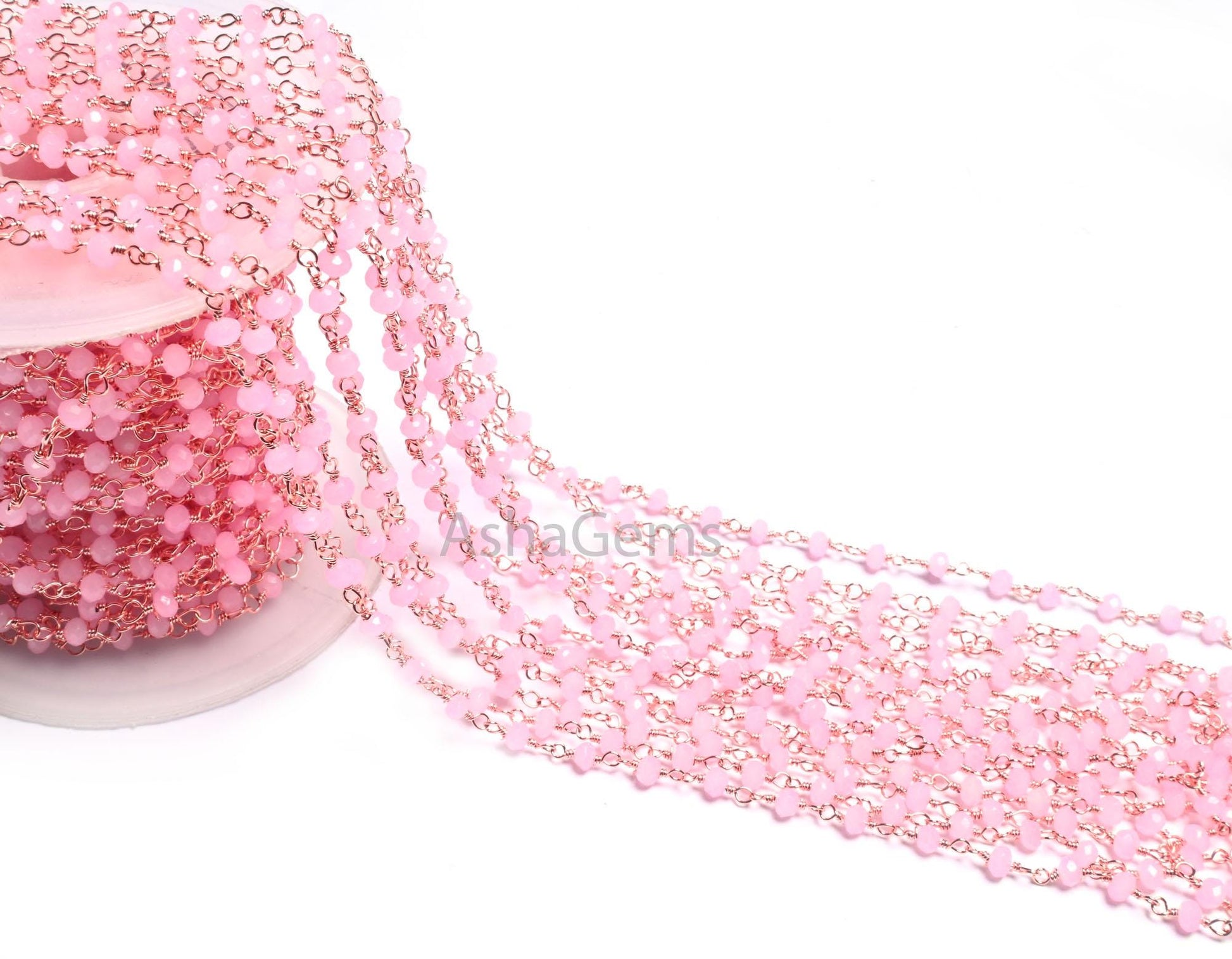 Beautiful Pink Rose Quartz Hydro Faceted Rondelle Beads Chain Bulk Roll Rosary Chain Rose Gold Plated Copper Wire Wrapped Chain Jewelry SALE