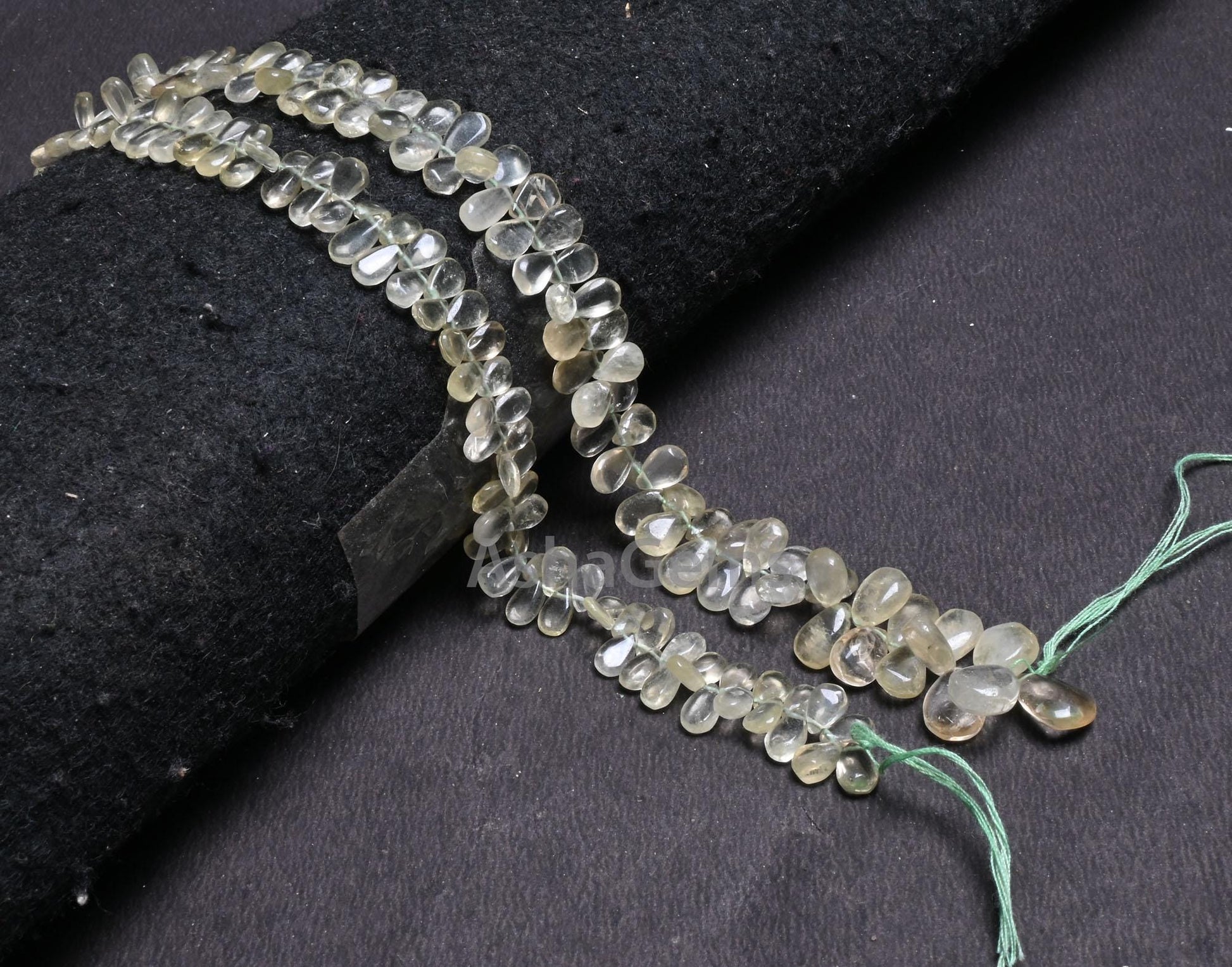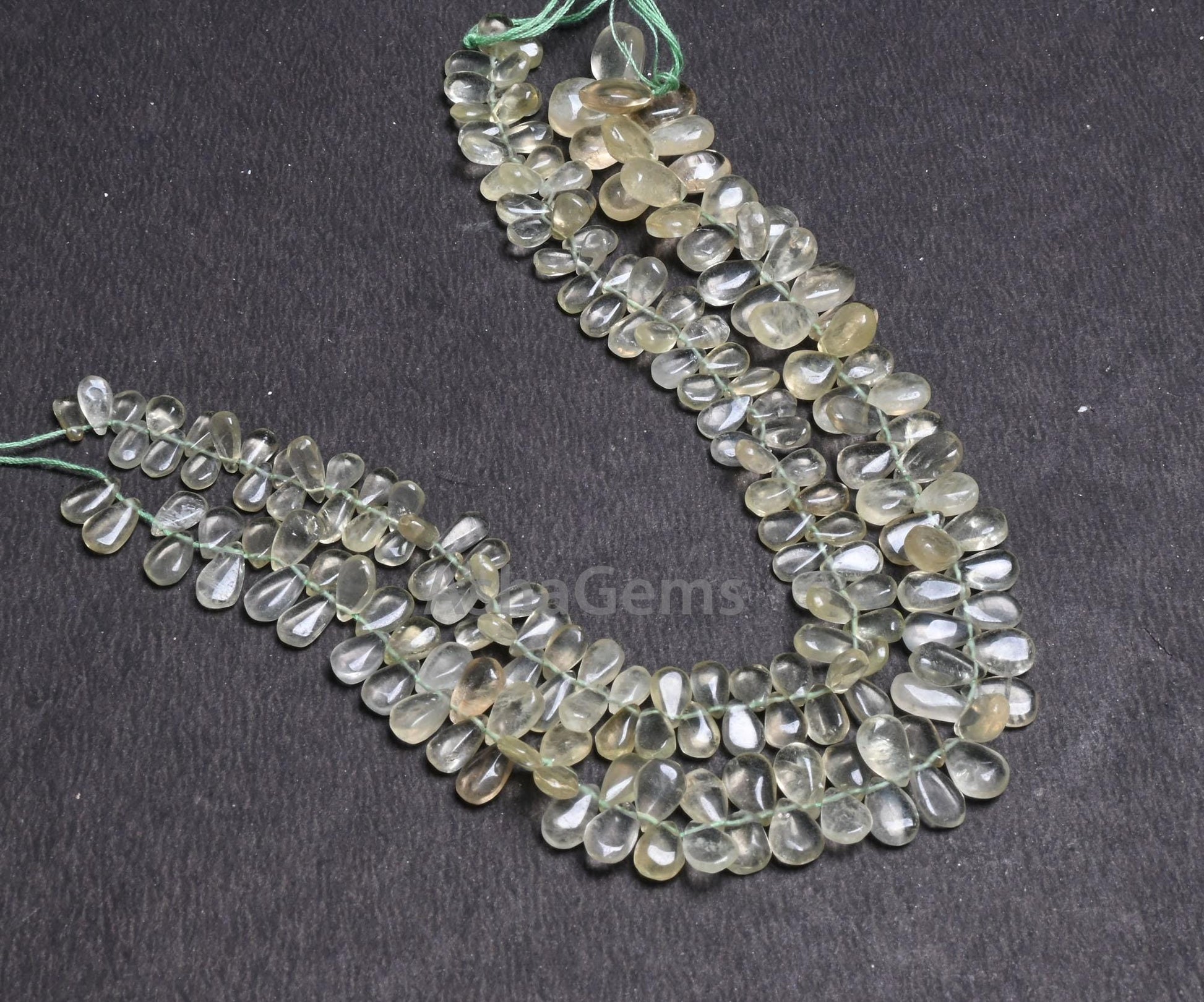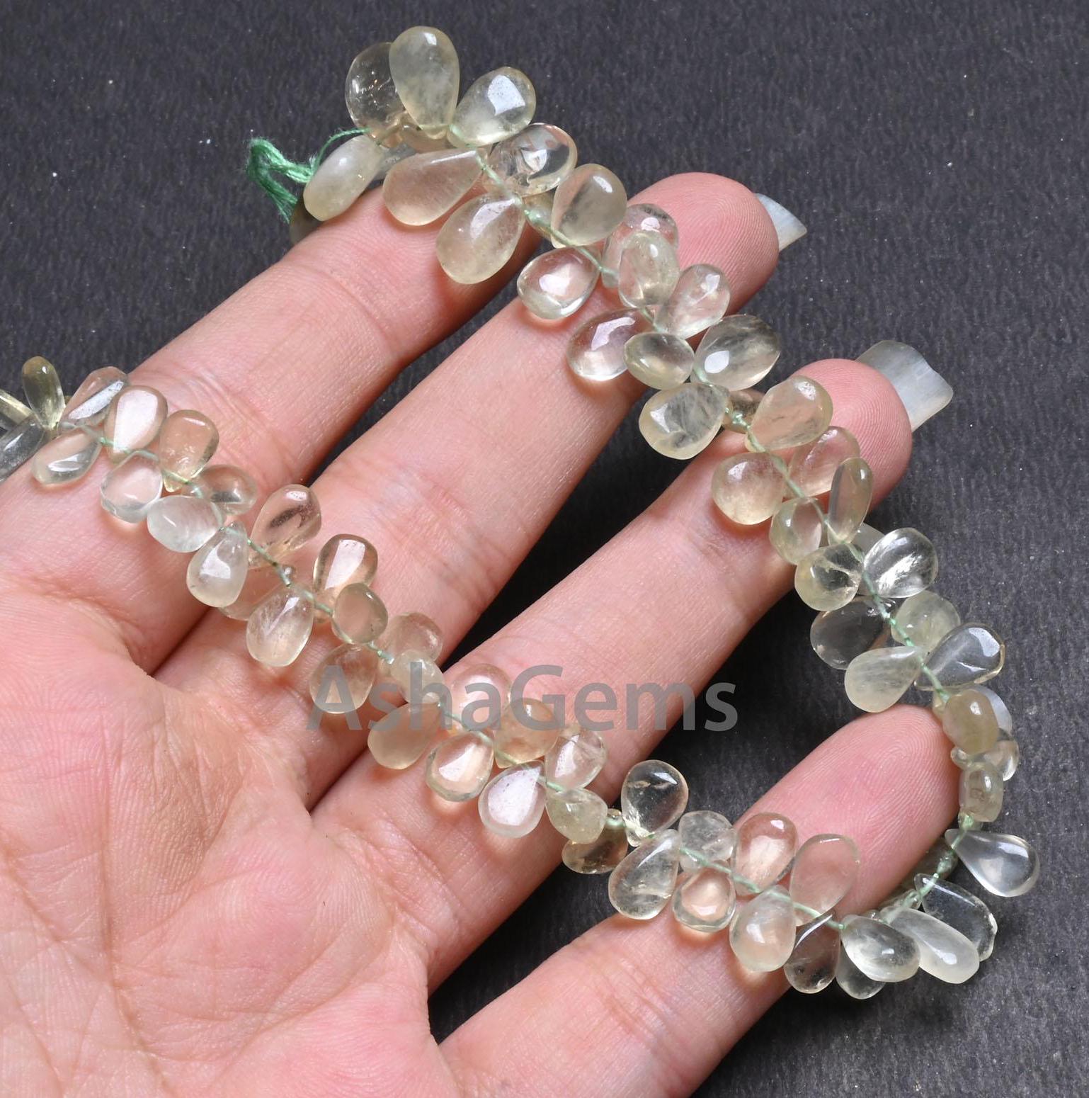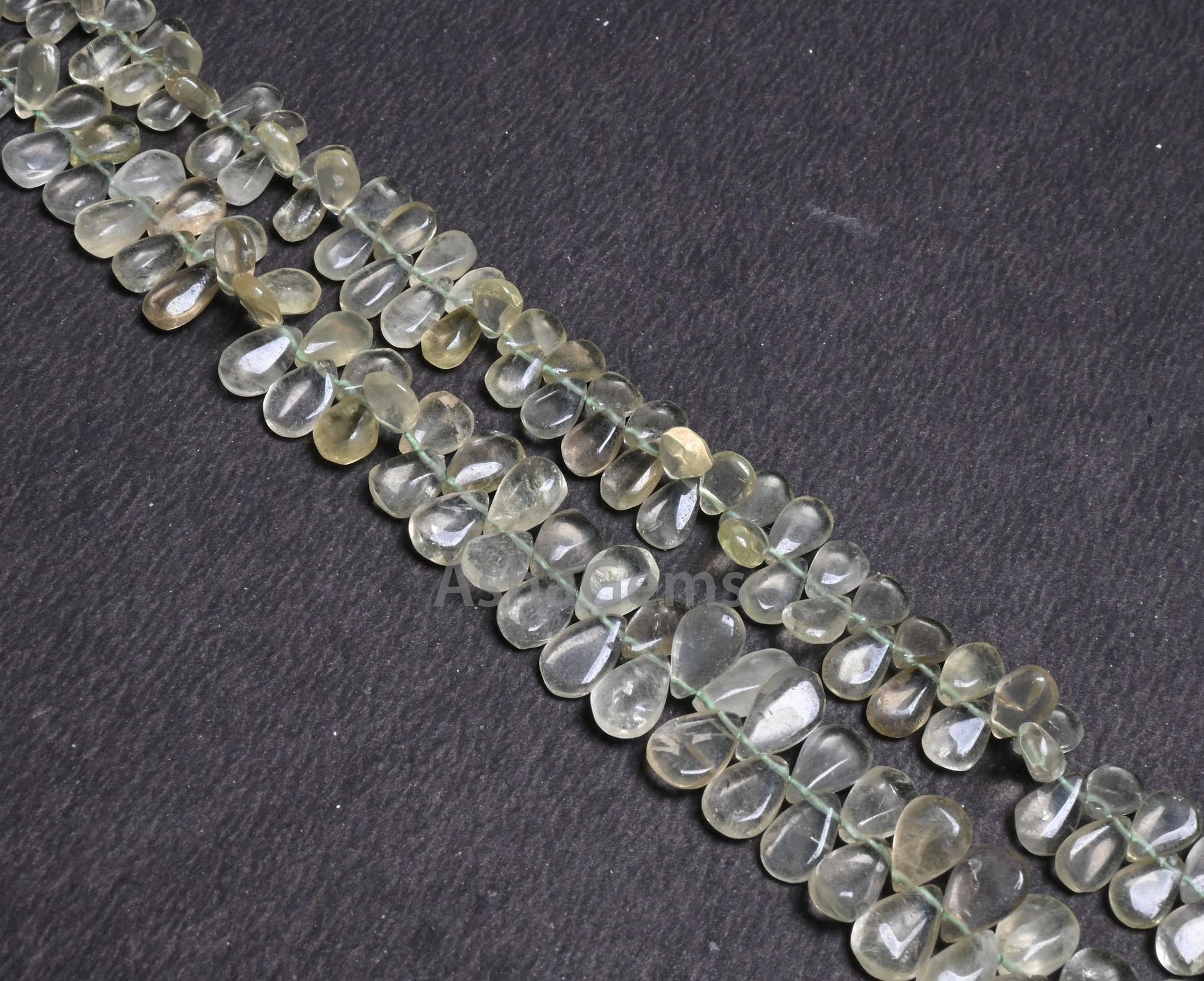 Beautiful Prehnite Smooth Pears Shape Gemstone Beads,9" Strand Natural Light Green Prehnite Teardrop handmade Side Drill Beads Jewelry Craft