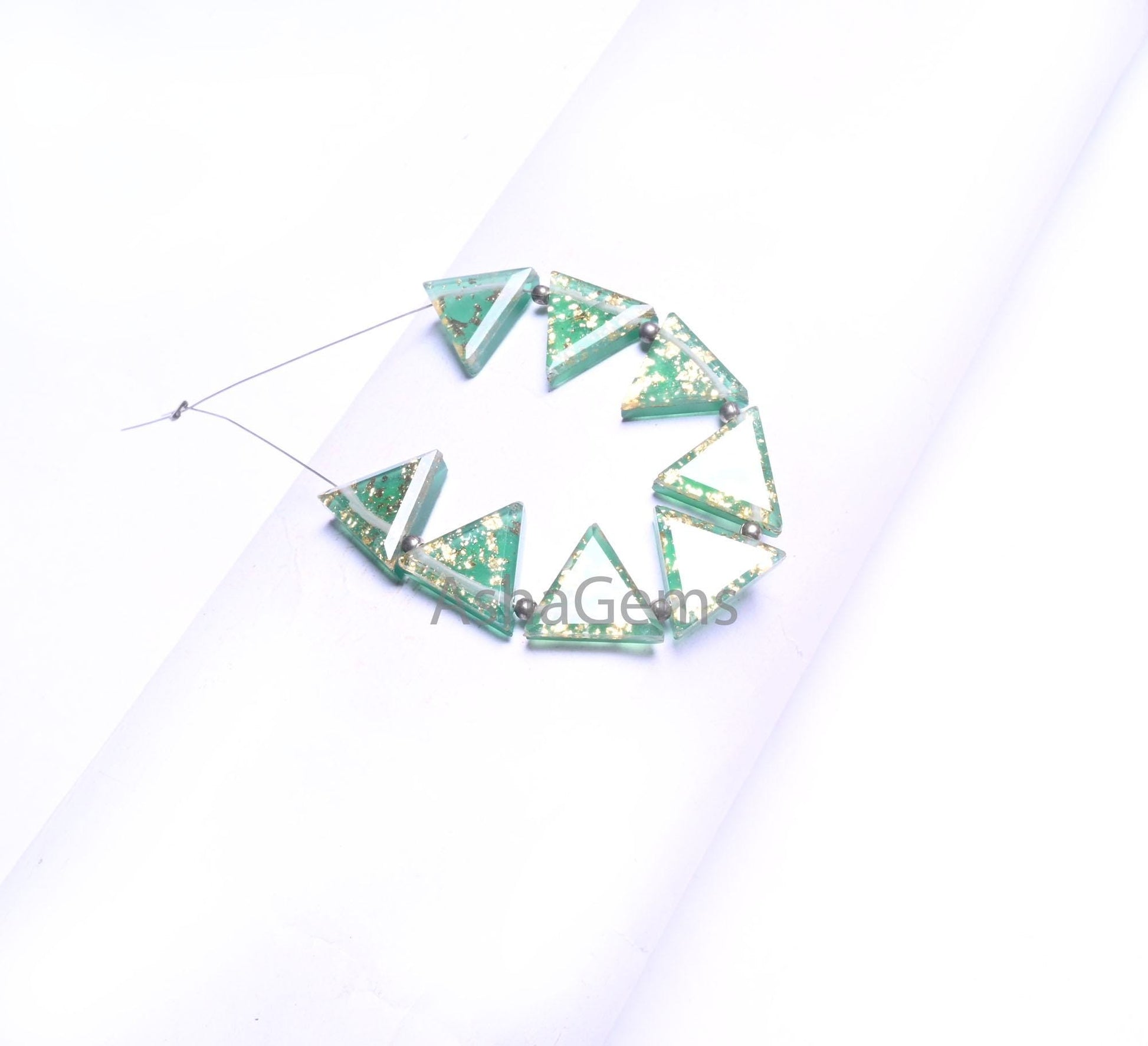 Beautiful Quartz Green Onyx Gold Foil Doublet Triangle Shape Faceted Beads, 12-14 mm Doublet fancy Trillion Table Cut Gemstone Beads Jewelry (AG 18709 )