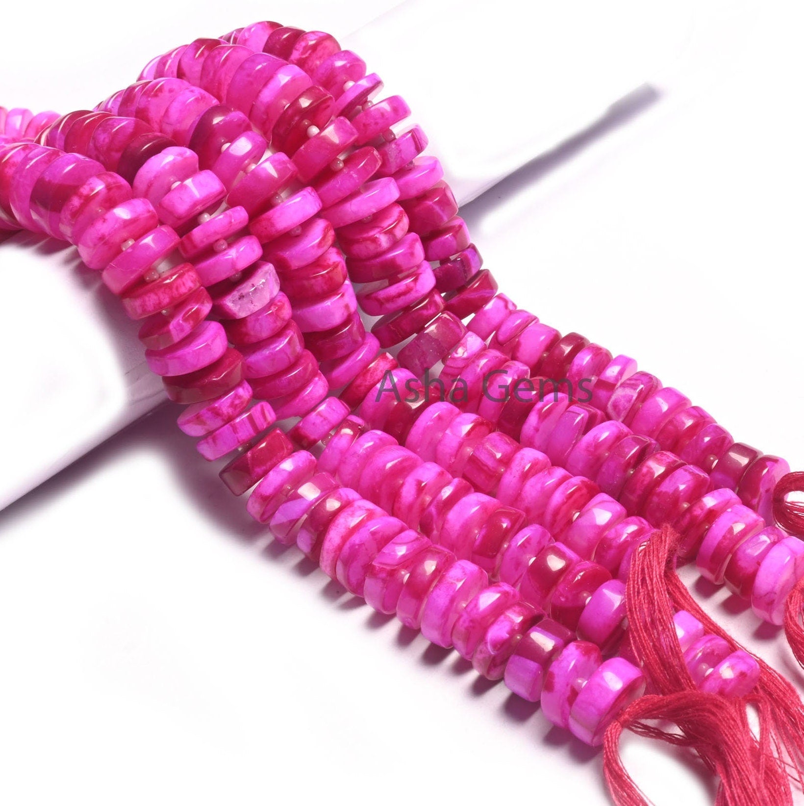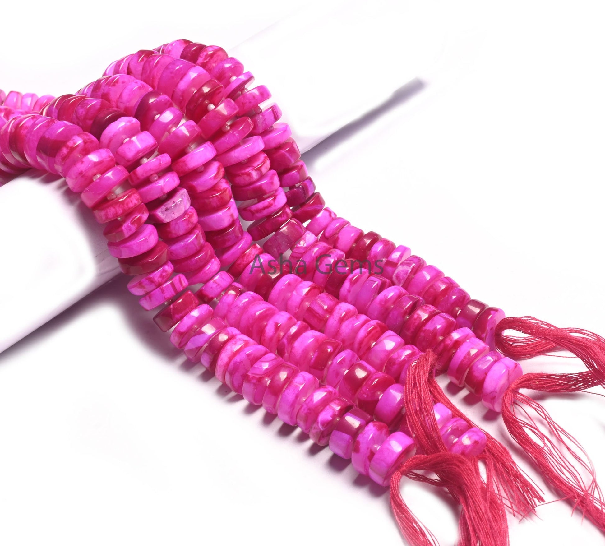 Beautiful Queen Pink Opal Smooth Tyre Beads,8" Strand Hot Pink Opal Plain Handmade Flat Tyre Gemstone Bead, Opal Beads Necklace Jewelry SALE