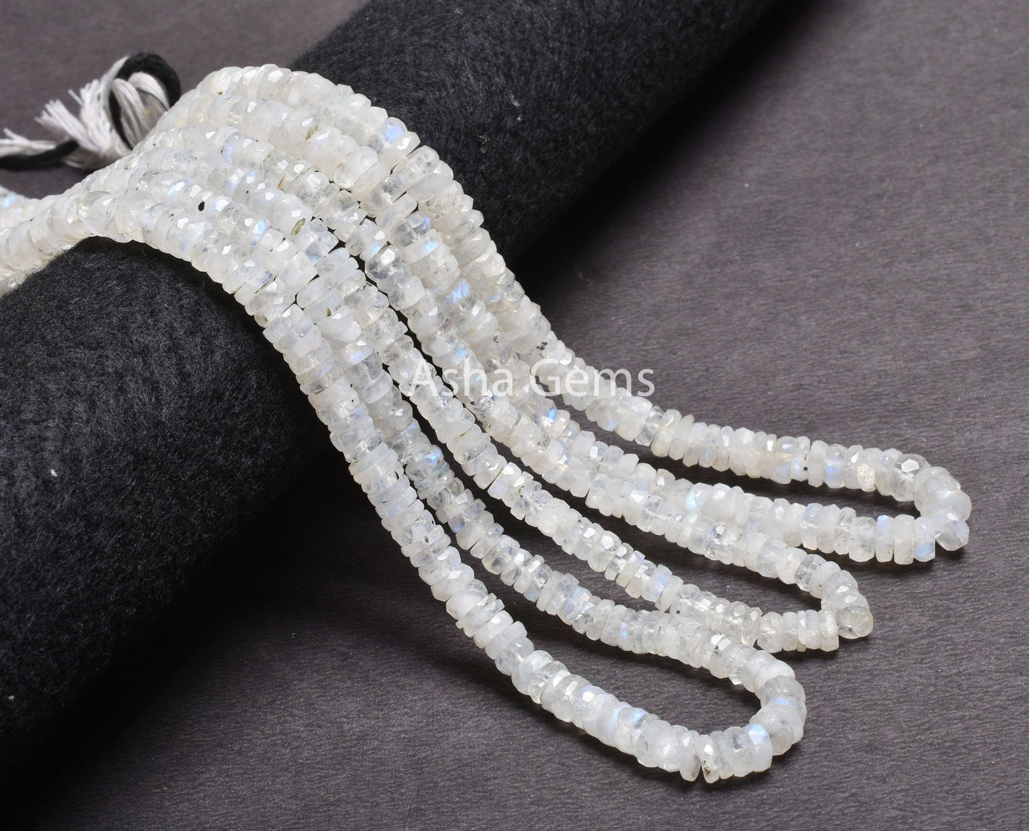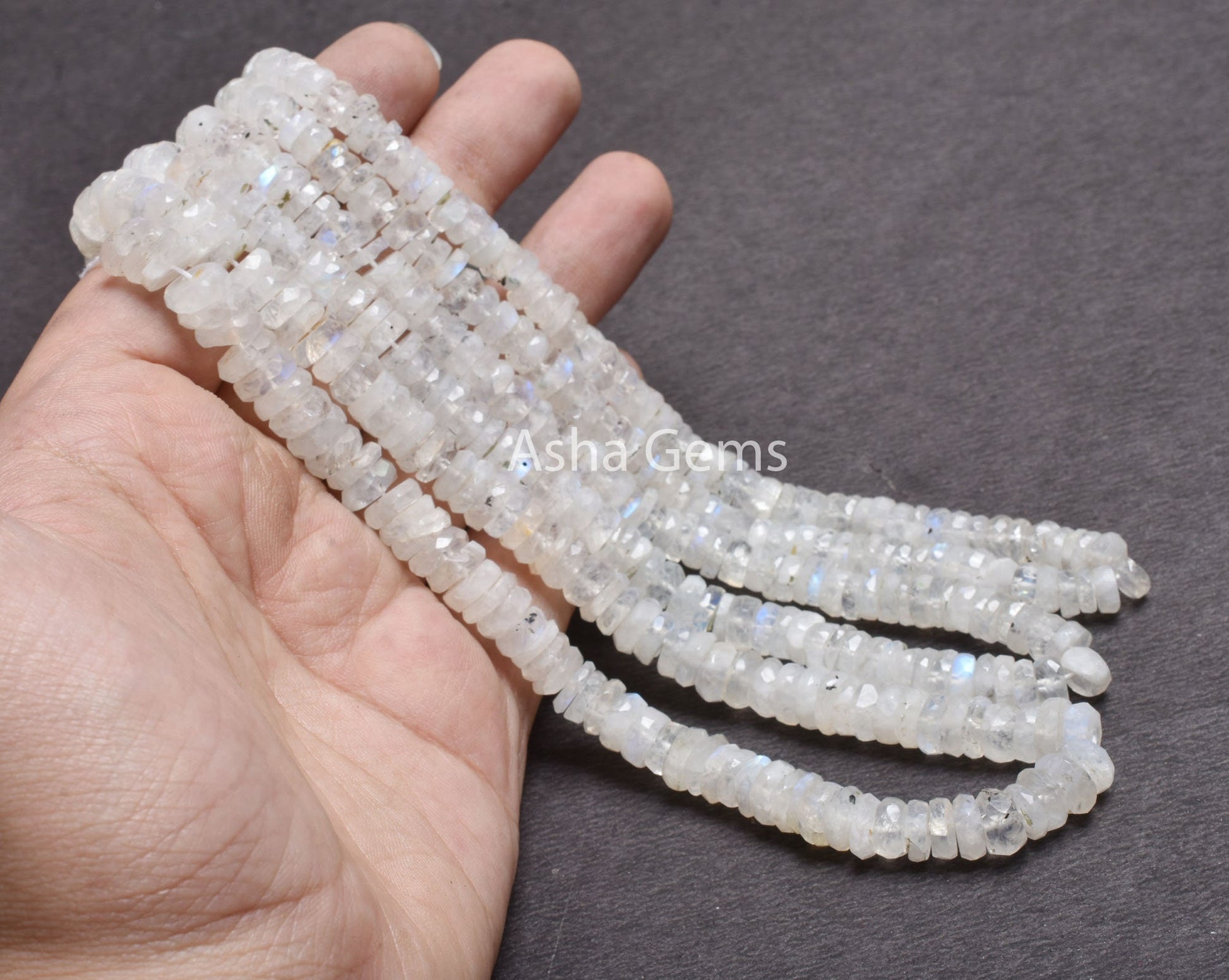 Beautiful Rainbow Moonstone Faceted Heishi Tyre Gemstone Beads, Natural Blue Fire Rainbow Moonstone Flat Wheel Shape Bead Jewelry Craft SALE